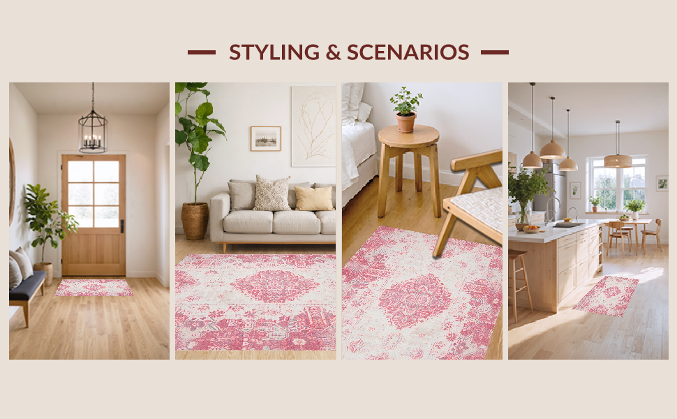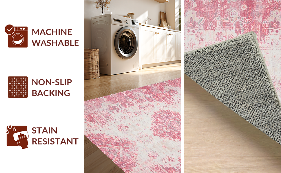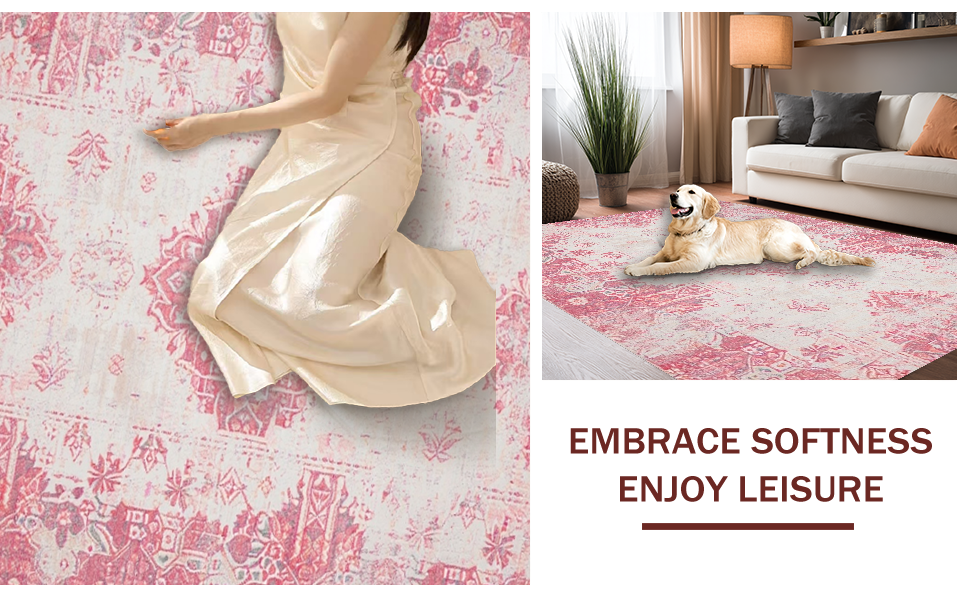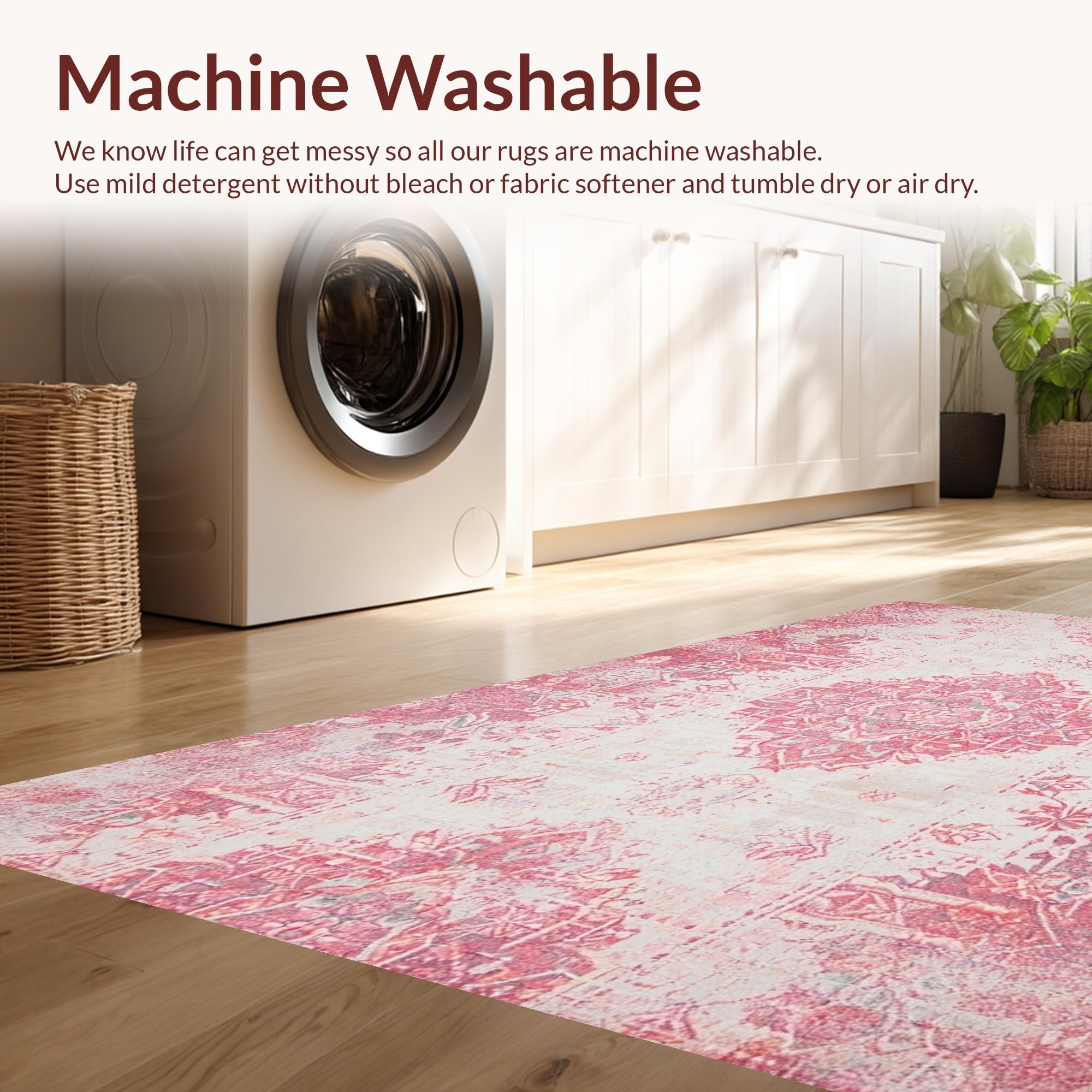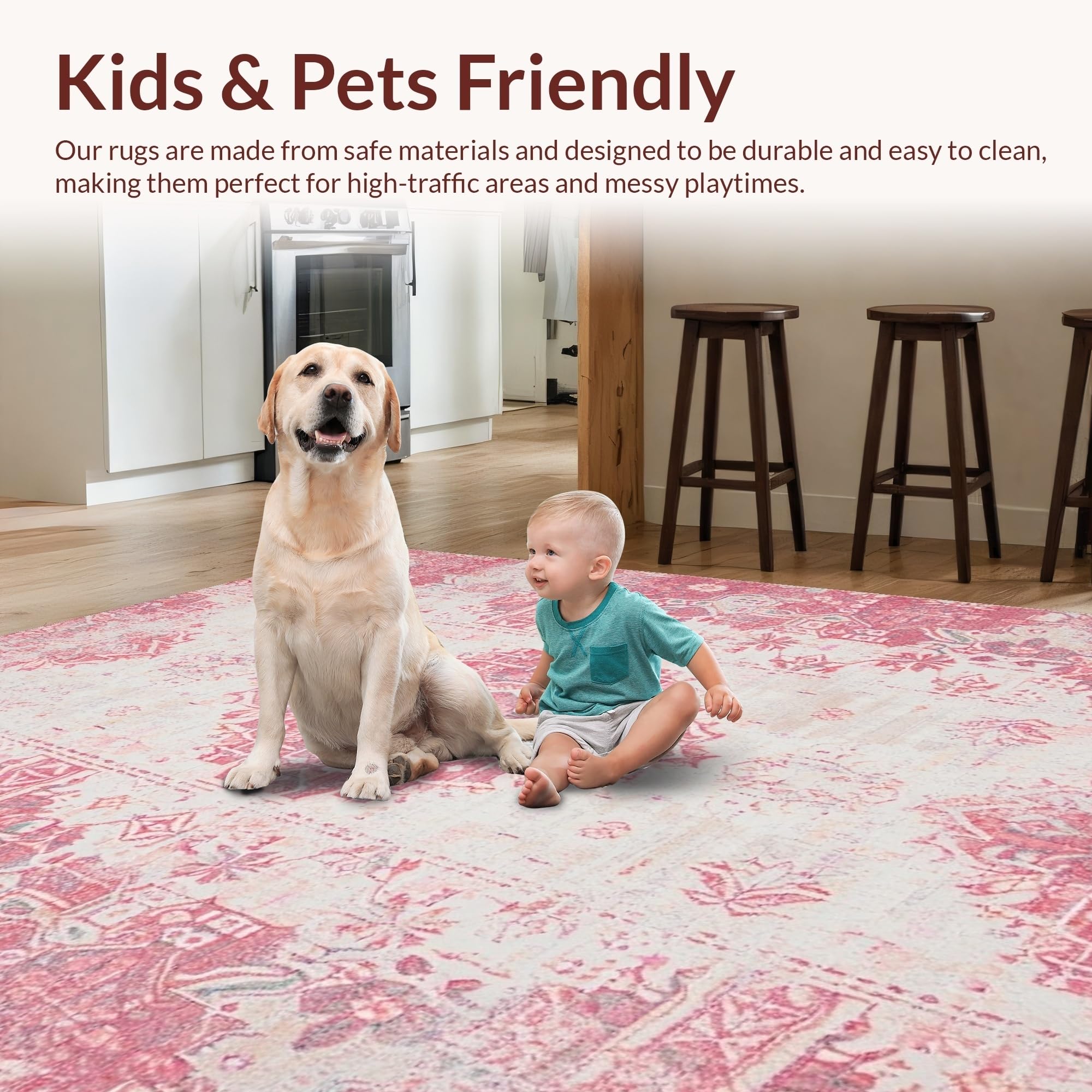 Ultra Soft Area Rug, Non Slip, Stain Resistant, Washable Area Rugs for Living Room, Bedroom, Elegant Medallion Patterned Charm(Pink) Overview: