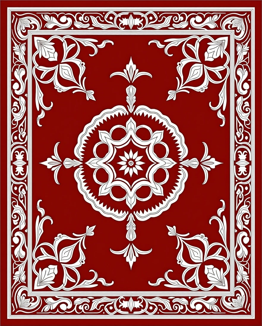 Elegant Medallion Symmetrical Entrance Welcome(Red)