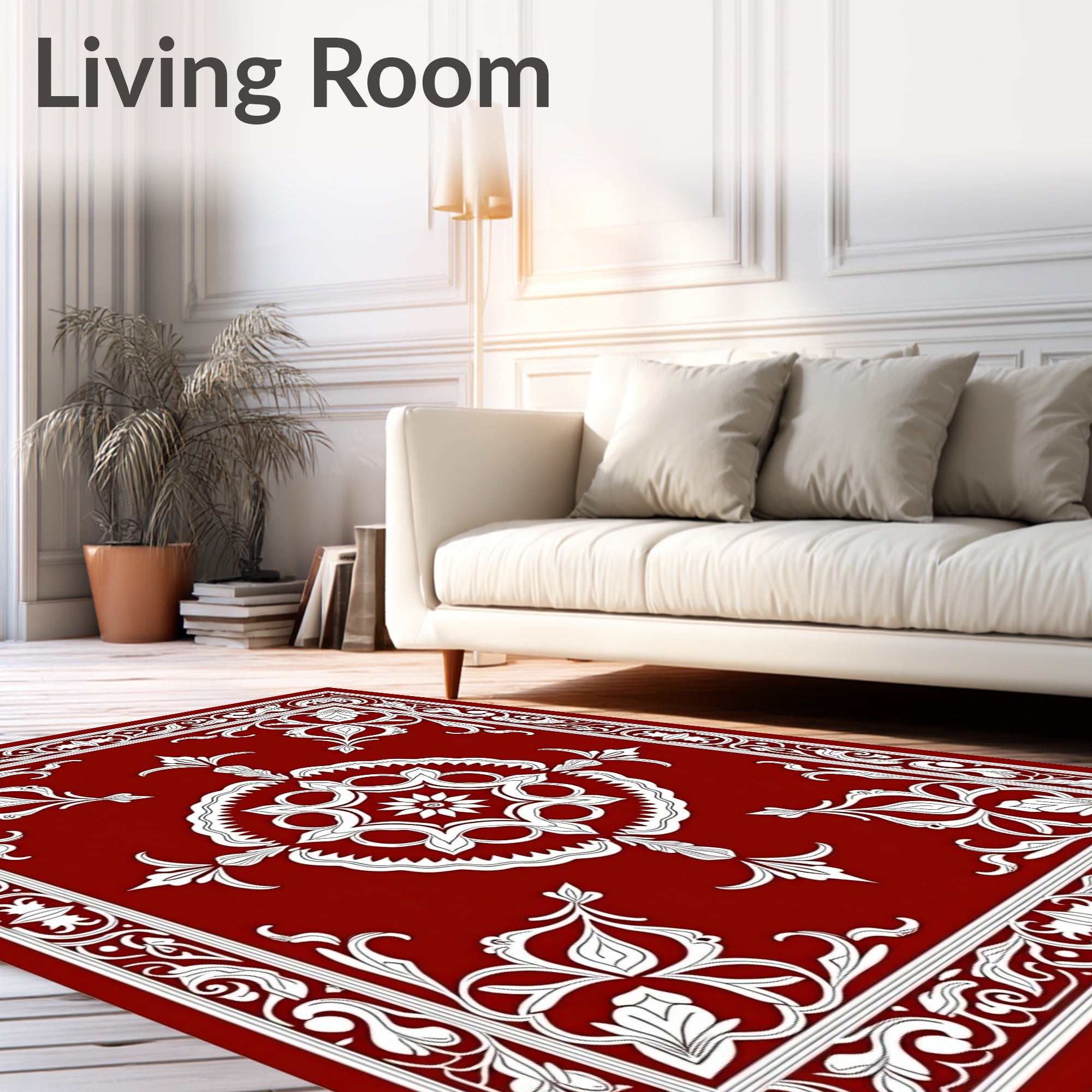 Ultra Soft Area Rug, Non Slip, Stain Resistant, Washable Area Rugs for Living Room, Bedroom, Elegant Medallion Symmetrical Entrance Welcome(Red) Overview: