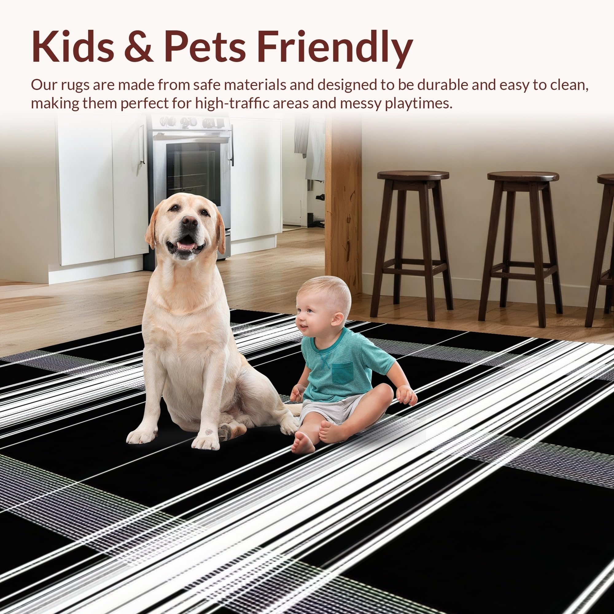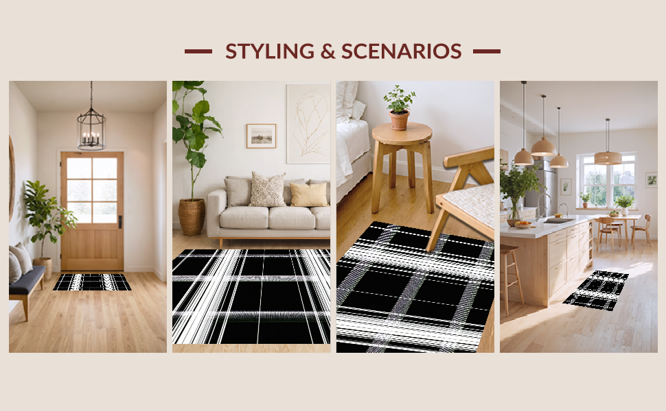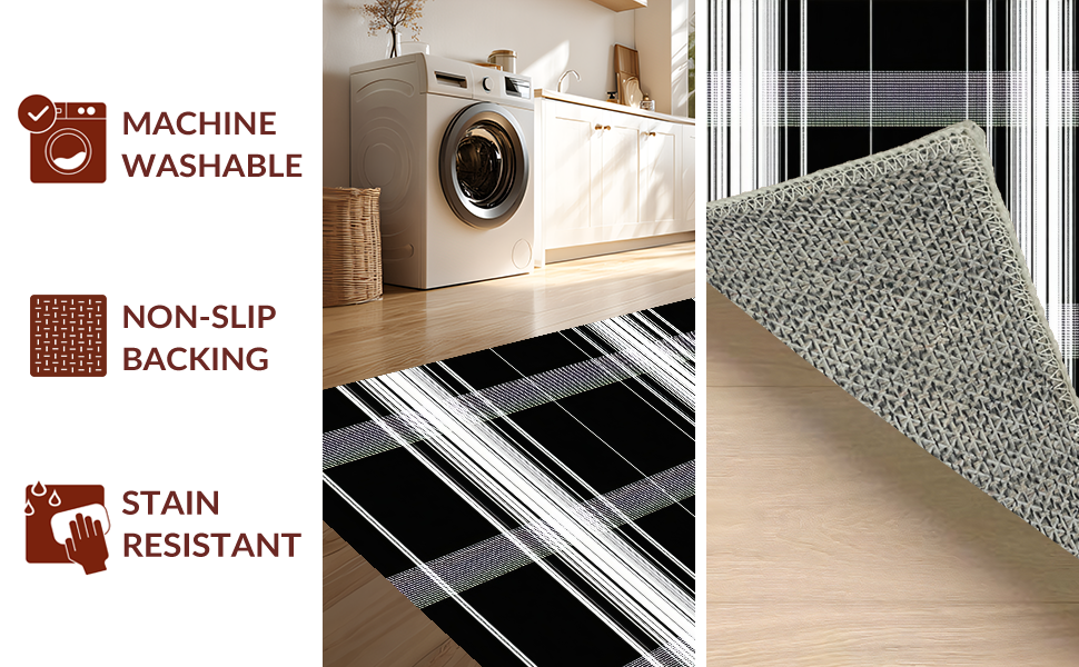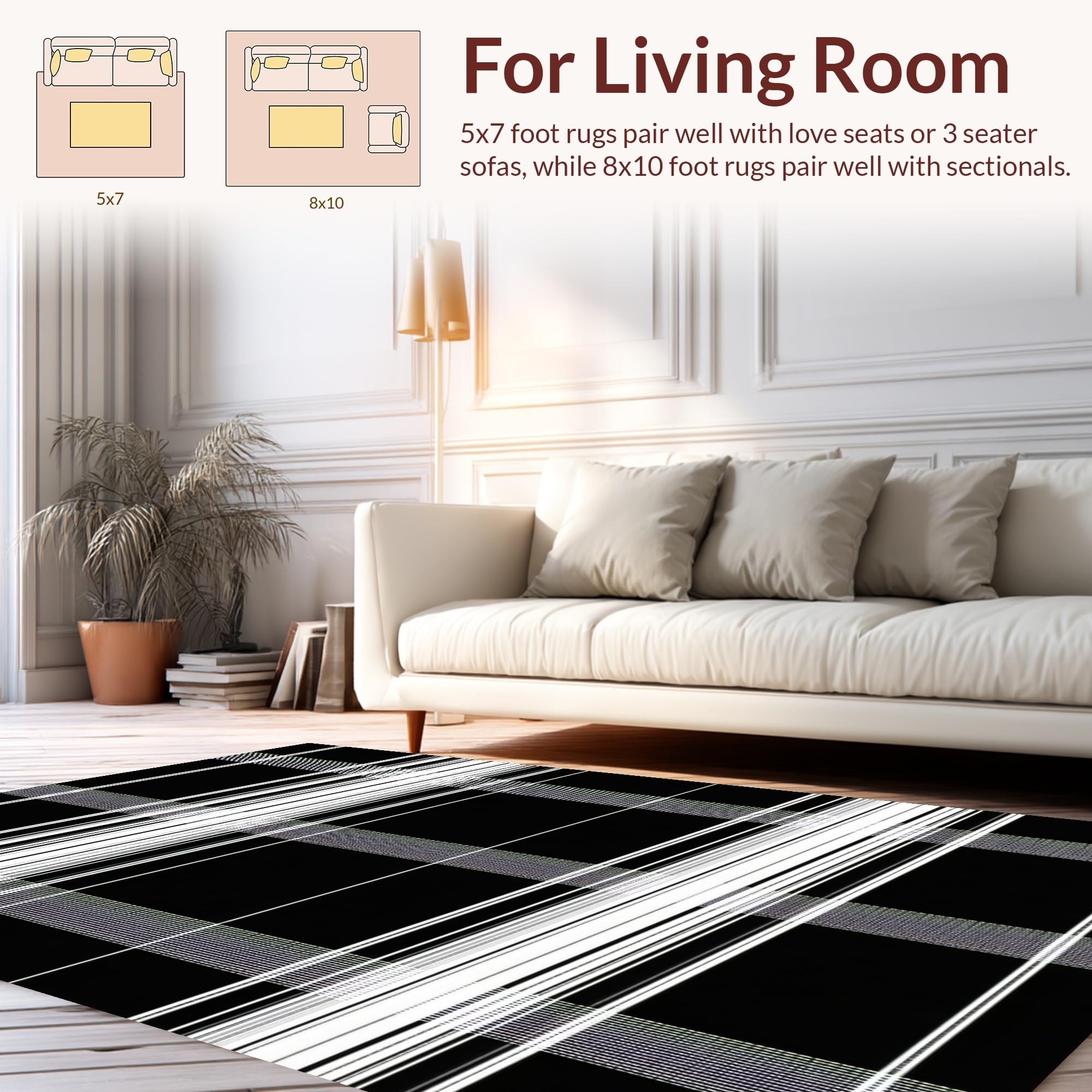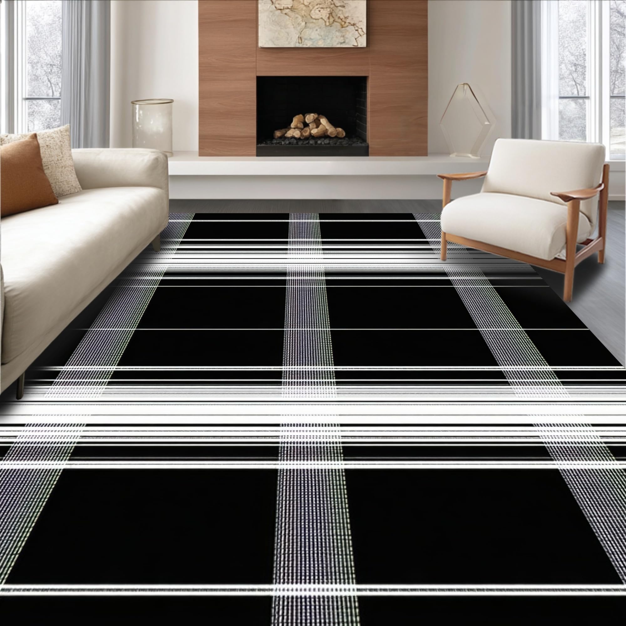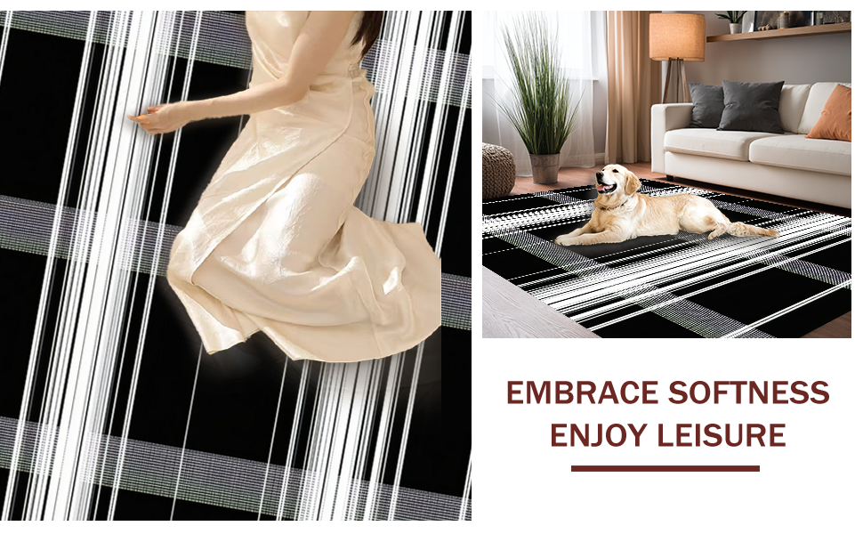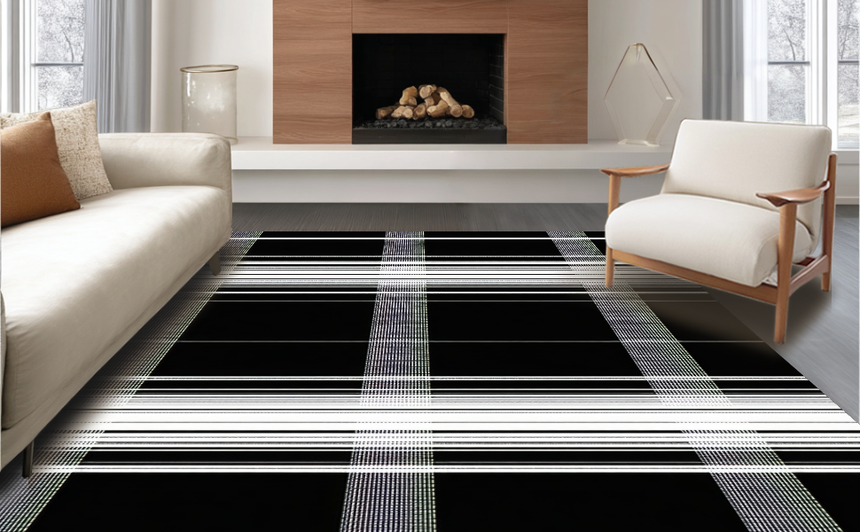 Ultra Soft Area Rug, Non Slip, Stain Resistant, Washable Area Rugs for Living Room, Bedroom, Elegant Minimalist Black and White(Black) Overview: