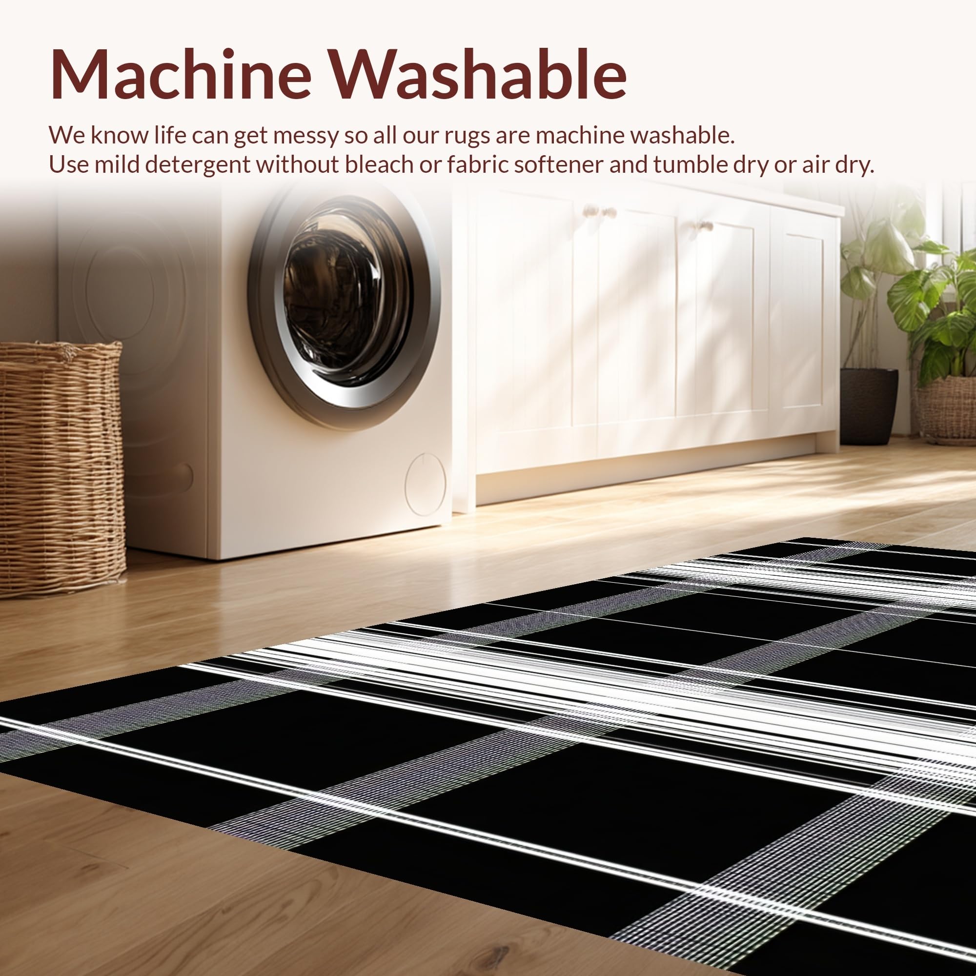 - Machine Washable: Our rugs can be easily thrown in the wash machine.
