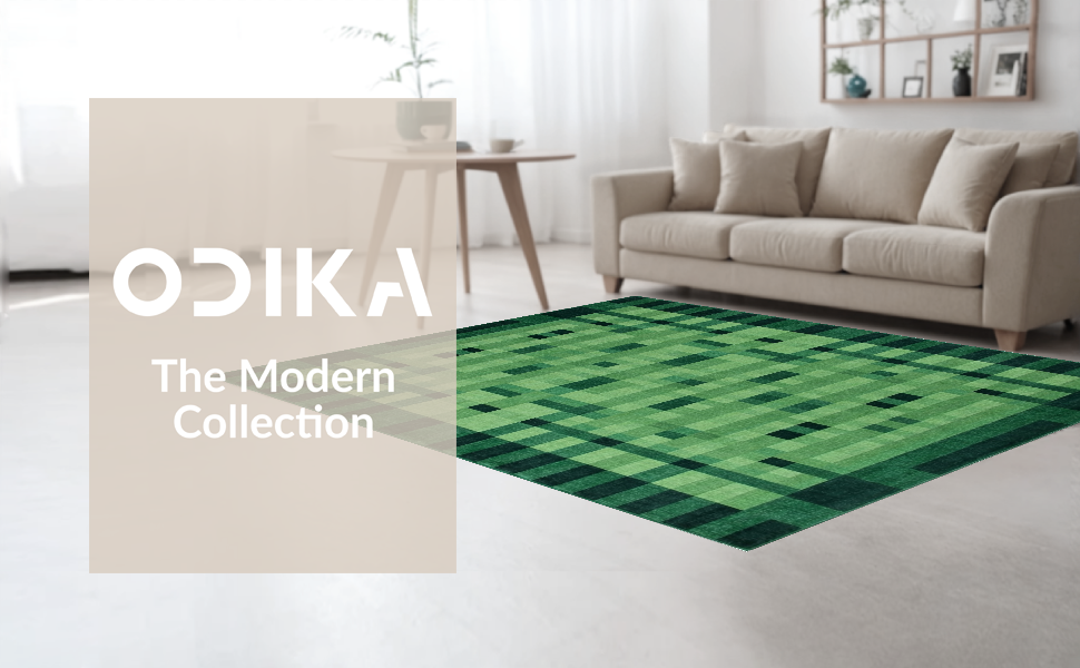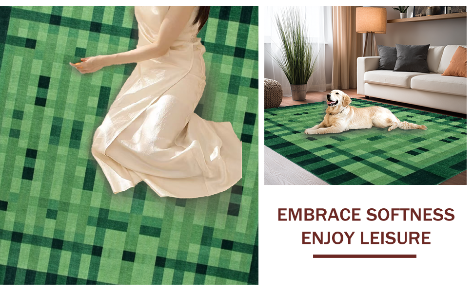 Ultra Soft Area Rug, Non Slip, Stain Resistant, Washable Area Rugs for Living Room, Bedroom, Elegant Minimalist Check Texture(Green) Overview: