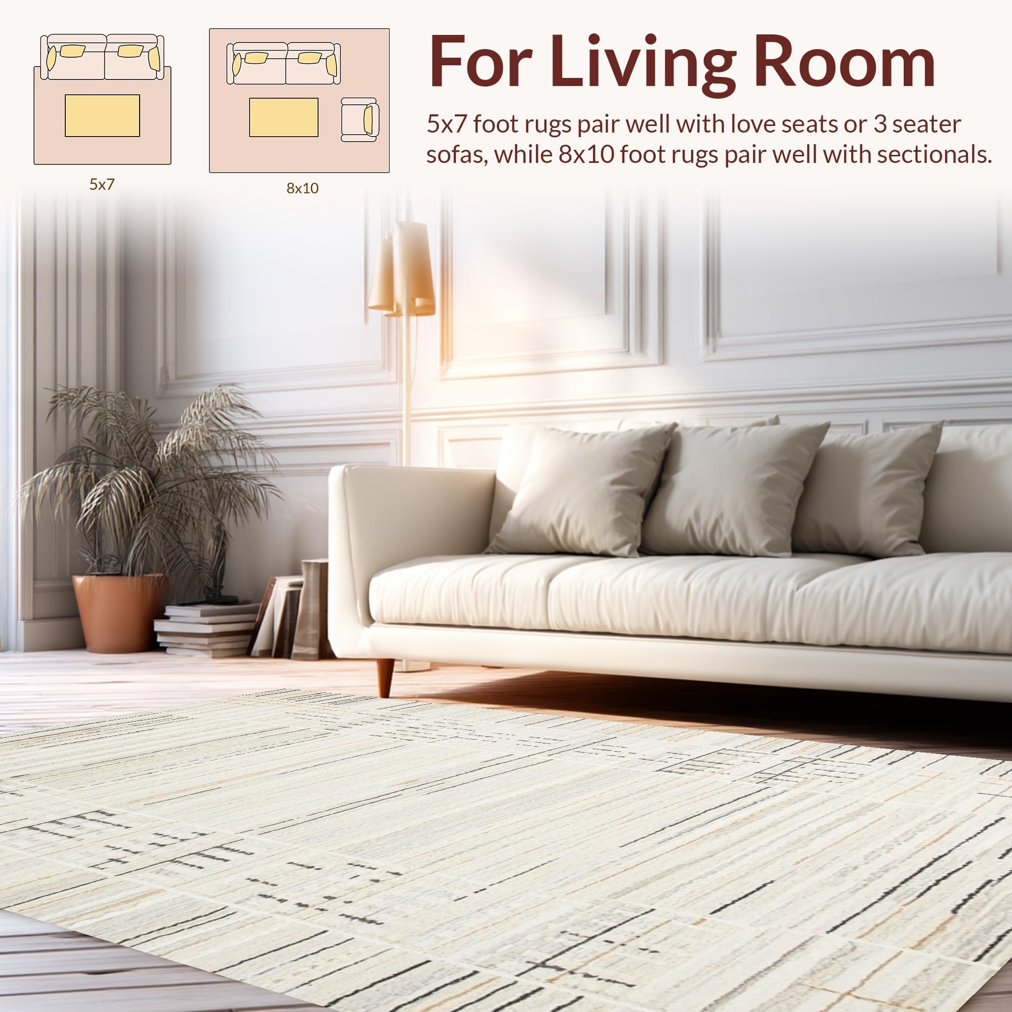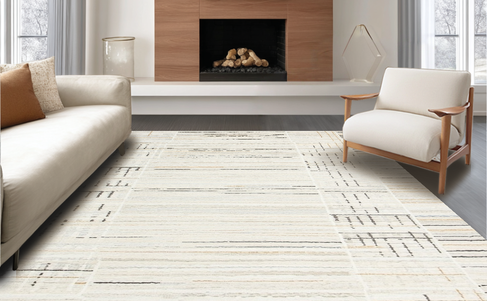 Ultra Soft Area Rug, Non Slip, Stain Resistant, Washable Area Rugs for Living Room, Bedroom, Elegant Minimalist Curved Geometry(Beige) Overview: