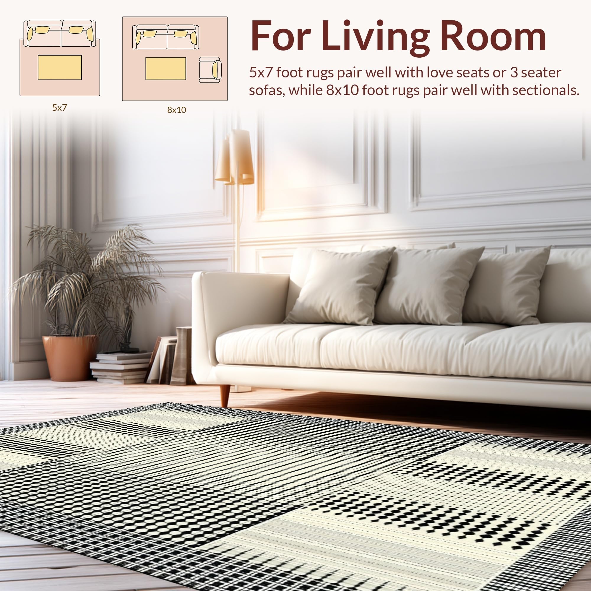 Ultra Soft Area Rug, Non Slip, Stain Resistant, Washable Area Rugs for Living Room, Bedroom, Elegant Minimalist Dot Arrangement(Beige) Overview:
