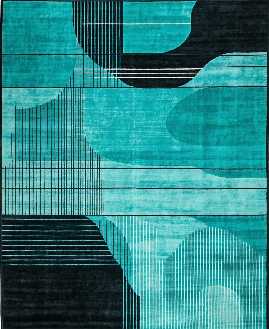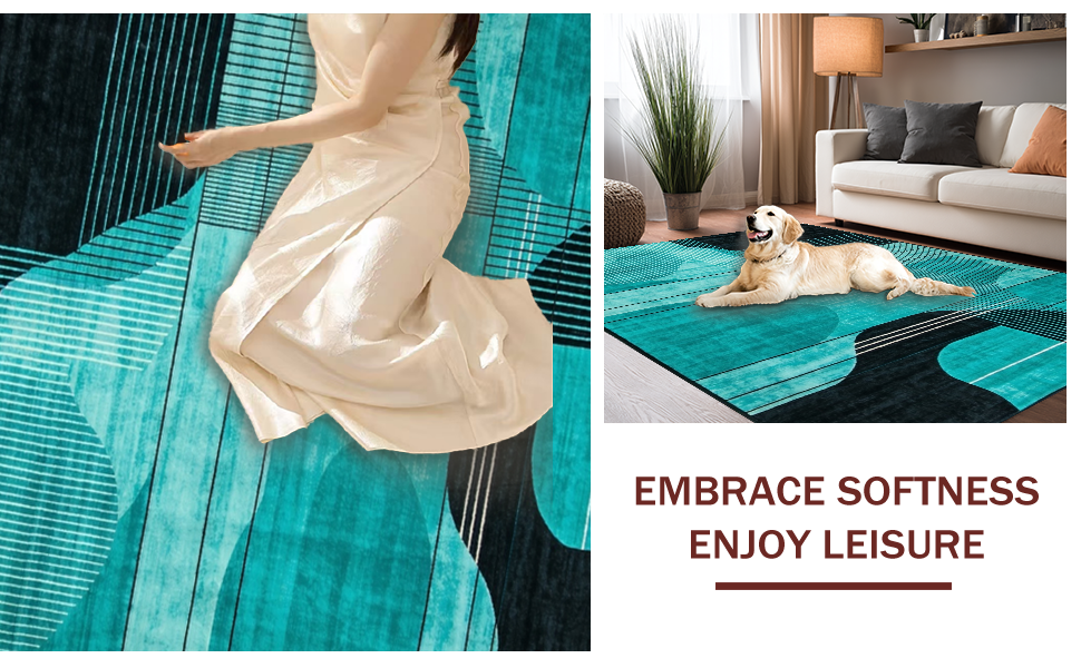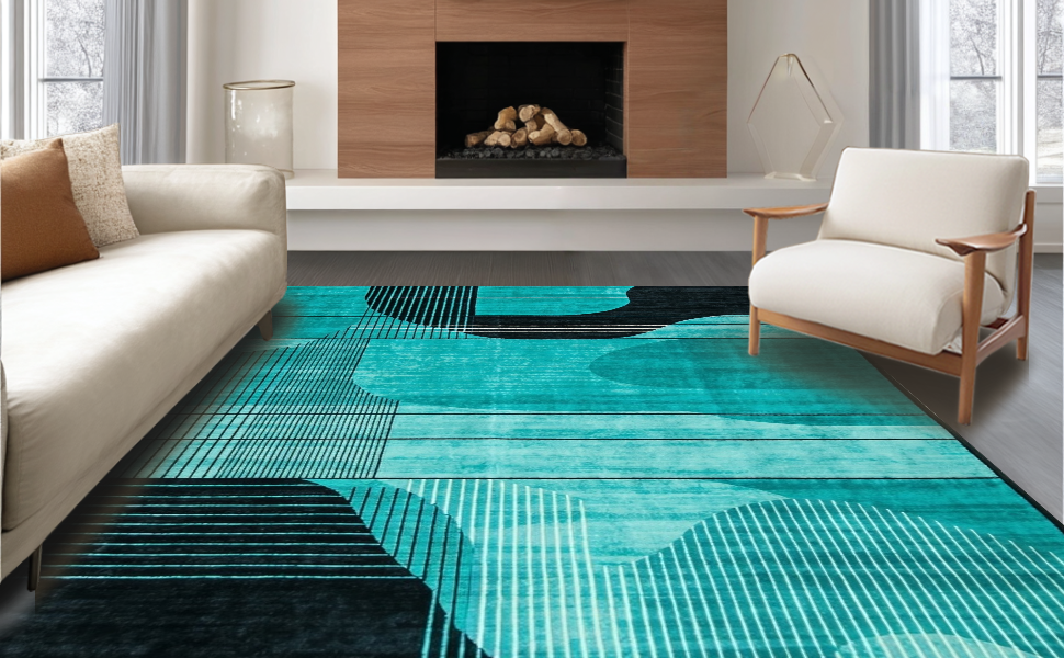 Ultra Soft Area Rug, Non Slip, Stain Resistant, Washable Area Rugs for Living Room, Bedroom, Elegant Minimalist Flowing Patterns(Blue) Overview:
