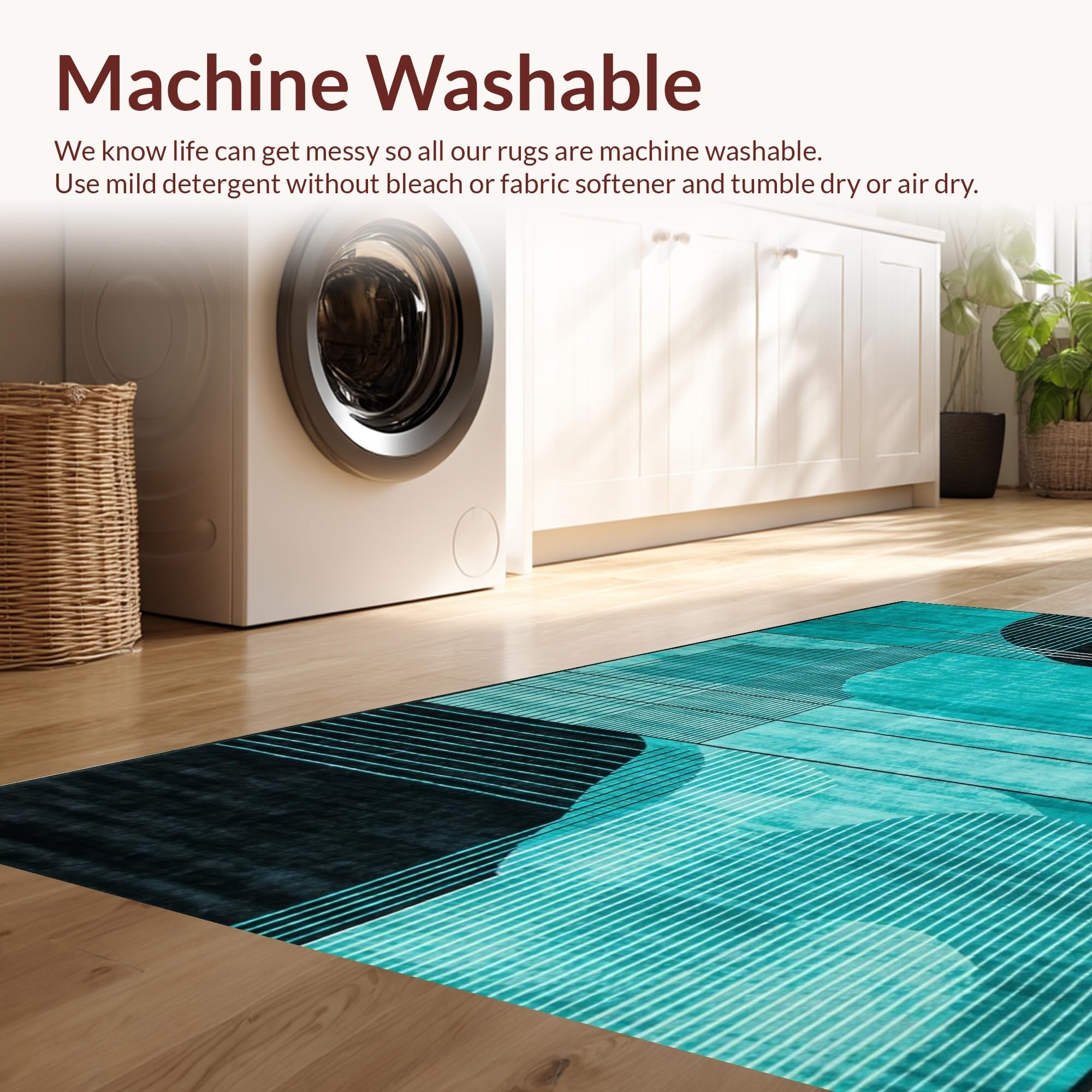 - Machine Washable: Our rugs can be easily thrown in the wash machine.