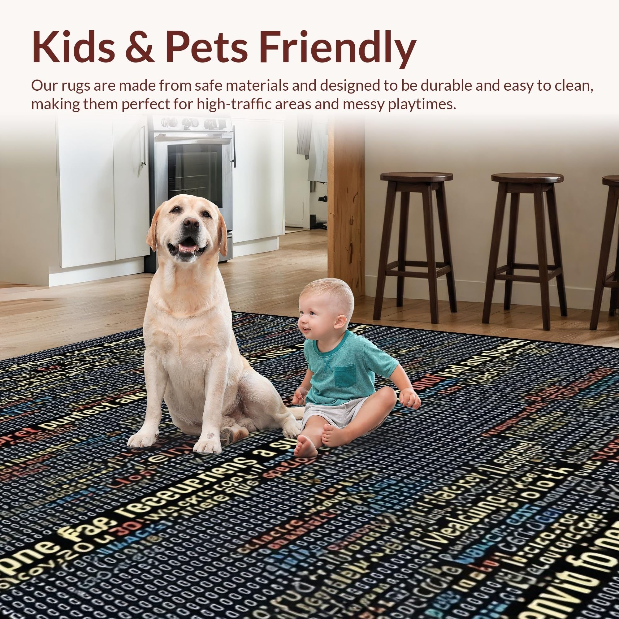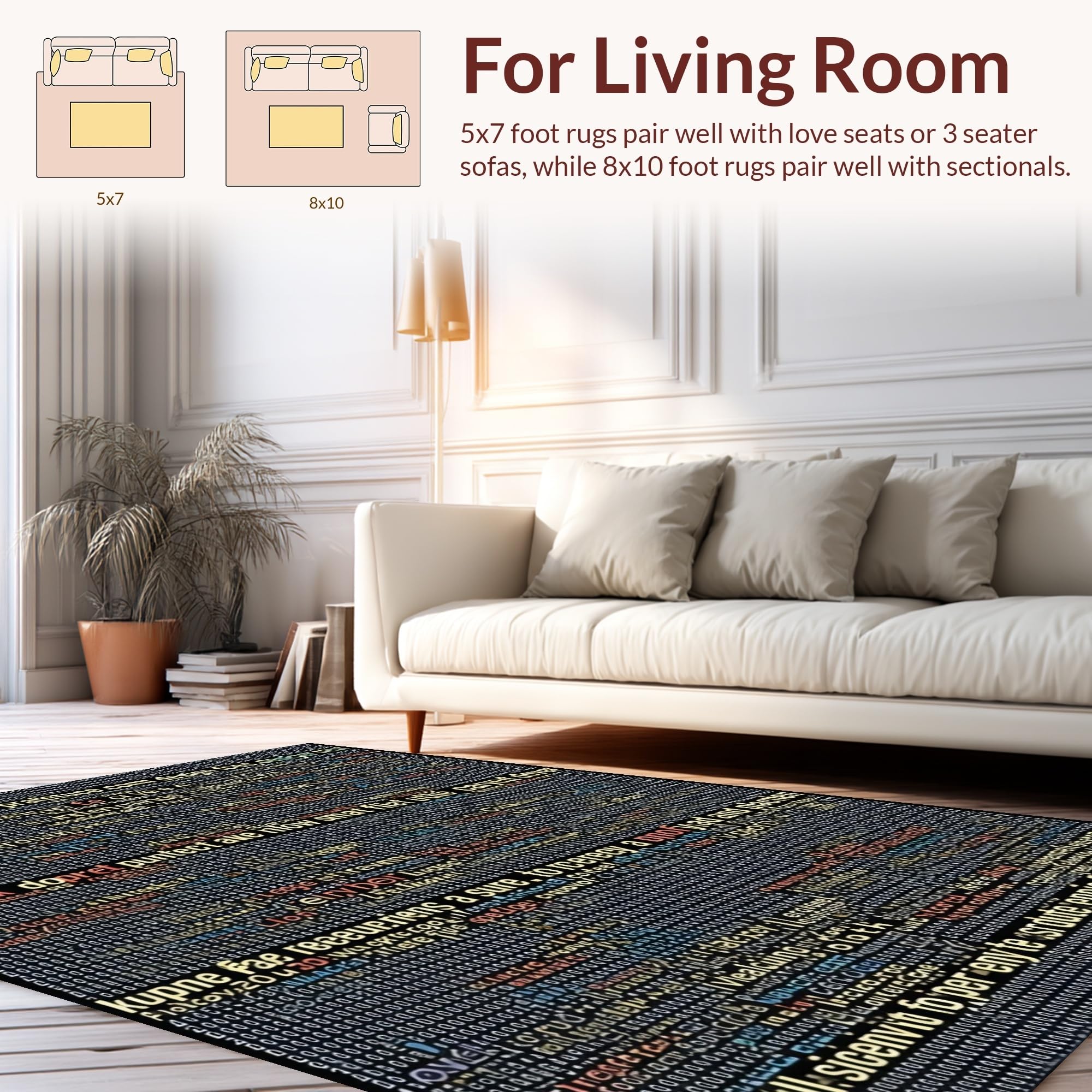 Ultra Soft Area Rug, Non Slip, Stain Resistant, Washable Area Rugs for Living Room, Bedroom, Elegant Minimalist Humor Statement(Black) Overview: