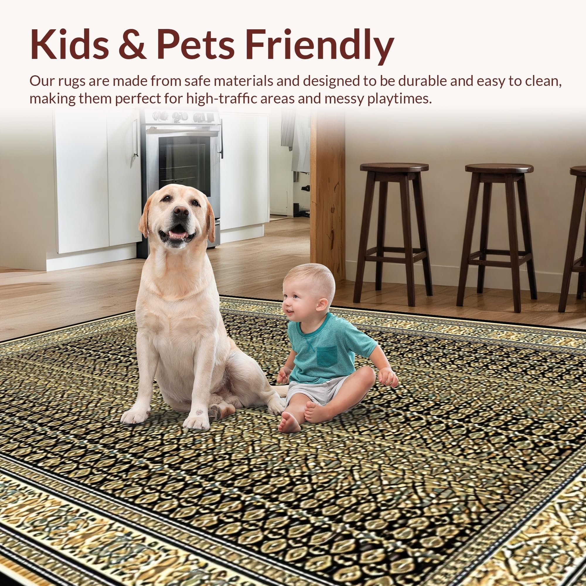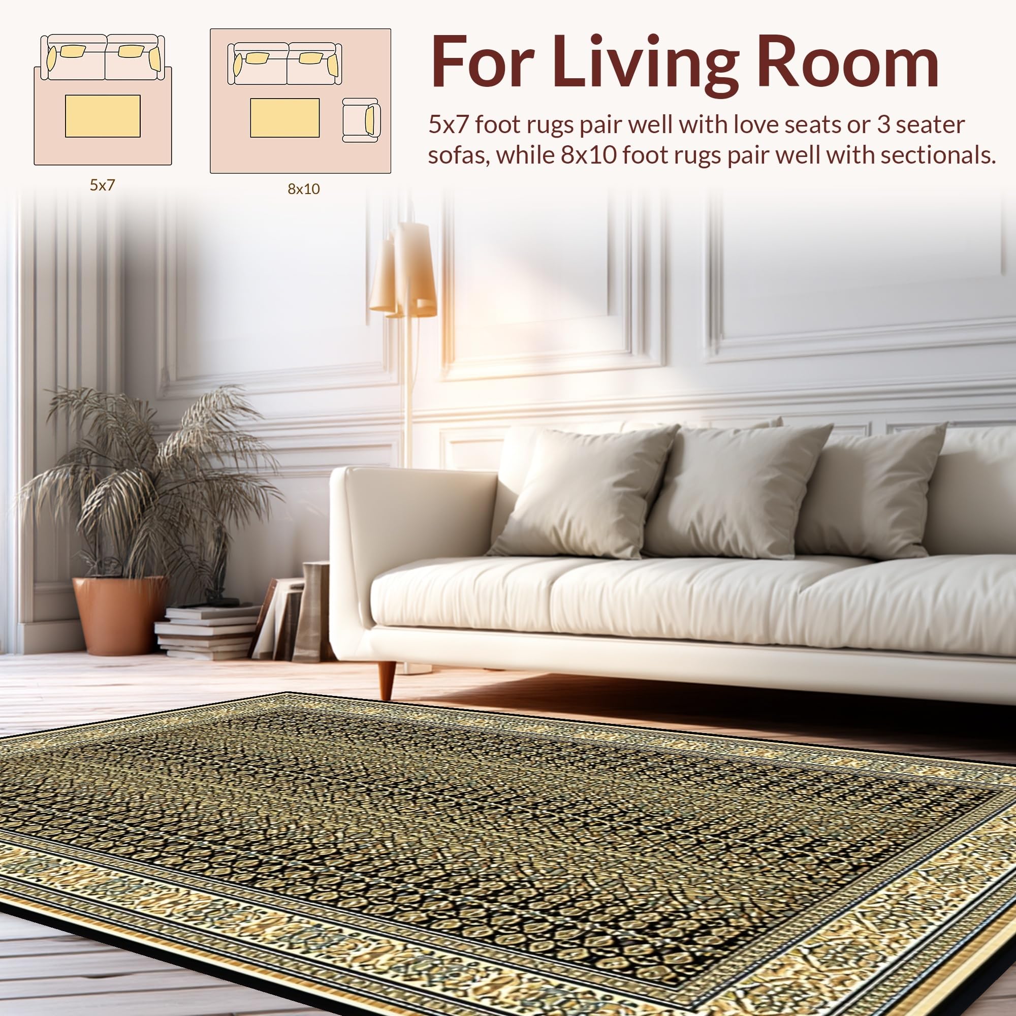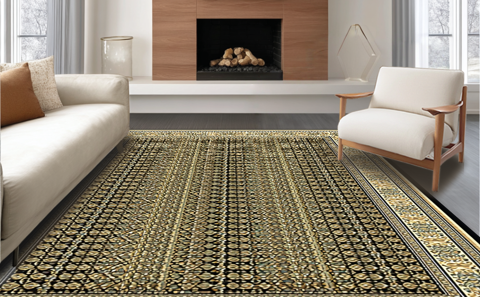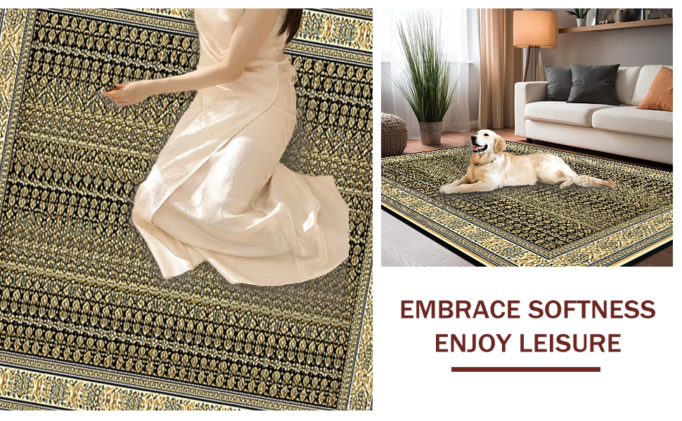 Ultra Soft Area Rug, Non Slip, Stain Resistant, Washable Area Rugs for Living Room, Bedroom, Elegant Minimalist Natural Aesthetic(Black) Overview:
