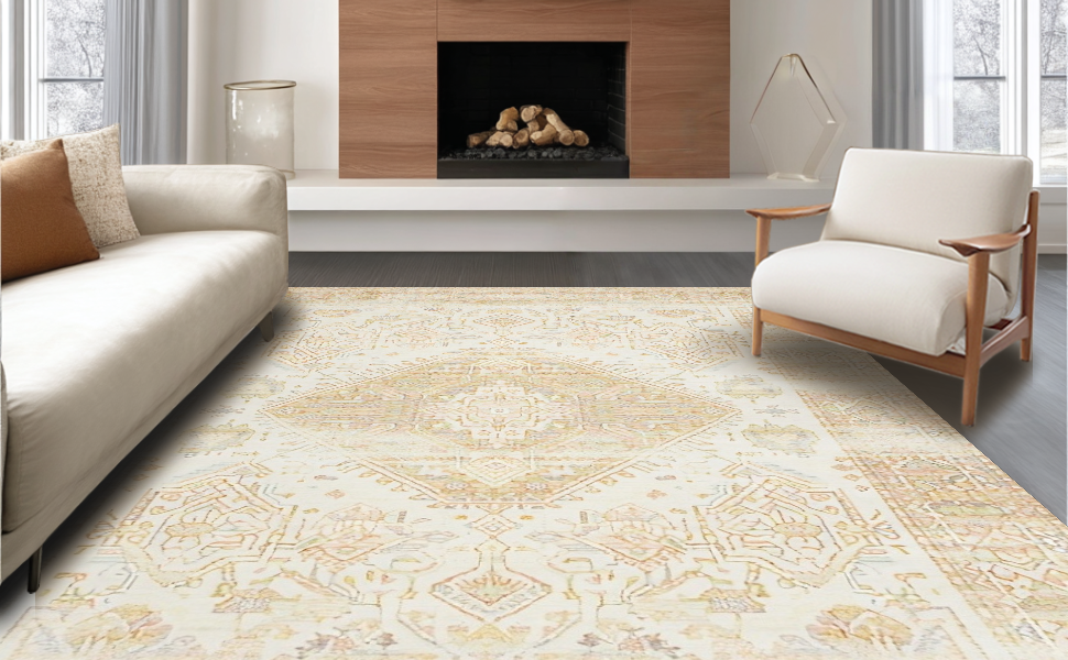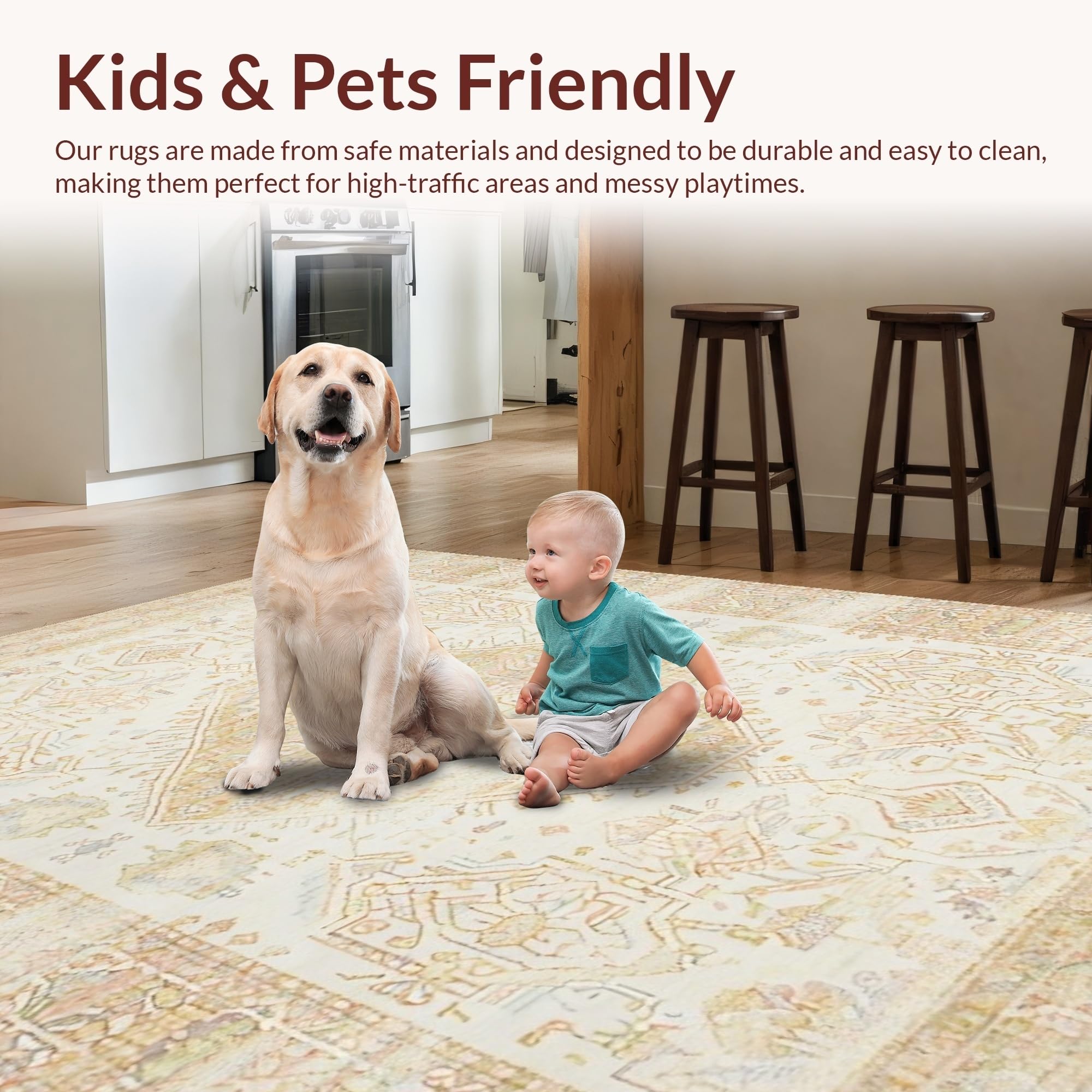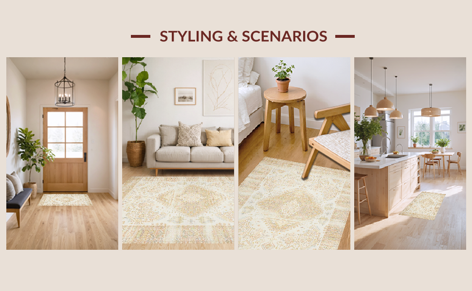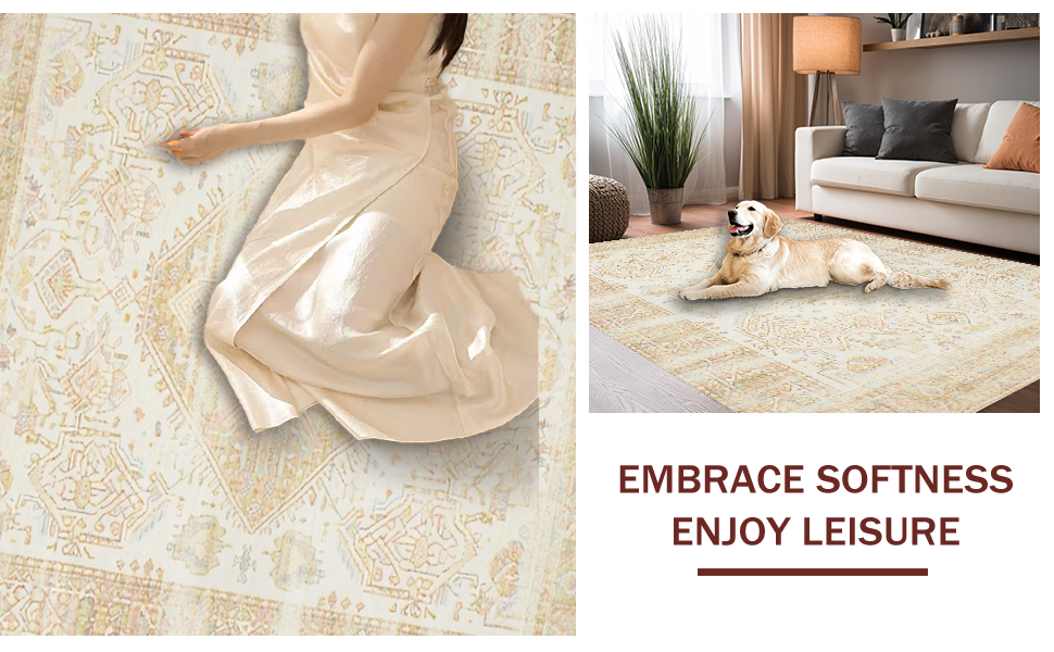 Ultra Soft Area Rug, Non Slip, Stain Resistant, Washable Area Rugs for Living Room, Bedroom, Elegant Minimalist Ogee Pattern(Beige) Overview: