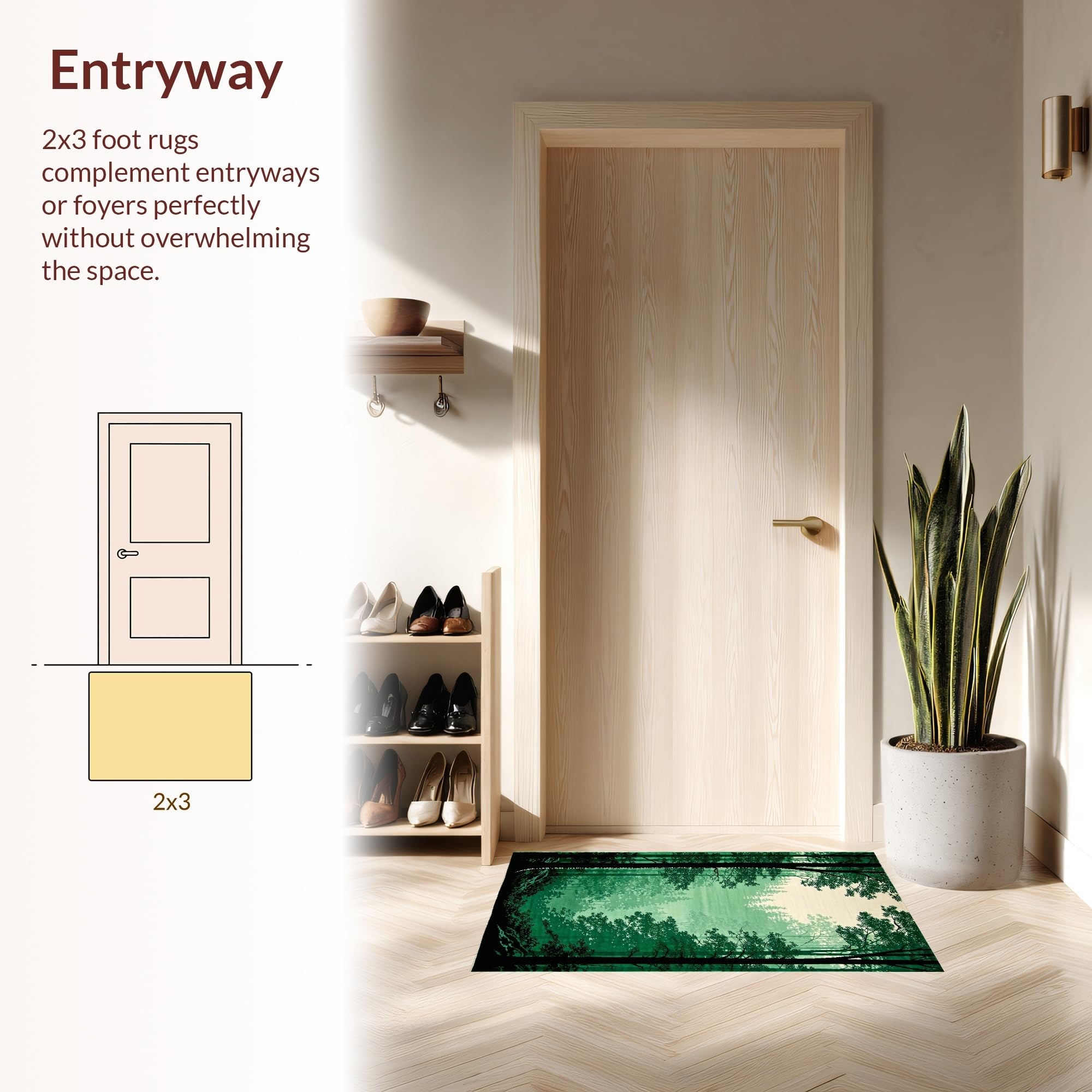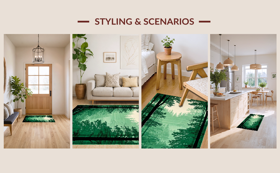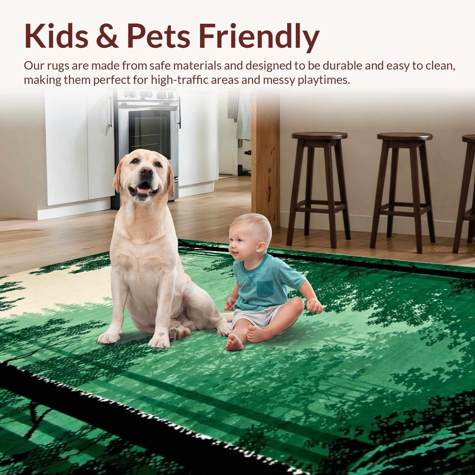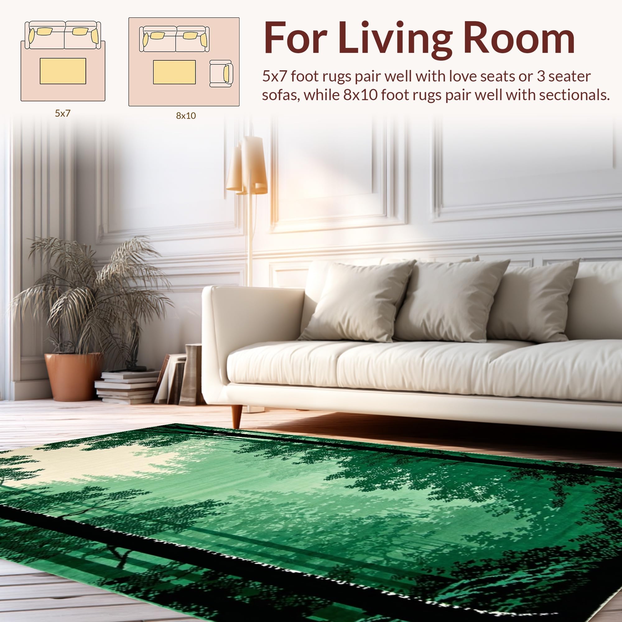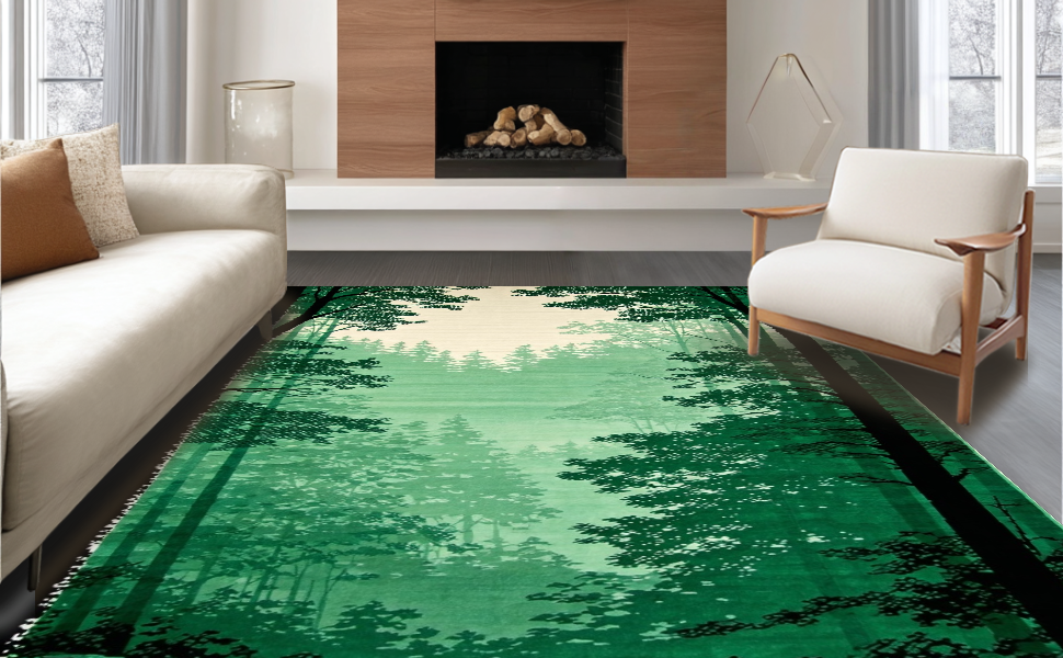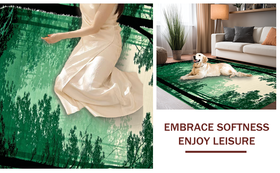 Ultra Soft Area Rug, Non Slip, Stain Resistant, Washable Area Rugs for Living Room, Bedroom, Elegant Minimalist Organic Shapes(Green) Overview: