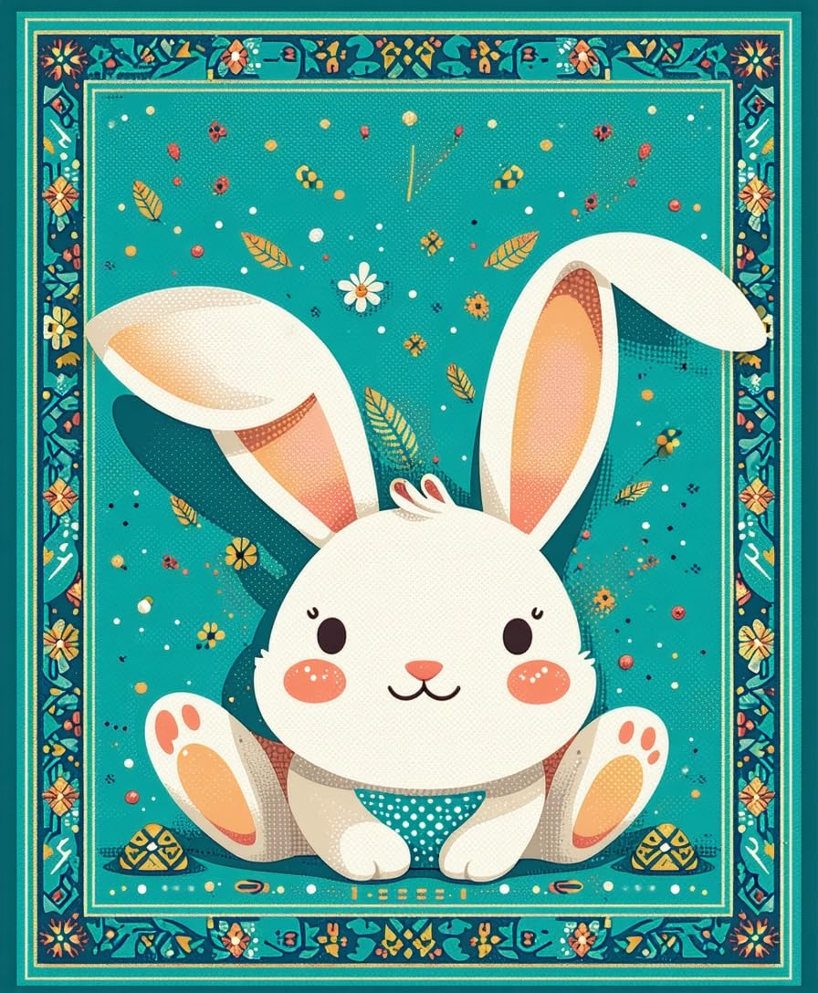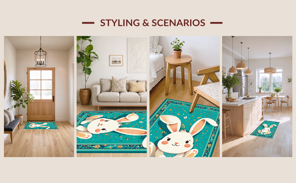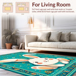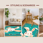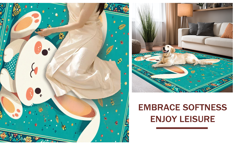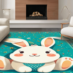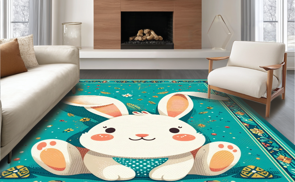 Ultra Soft Area Rug, Non Slip, Stain Resistant, Washable Area Rugs for Living Room, Bedroom, Elegant Minimalist Spring Rabbit Pattern(Blue) Overview: