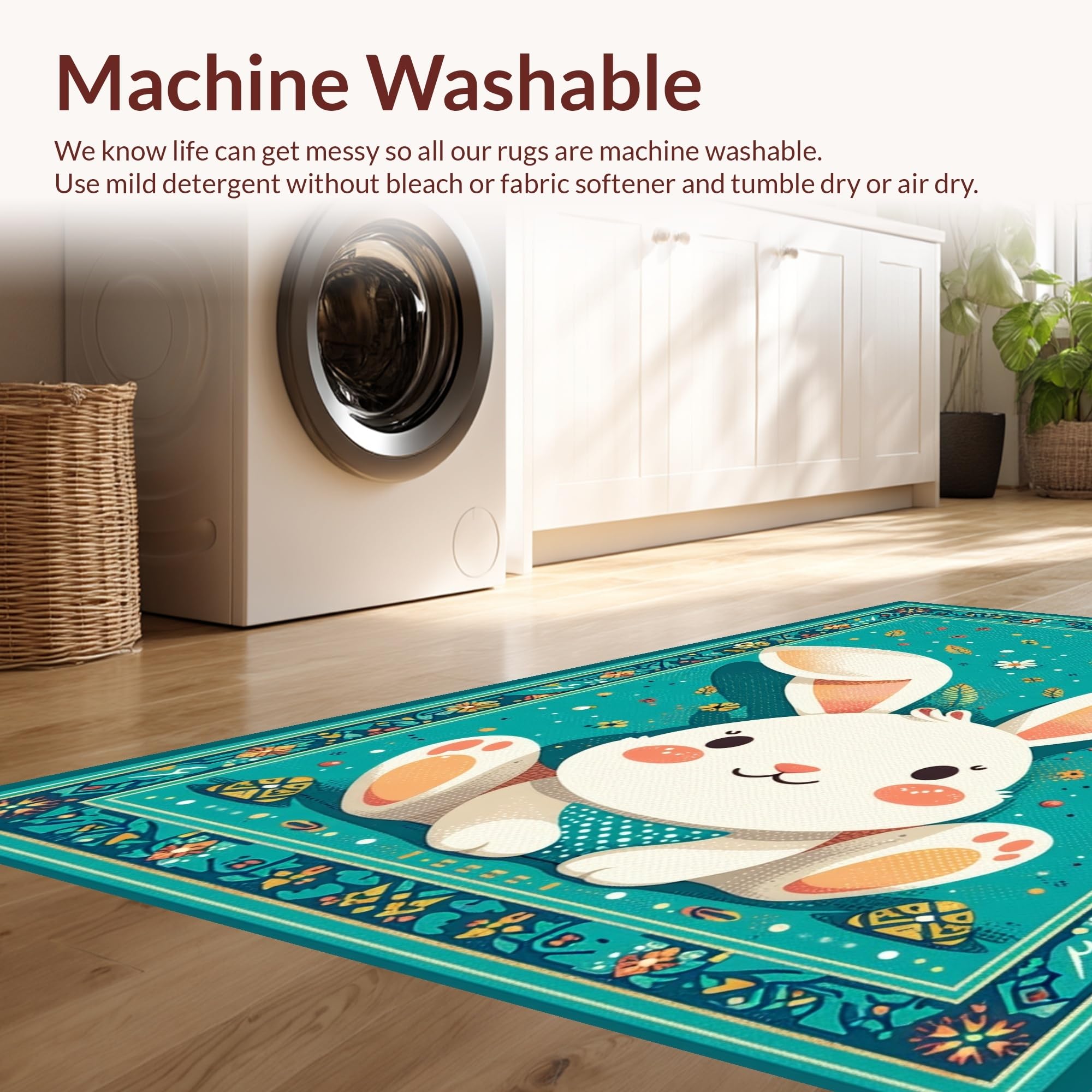 - Machine Washable: Our rugs can be easily thrown in the wash machine.
