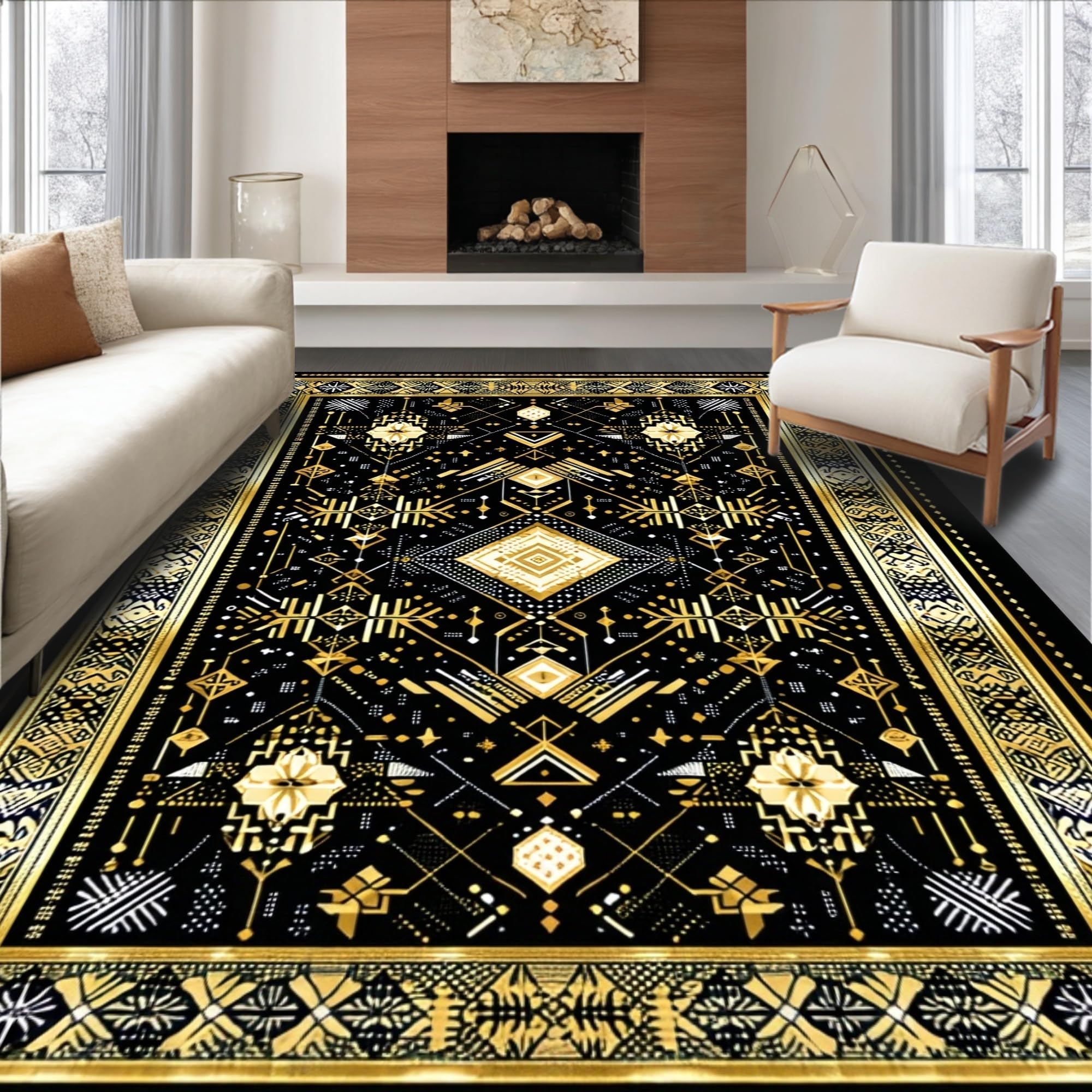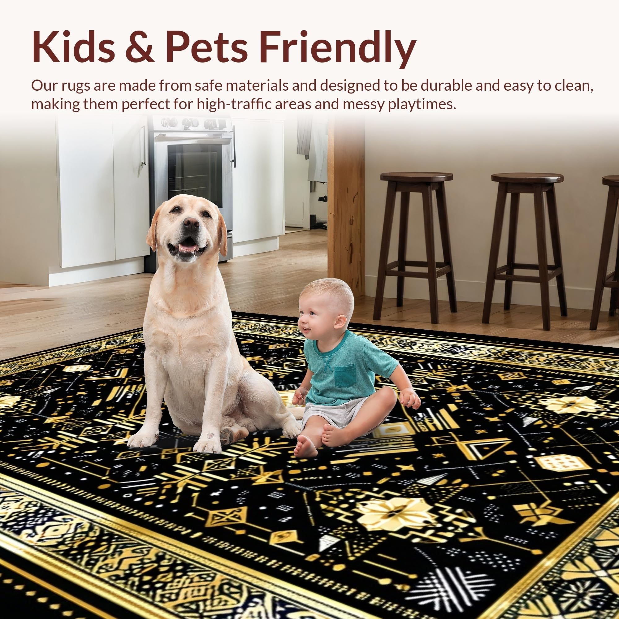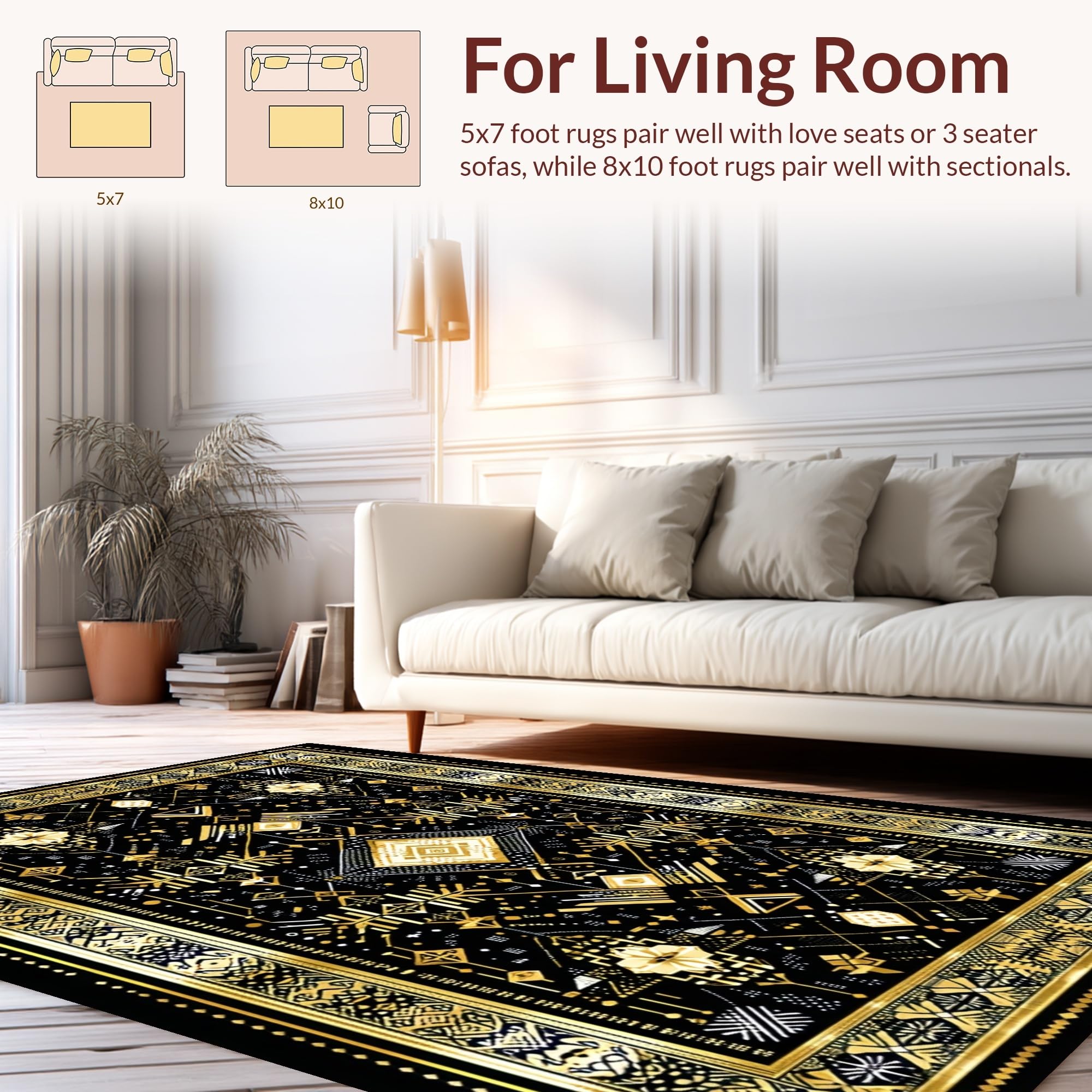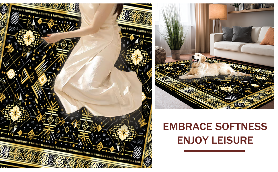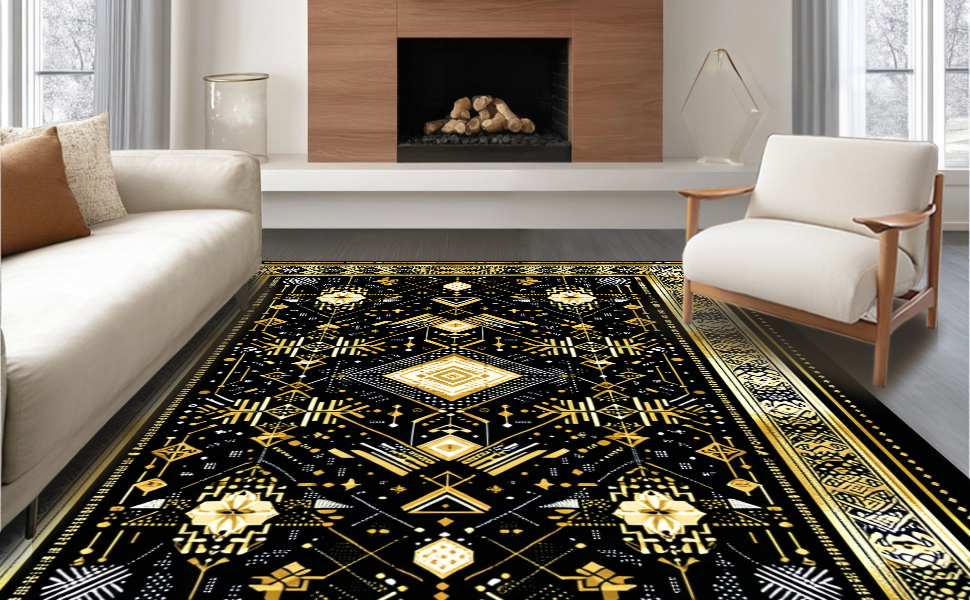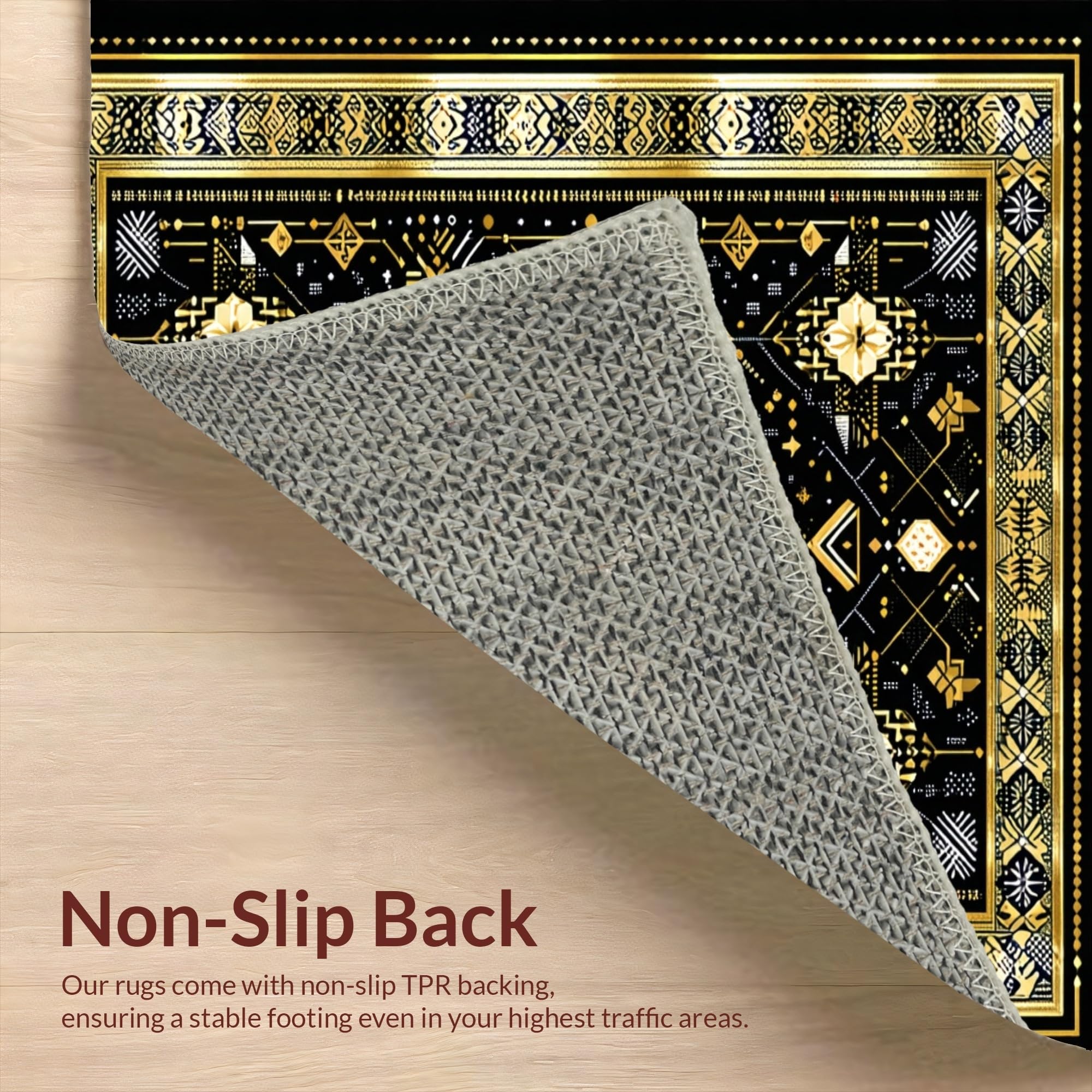 Ultra Soft Area Rug, Non Slip, Stain Resistant, Washable Area Rugs for Living Room, Bedroom, Elegant Minimalist Tiled Arrangement(Black) Overview: