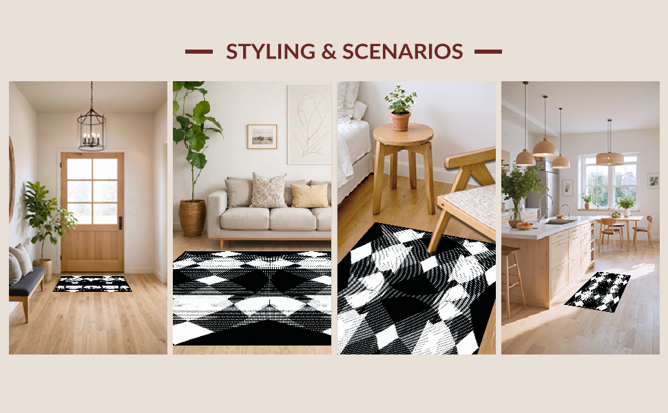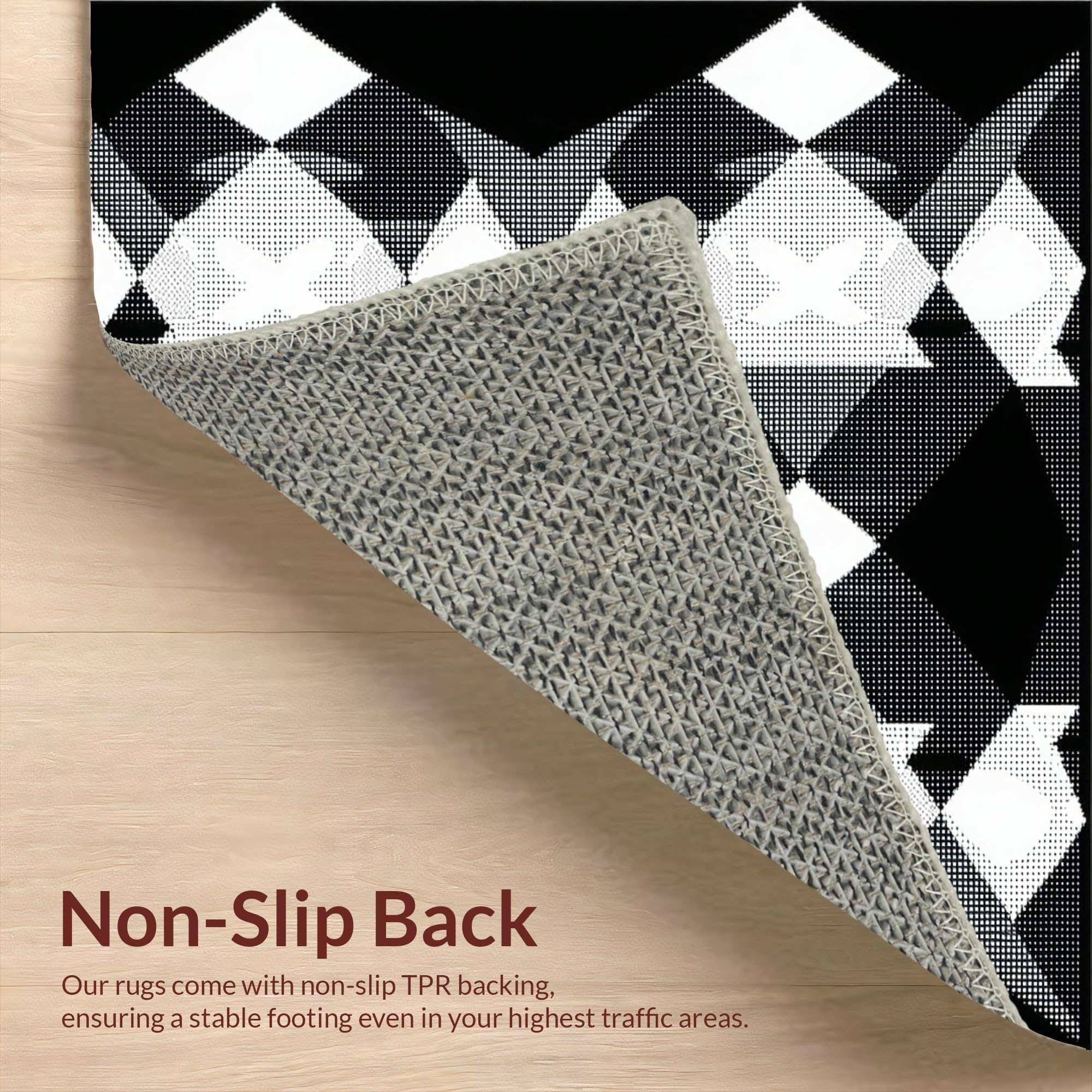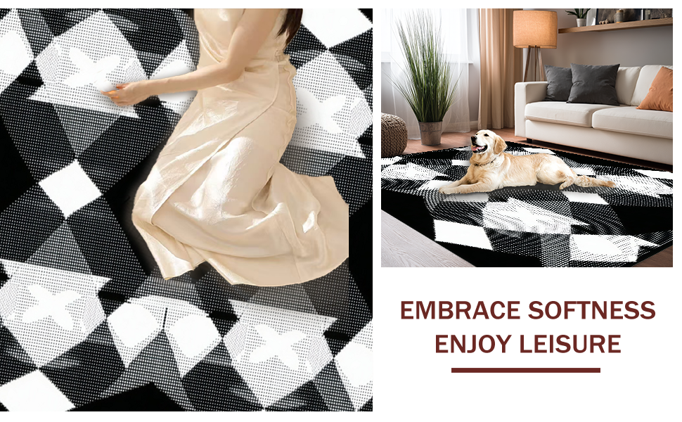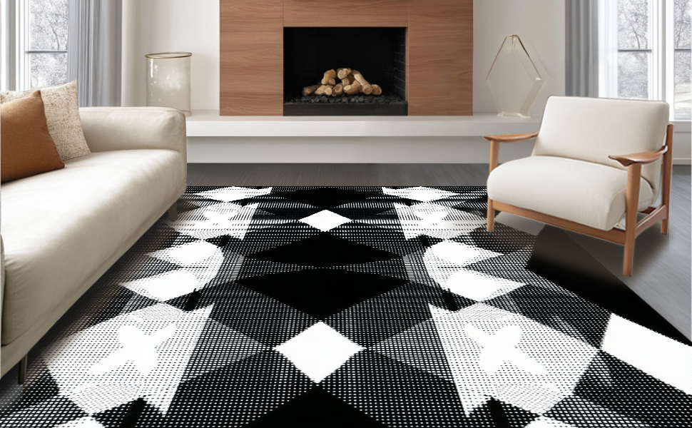 Ultra Soft Area Rug, Non Slip, Stain Resistant, Washable Area Rugs for Living Room, Bedroom, Elegant Minimalist Trellis Pattern(Black) Overview: