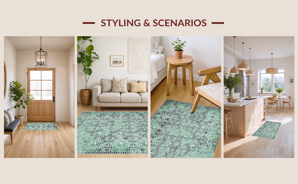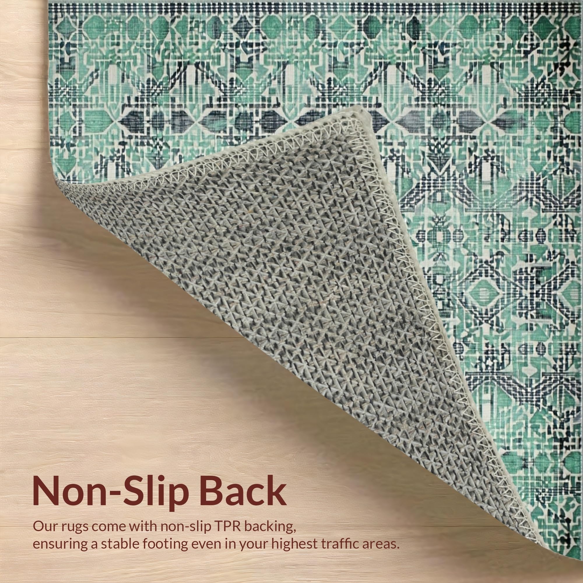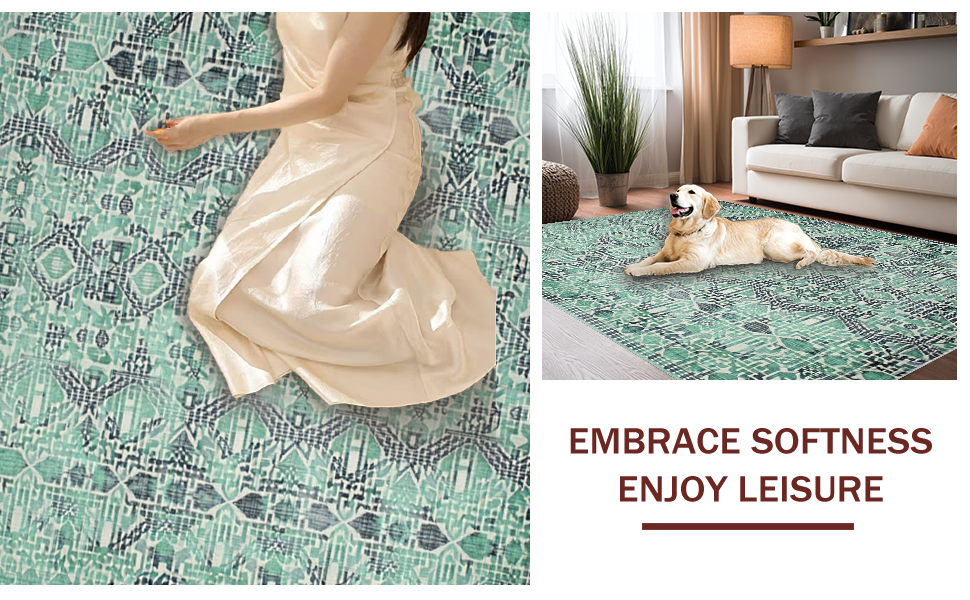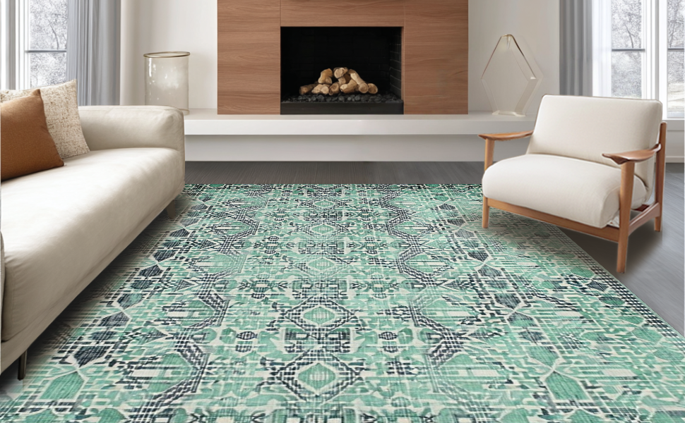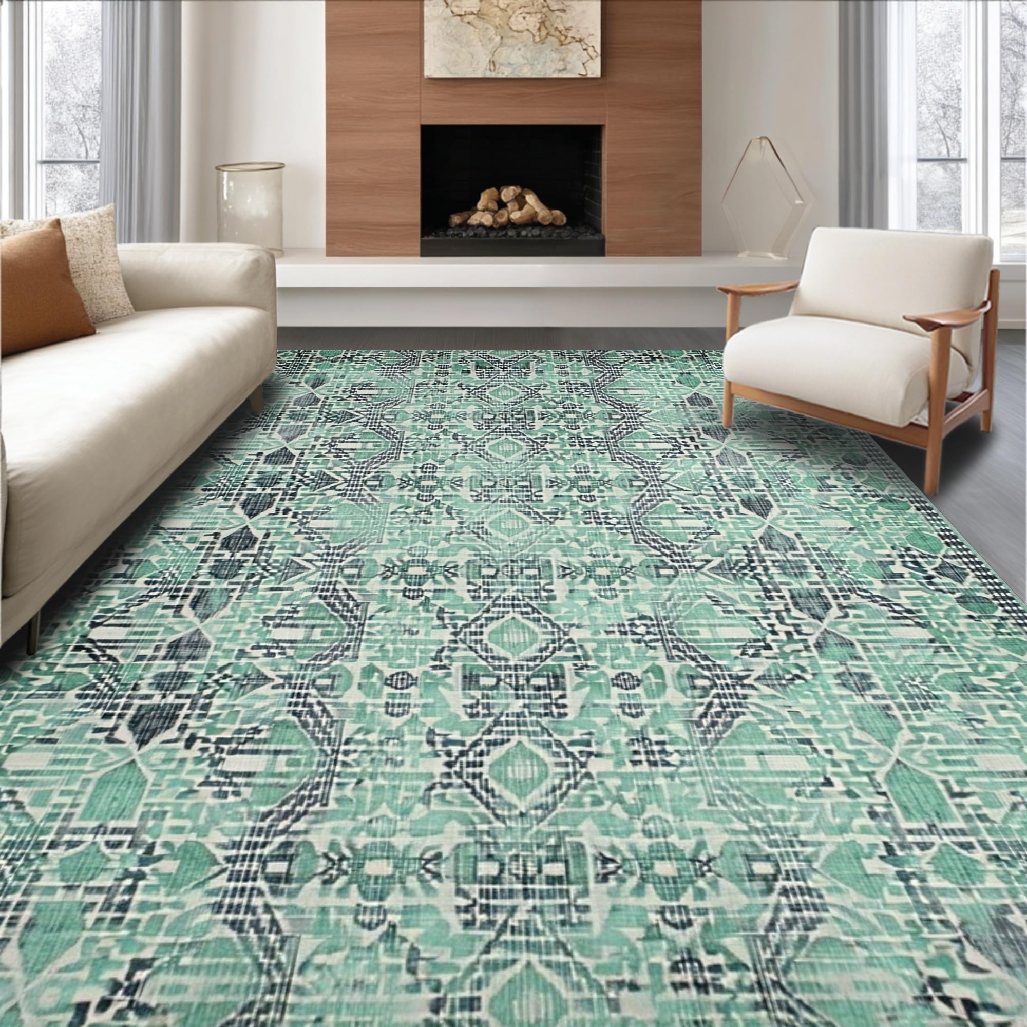 Ultra Soft Area Rug, Non Slip, Stain Resistant, Washable Area Rugs for Living Room, Bedroom, Elegant Minimalist Trellis Style(Green) Overview: