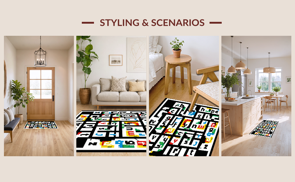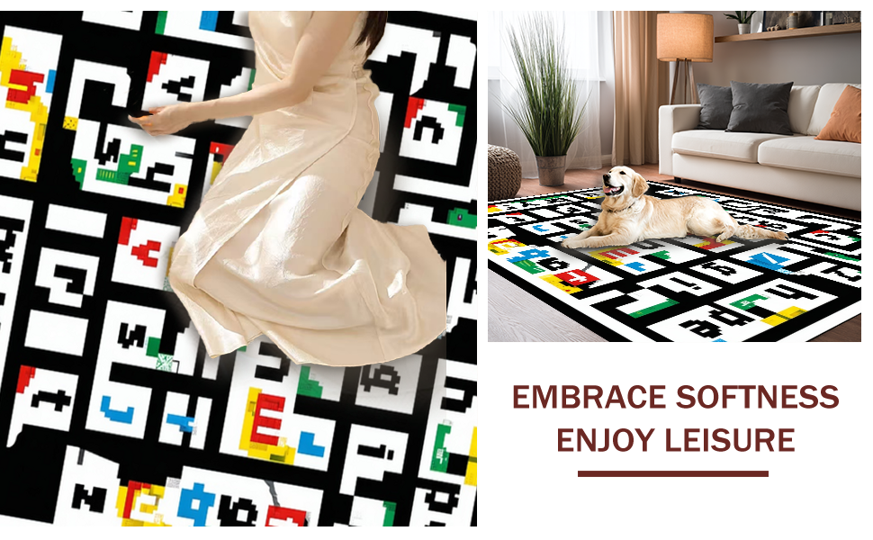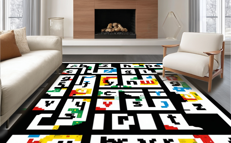 Ultra Soft Area Rug, Non Slip, Stain Resistant, Washable Area Rugs for Living Room, Bedroom, Elegant Minimalist White Alphabet Arrangement(Red) Overview: