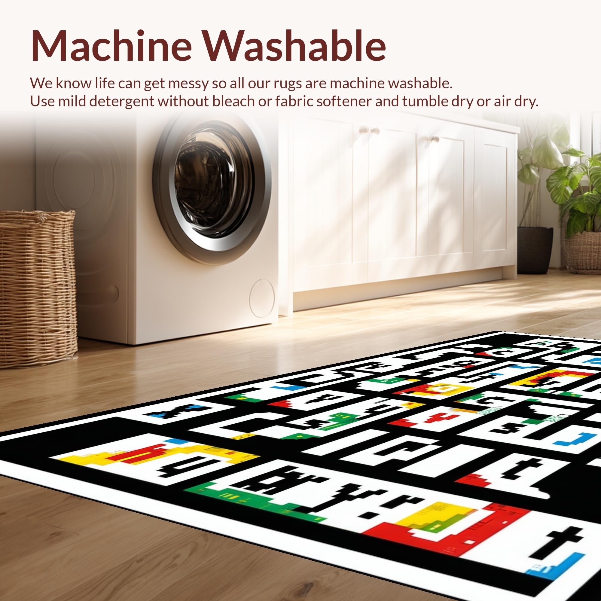 - Machine Washable: Our rugs can be easily thrown in the wash machine.