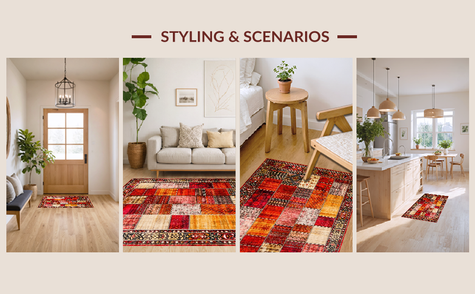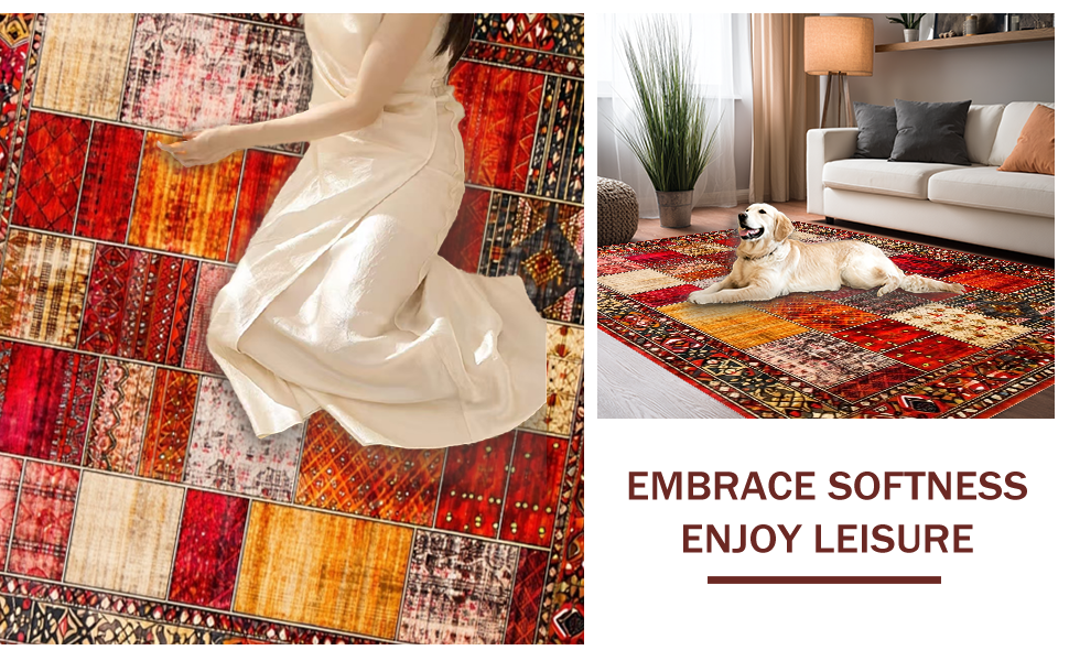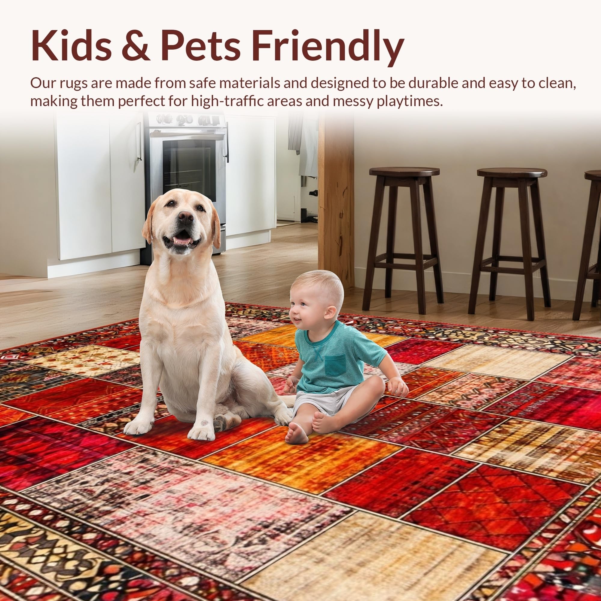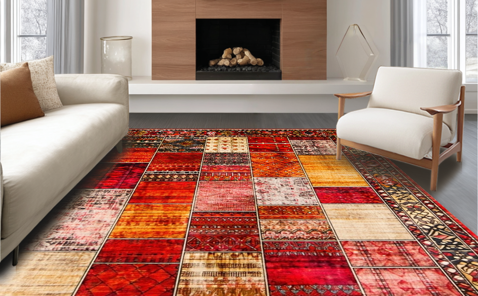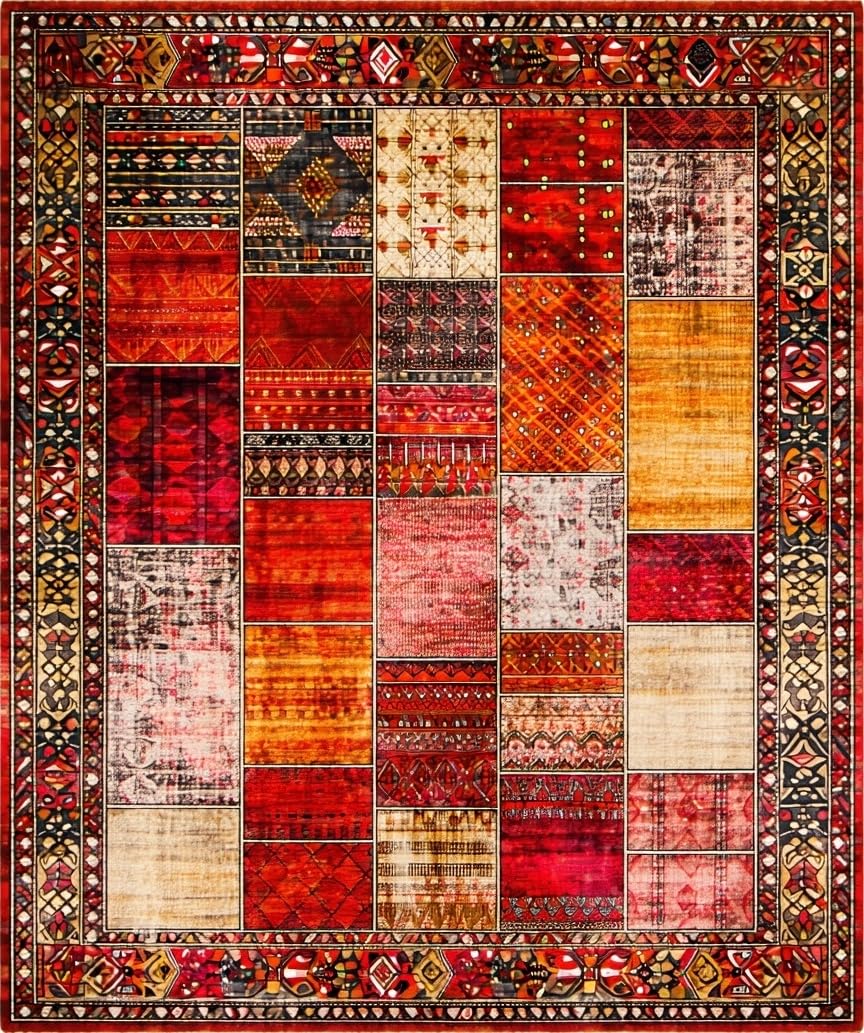 Ultra Soft Area Rug, Non Slip, Stain Resistant, Washable Area Rugs for Living Room, Bedroom, Elegant Mixed Motif in Diverse Tones(Red) Overview: