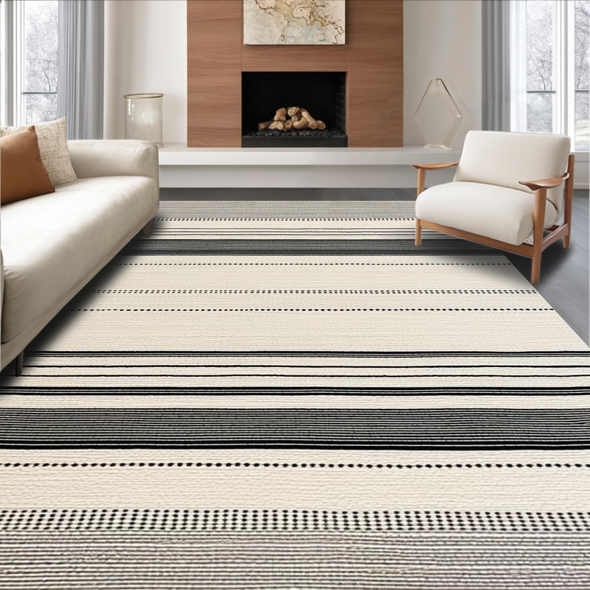Ultra Soft Area Rug, Non Slip, Stain Resistant, Washable Area Rugs for Living Room, Bedroom, Elegant Modern Geometric Fusion(Beige) Overview: