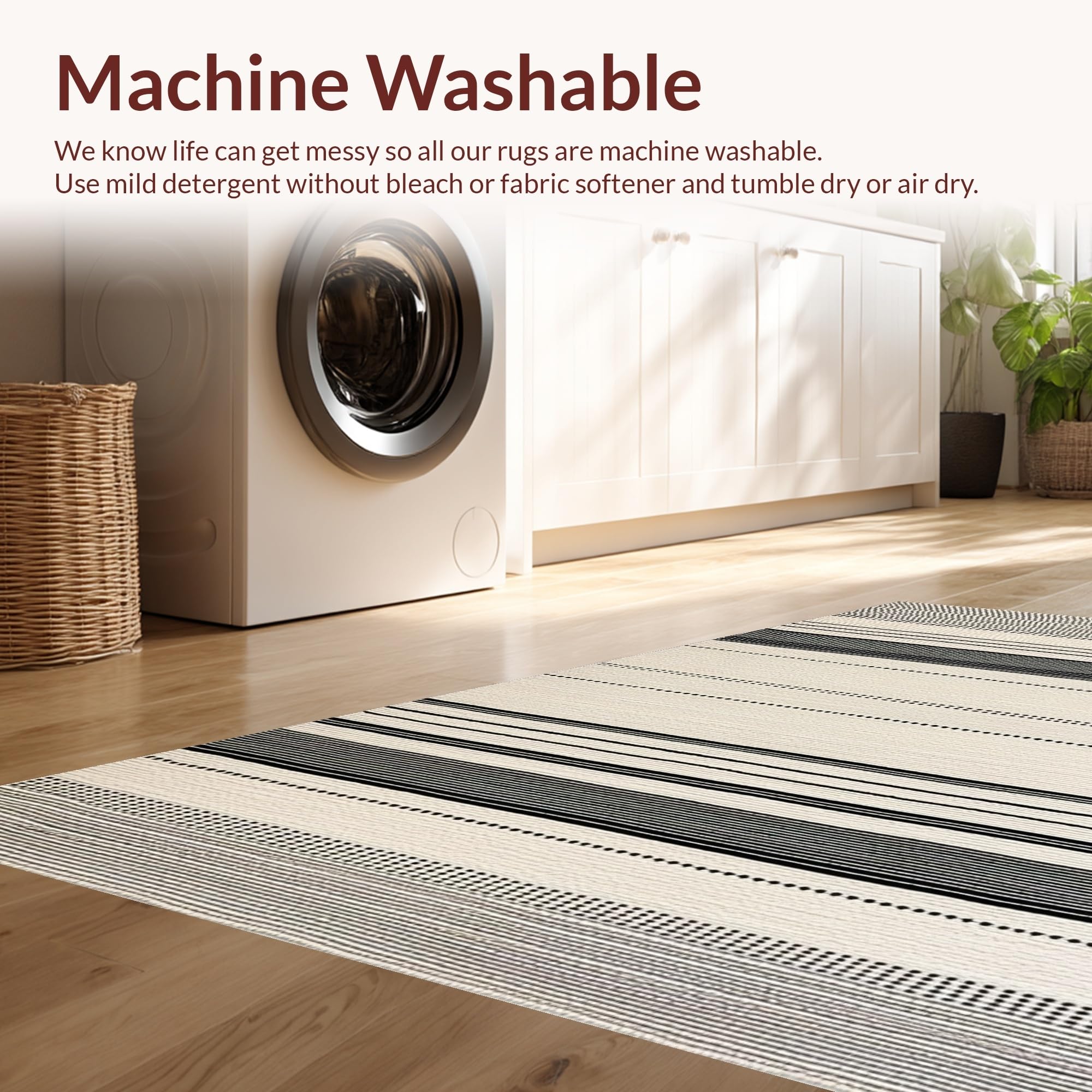 - Machine Washable: Our rugs can be easily thrown in the wash machine.