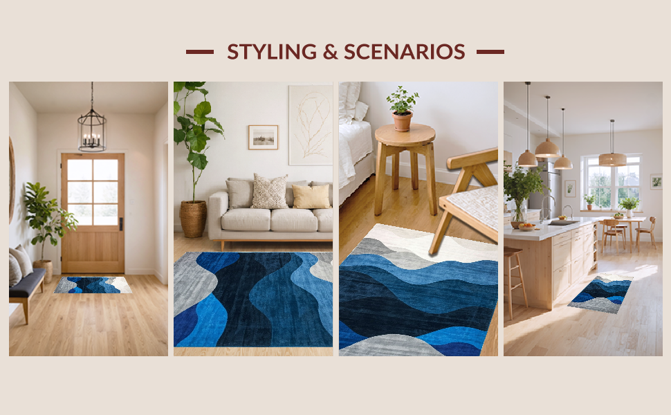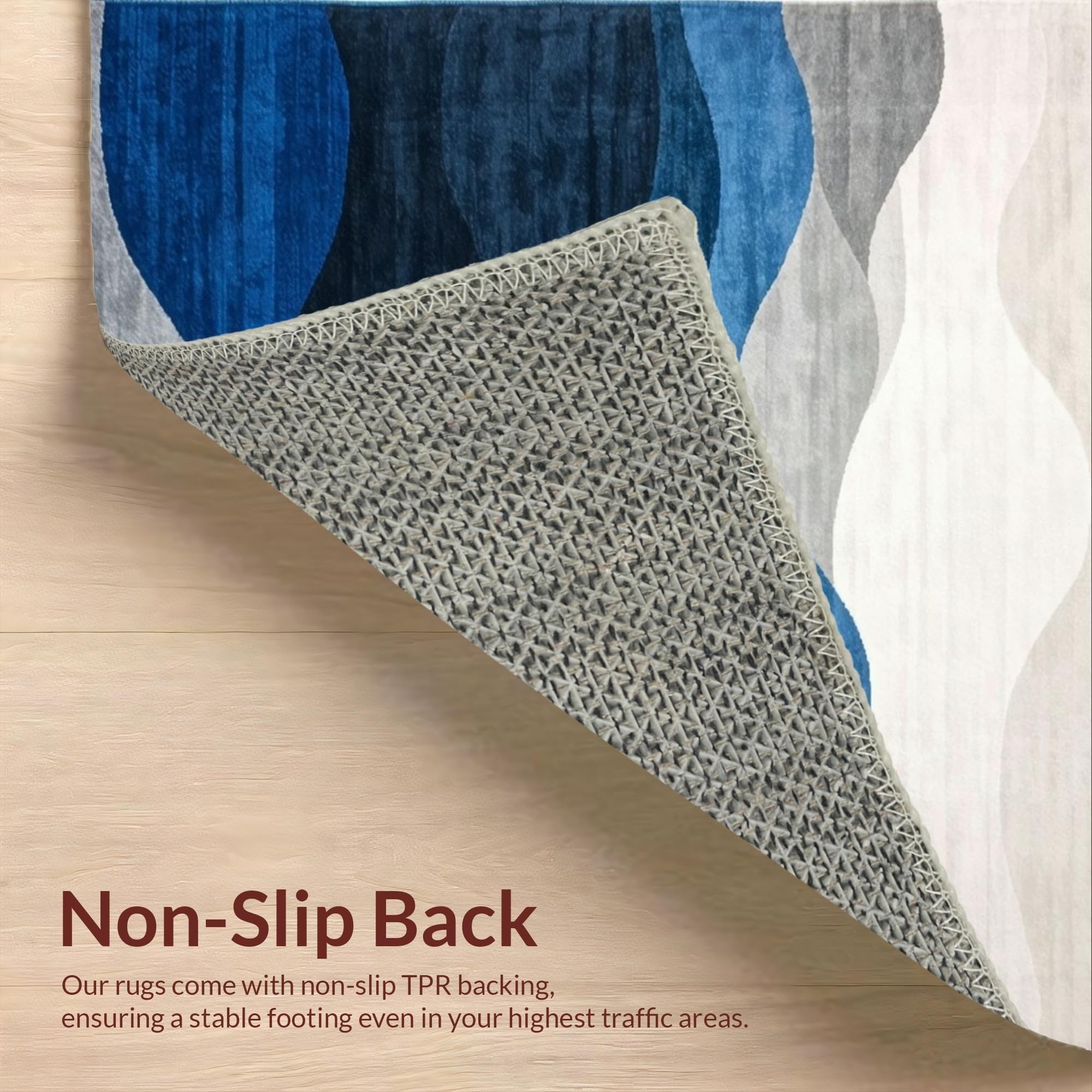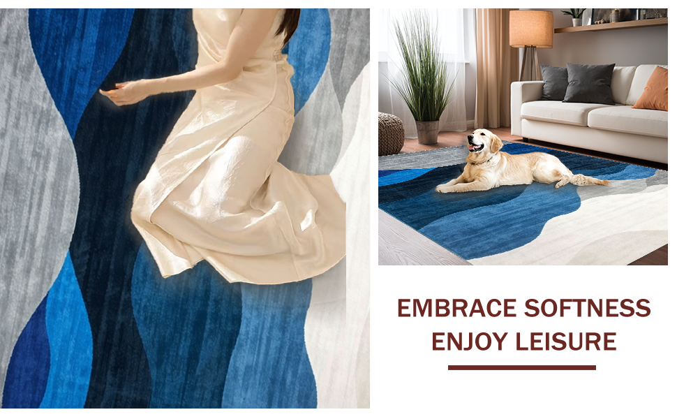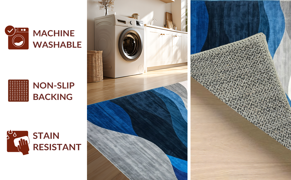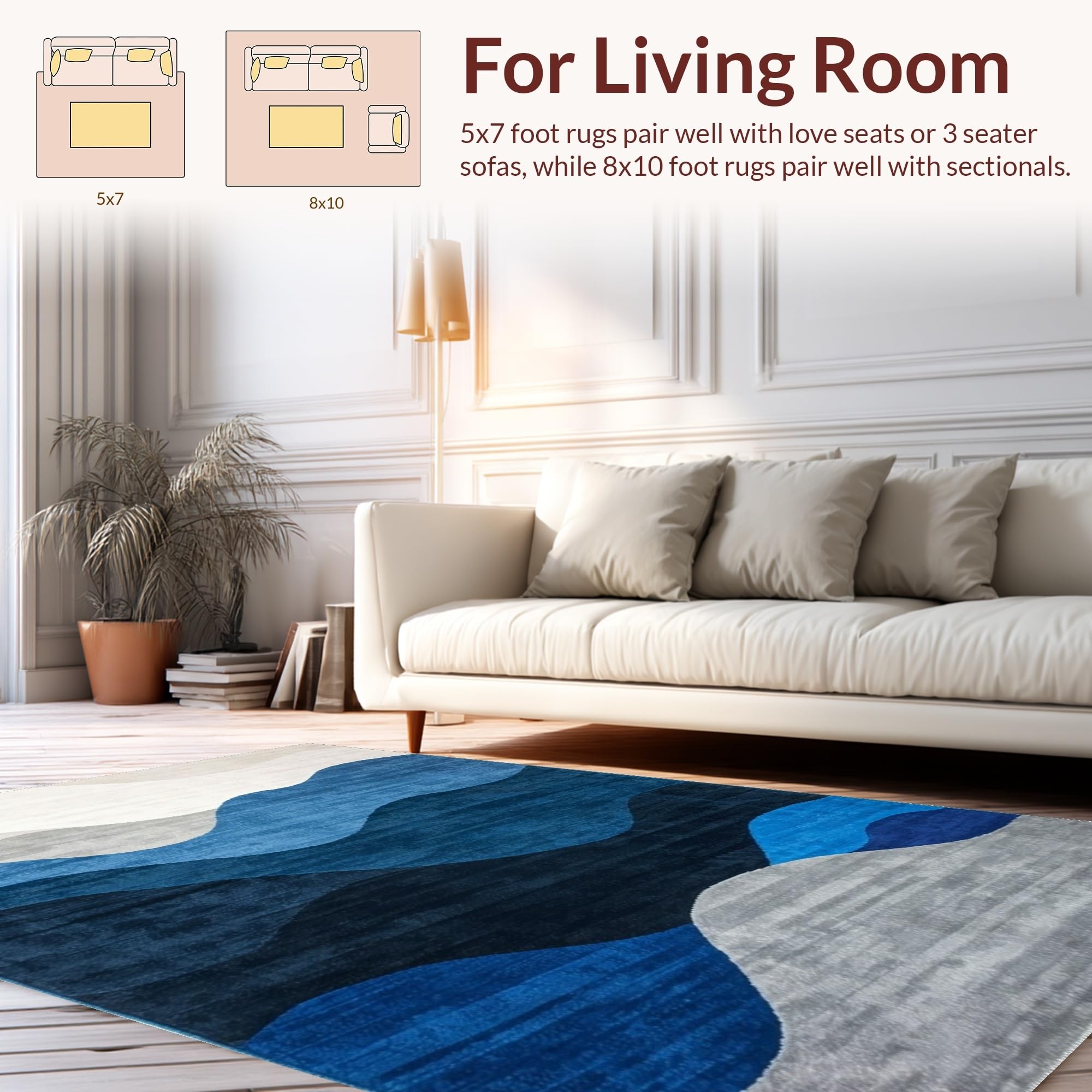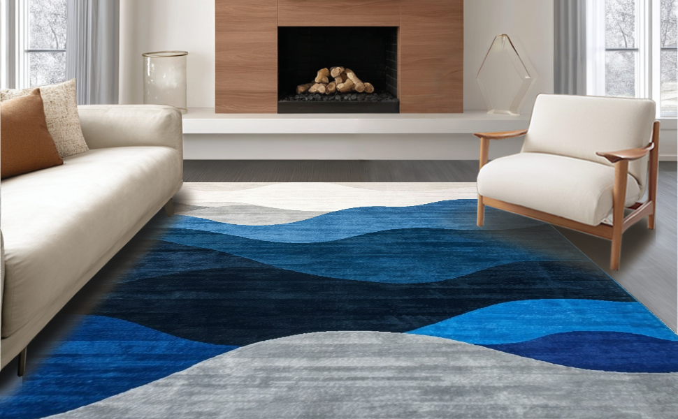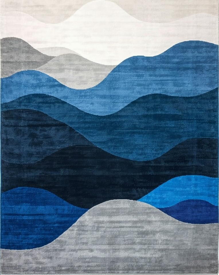Ultra Soft Area Rug, Non Slip, Stain Resistant, Washable Area Rugs for Living Room, Bedroom, Elegant Modern Mixed Media Design(Blue) Overview: