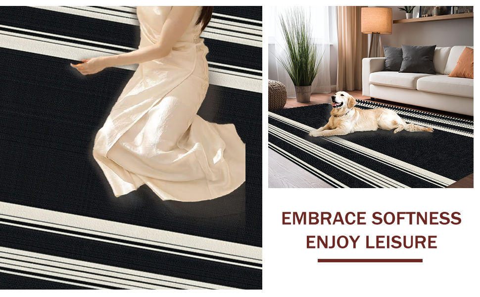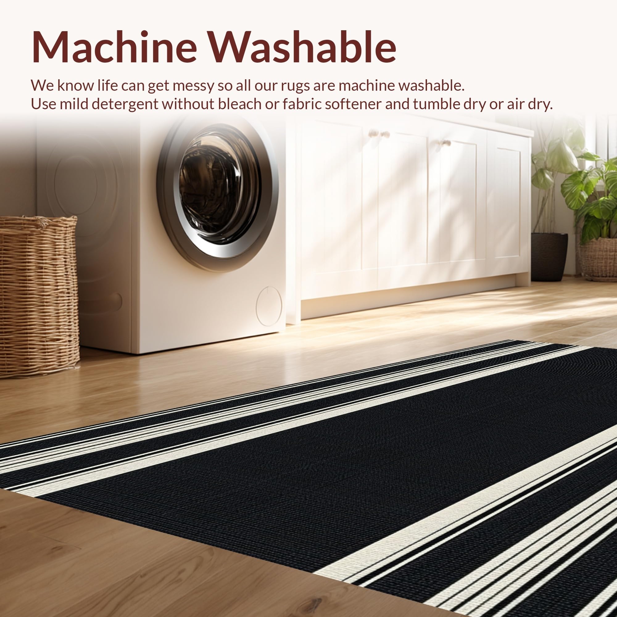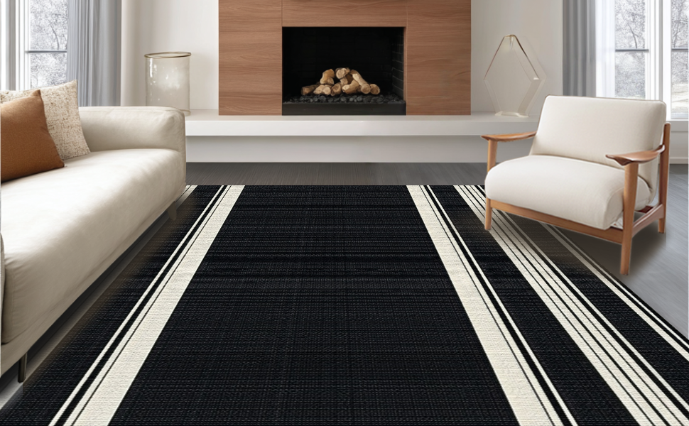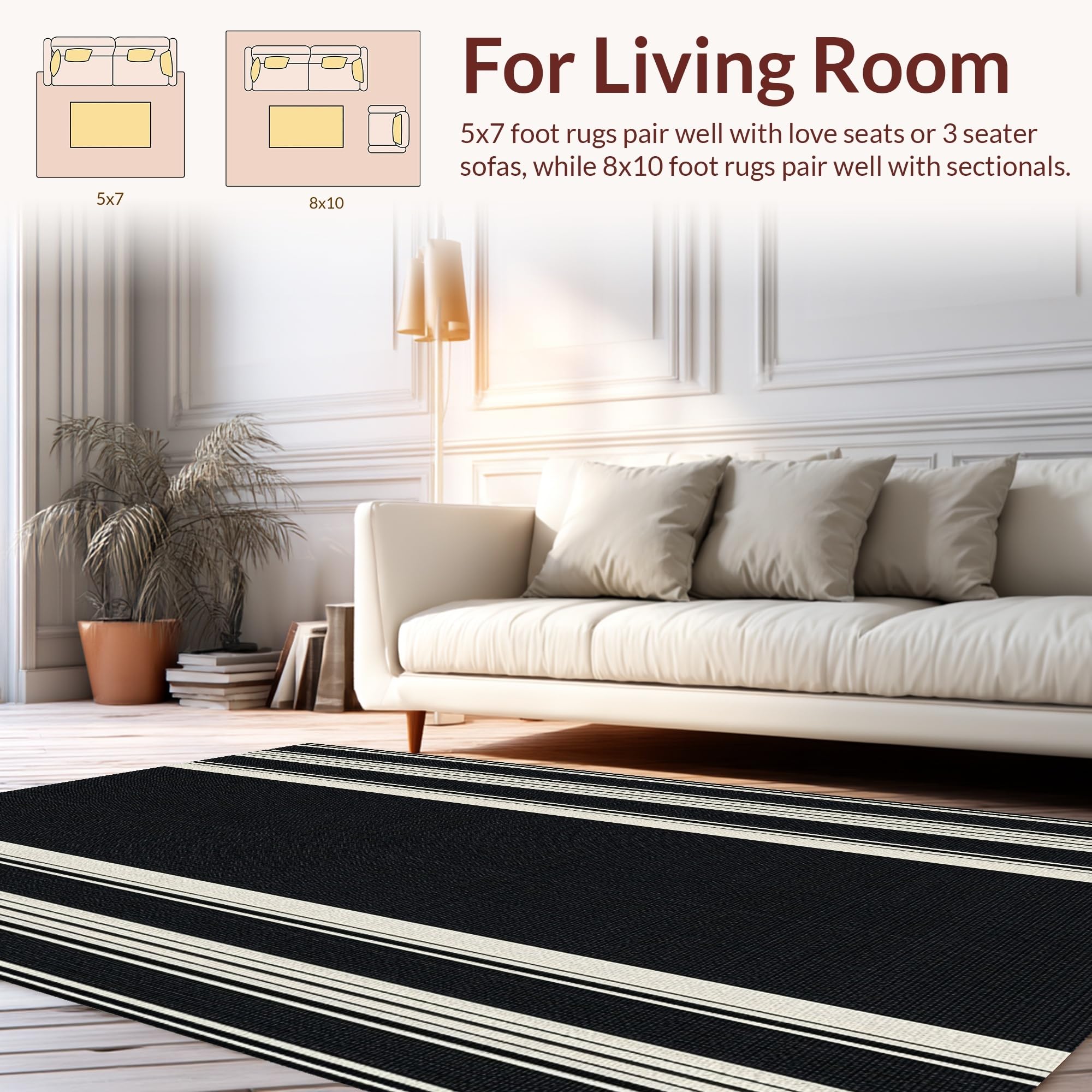 Ultra Soft Area Rug, Non Slip, Stain Resistant, Washable Area Rugs for Living Room, Bedroom, Elegant Modern Monochrome Stripes(Black) Overview: