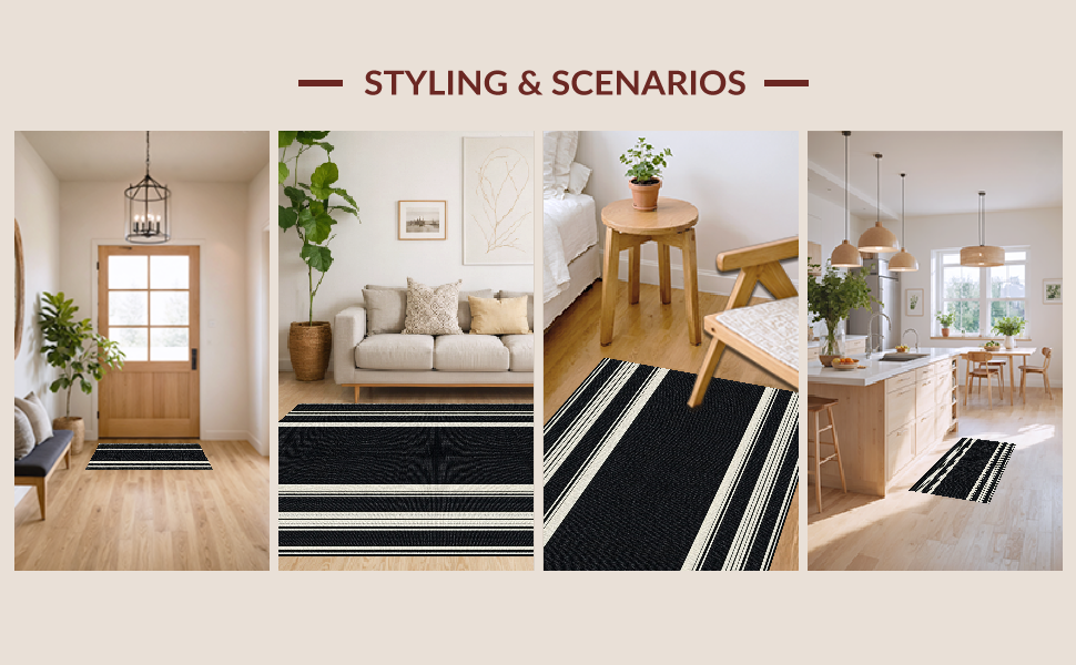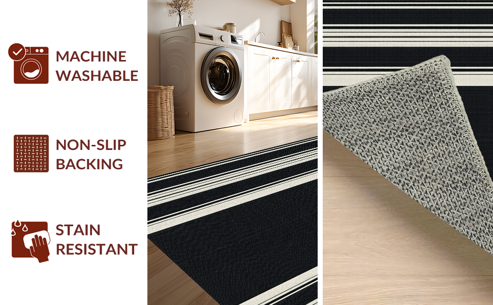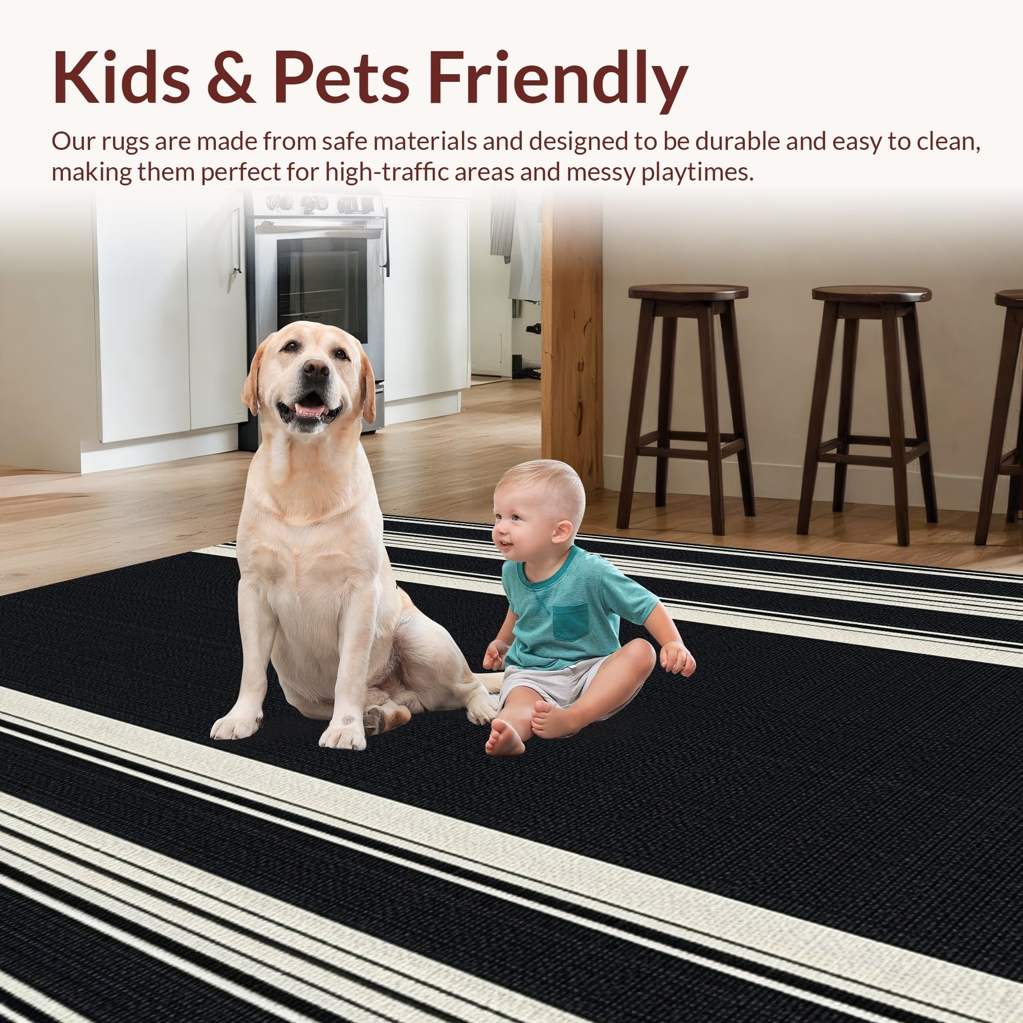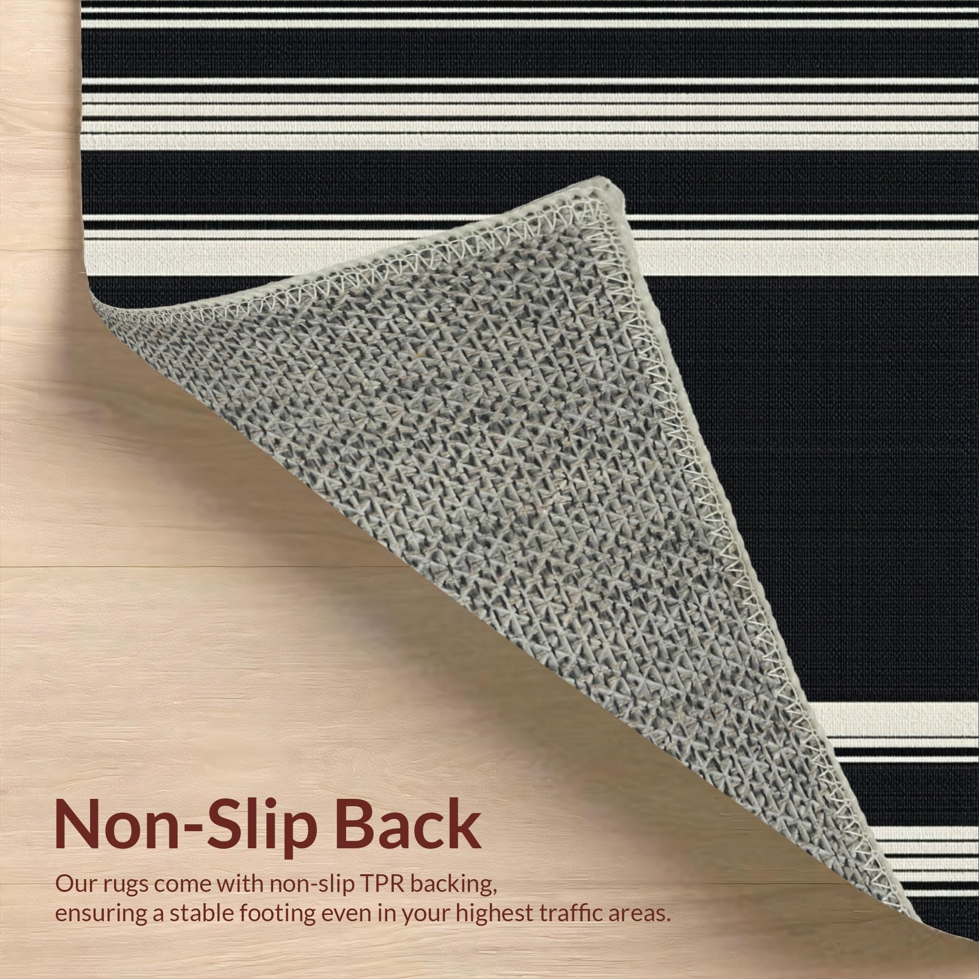Ultra Soft Area Rug, Non Slip, Stain Resistant, Washable Area Rugs for Living Room, Bedroom, Elegant Modern Monochrome Stripes(Black) Overview:
