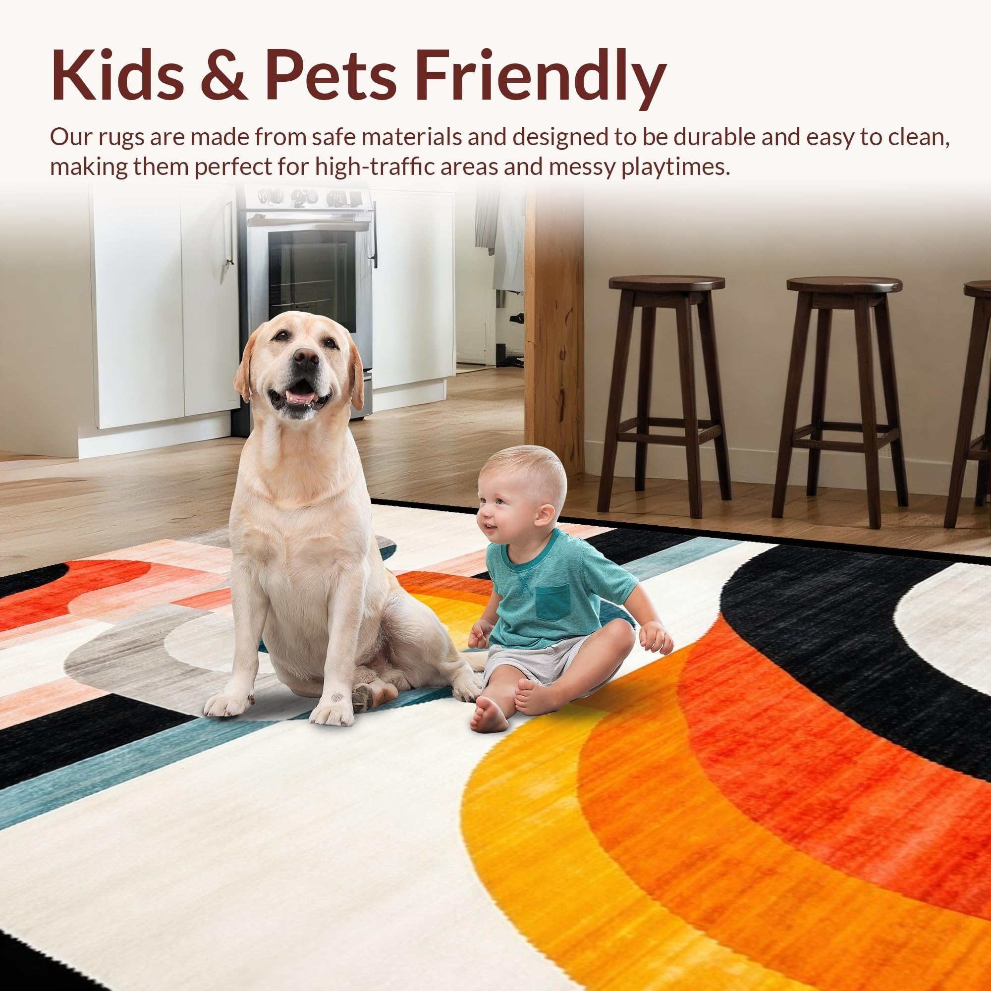 Ultra Soft Area Rug, Non Slip, Stain Resistant, Washable Area Rugs for Living Room, Bedroom, Elegant Modern Tiled Composition(Gray) Overview: