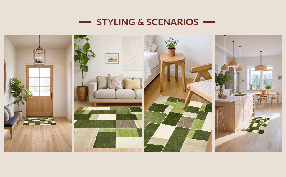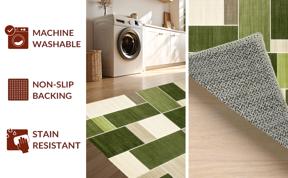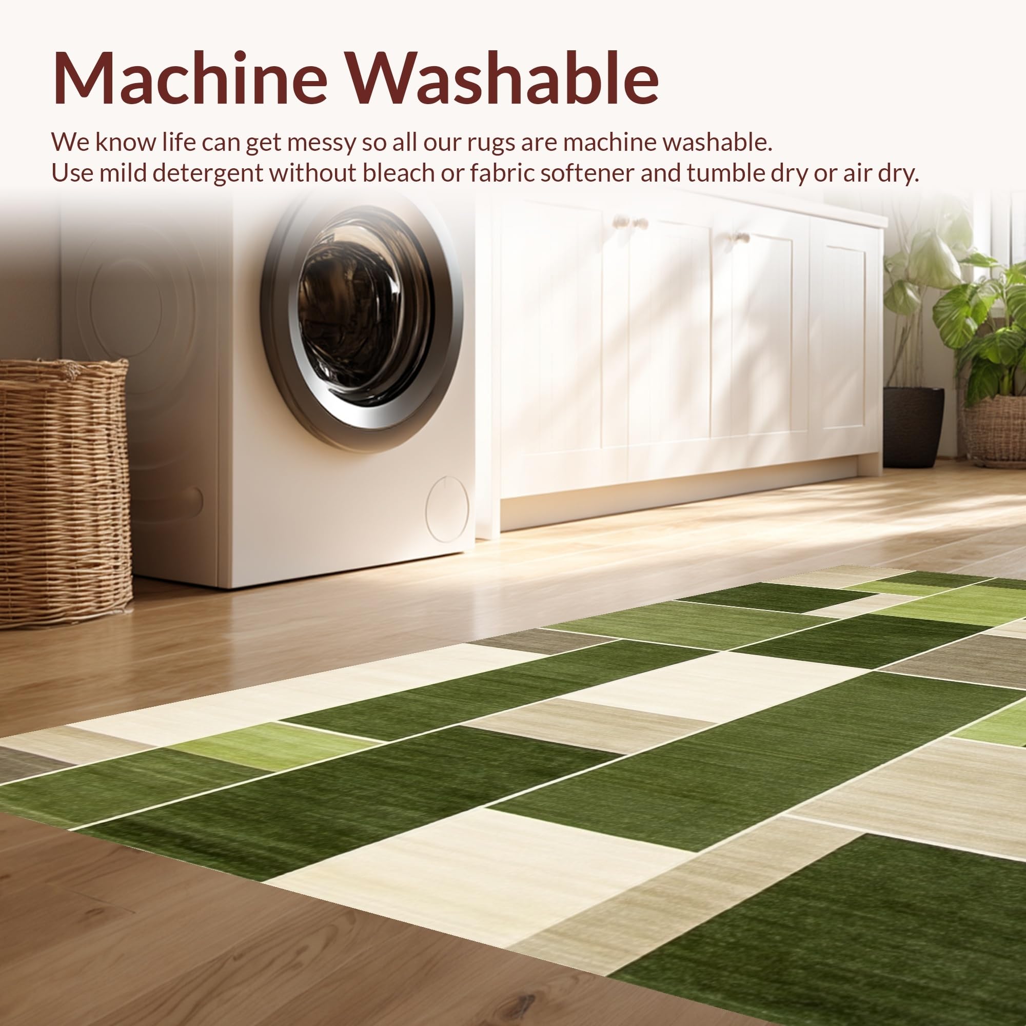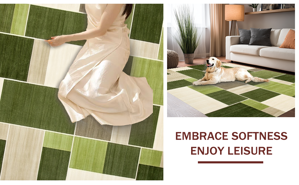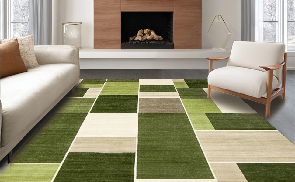 Ultra Soft Area Rug, Non Slip, Stain Resistant, Washable Area Rugs for Living Room, Bedroom, Elegant Modern Tiled Geometry(Green) Overview:
