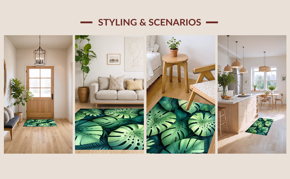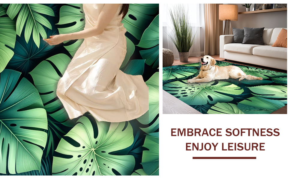Ultra Soft Area Rug, Non Slip, Stain Resistant, Washable Area Rugs for Living Room, Bedroom, Elegant Modern Tropical Feel(Green) Overview: