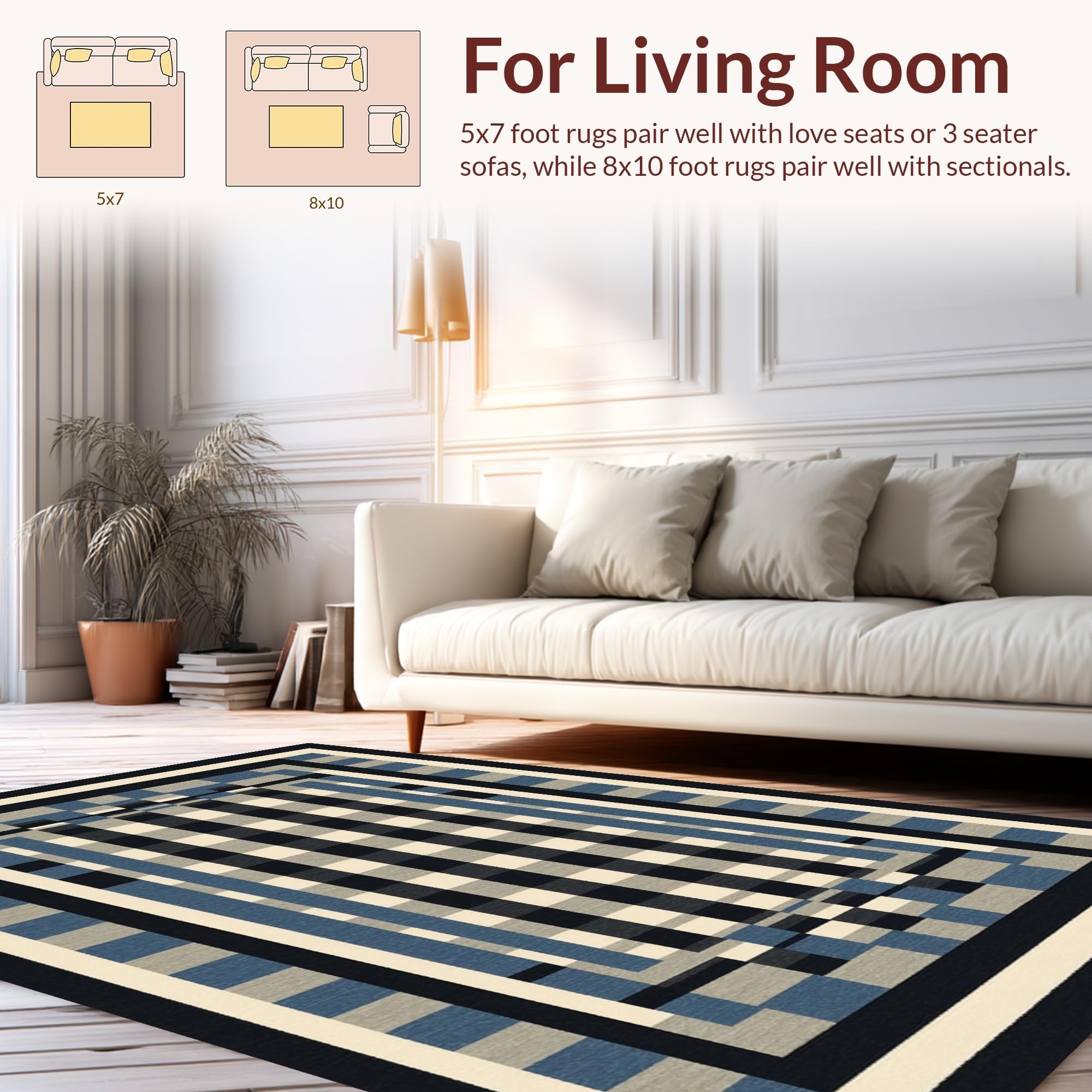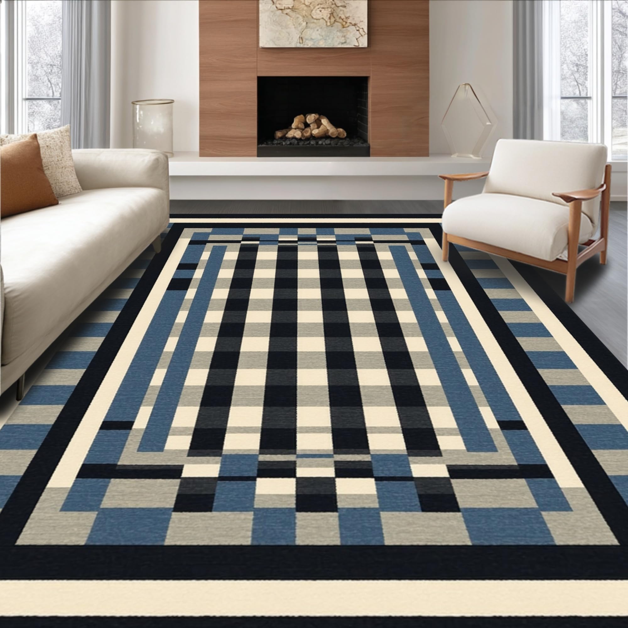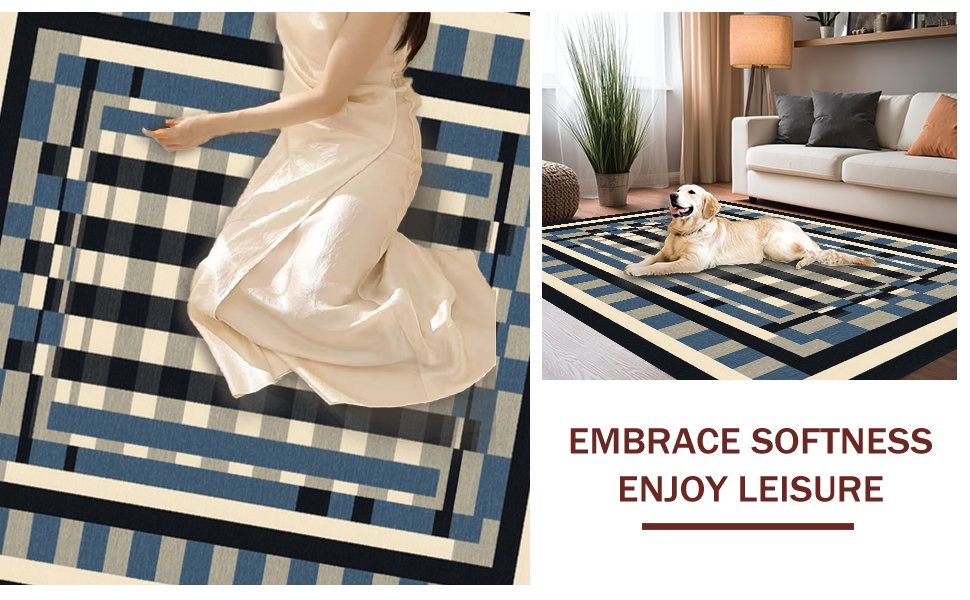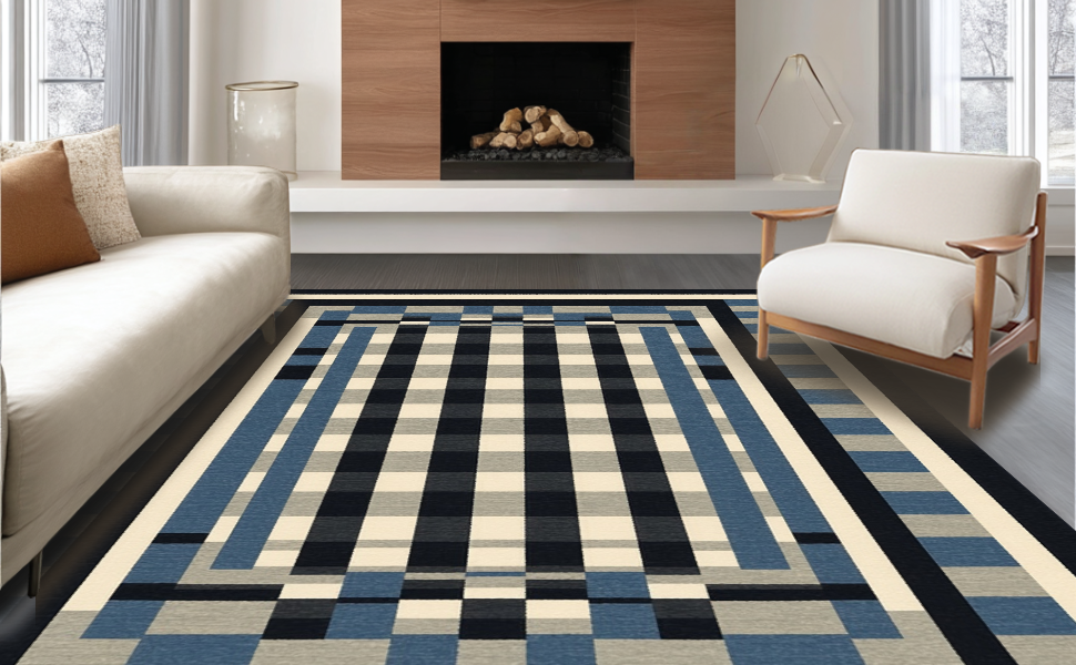Ultra Soft Area Rug, Non Slip, Stain Resistant, Washable Area Rugs for Living Room, Bedroom, Elegant Modernist Black and White Combo(Blue) Overview: