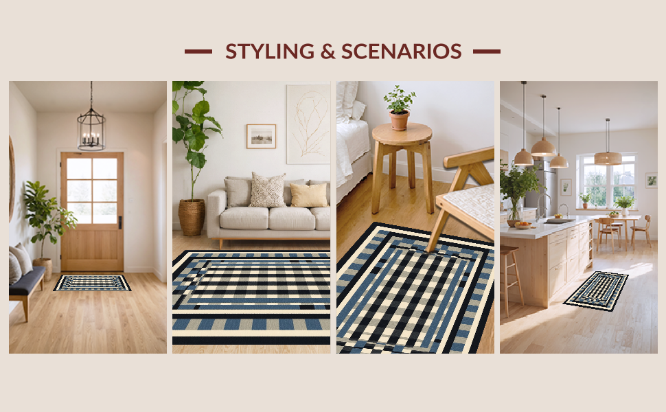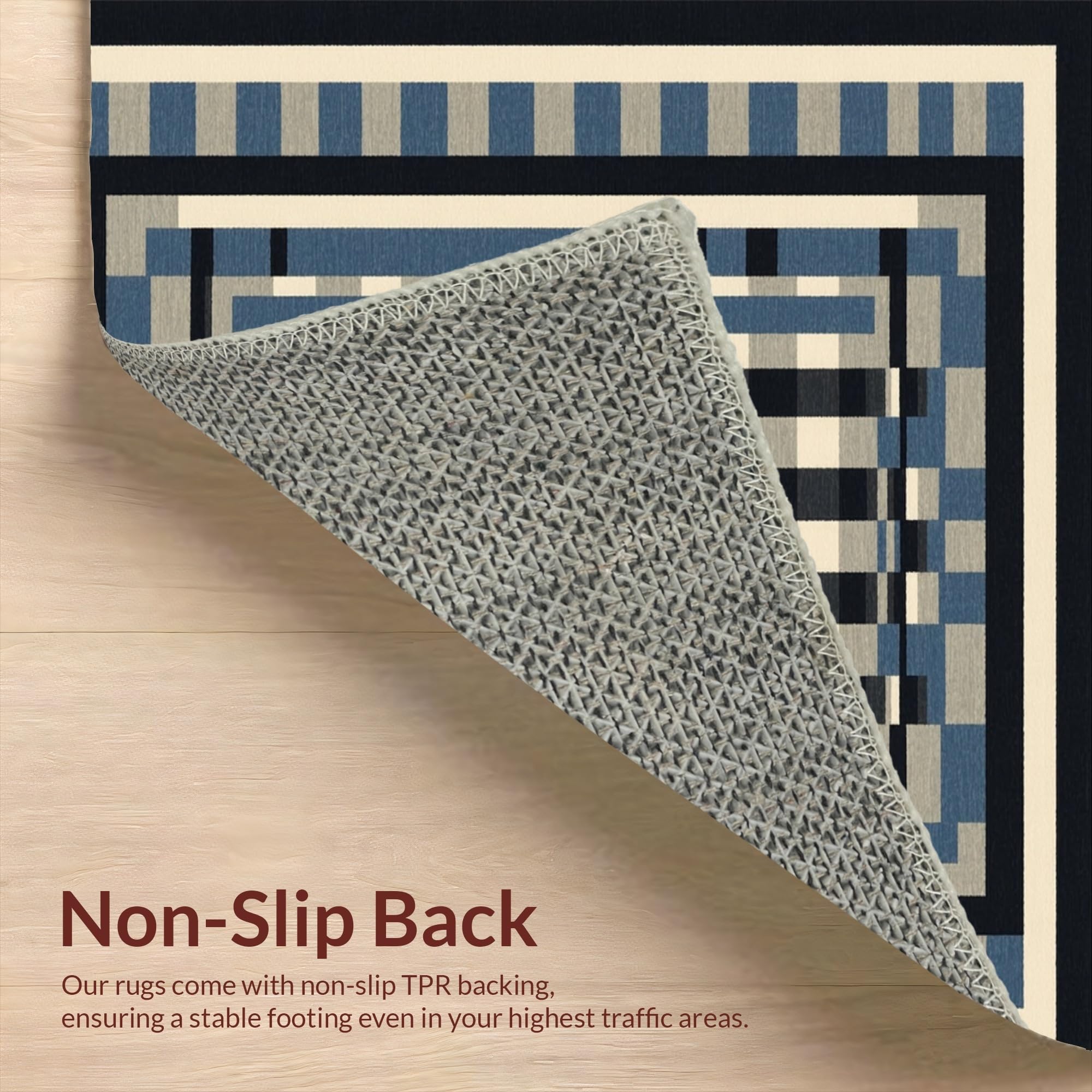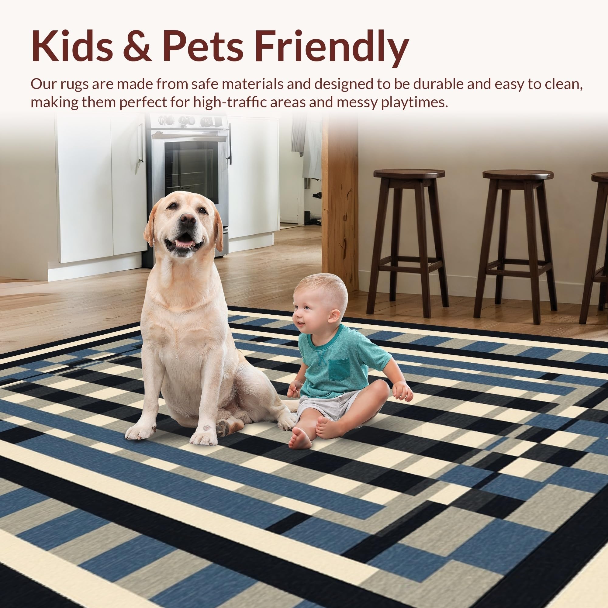 Ultra Soft Area Rug, Non Slip, Stain Resistant, Washable Area Rugs for Living Room, Bedroom, Elegant Modernist Black and White Combo(Blue) Overview: