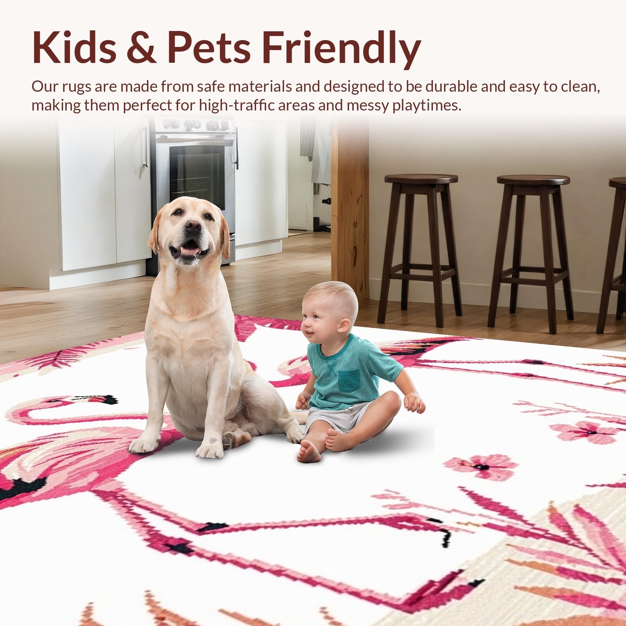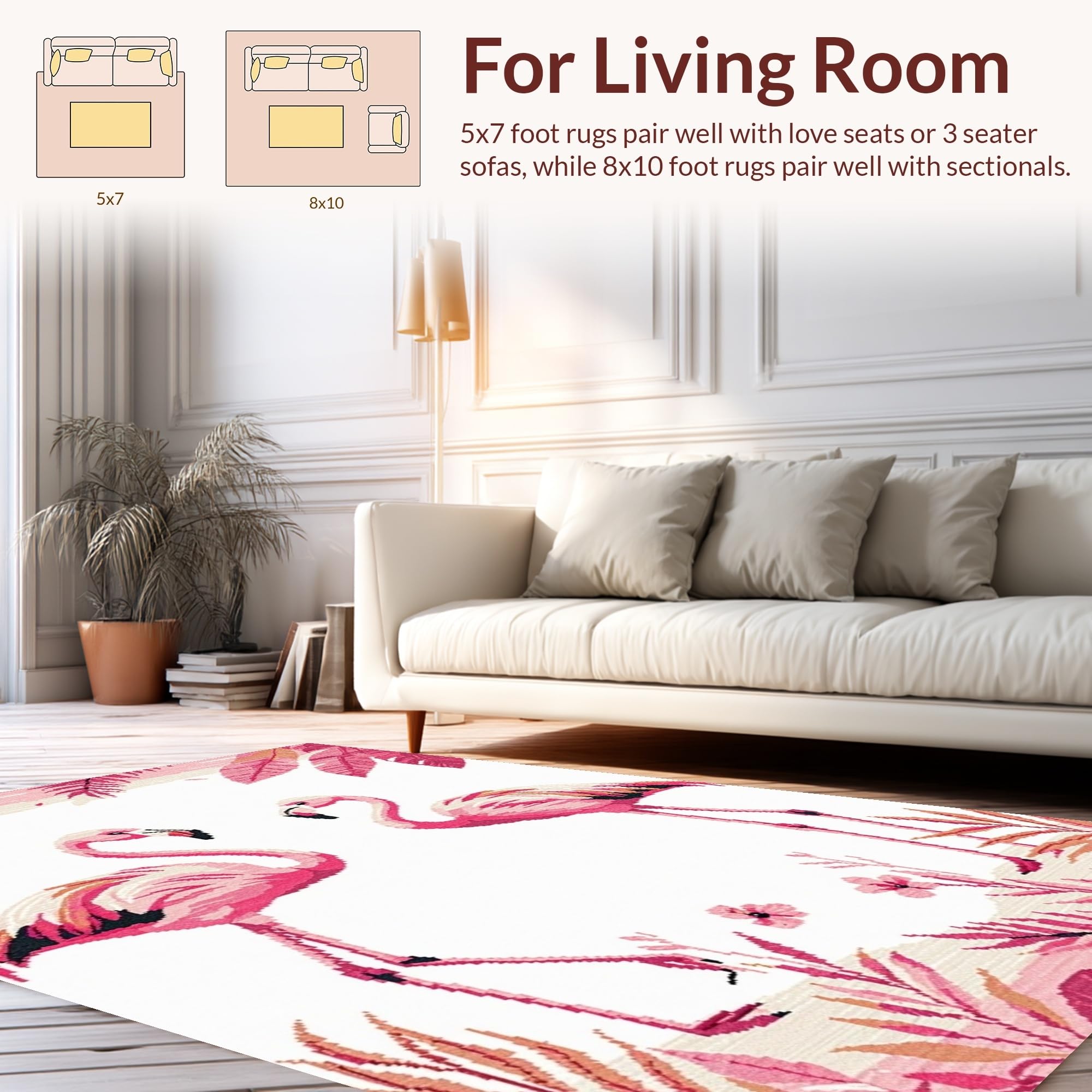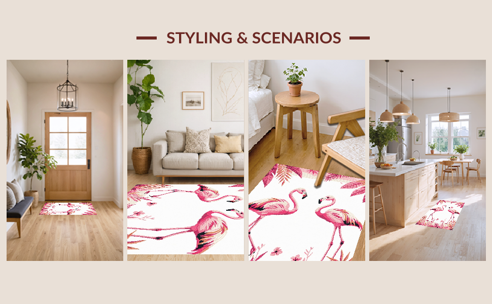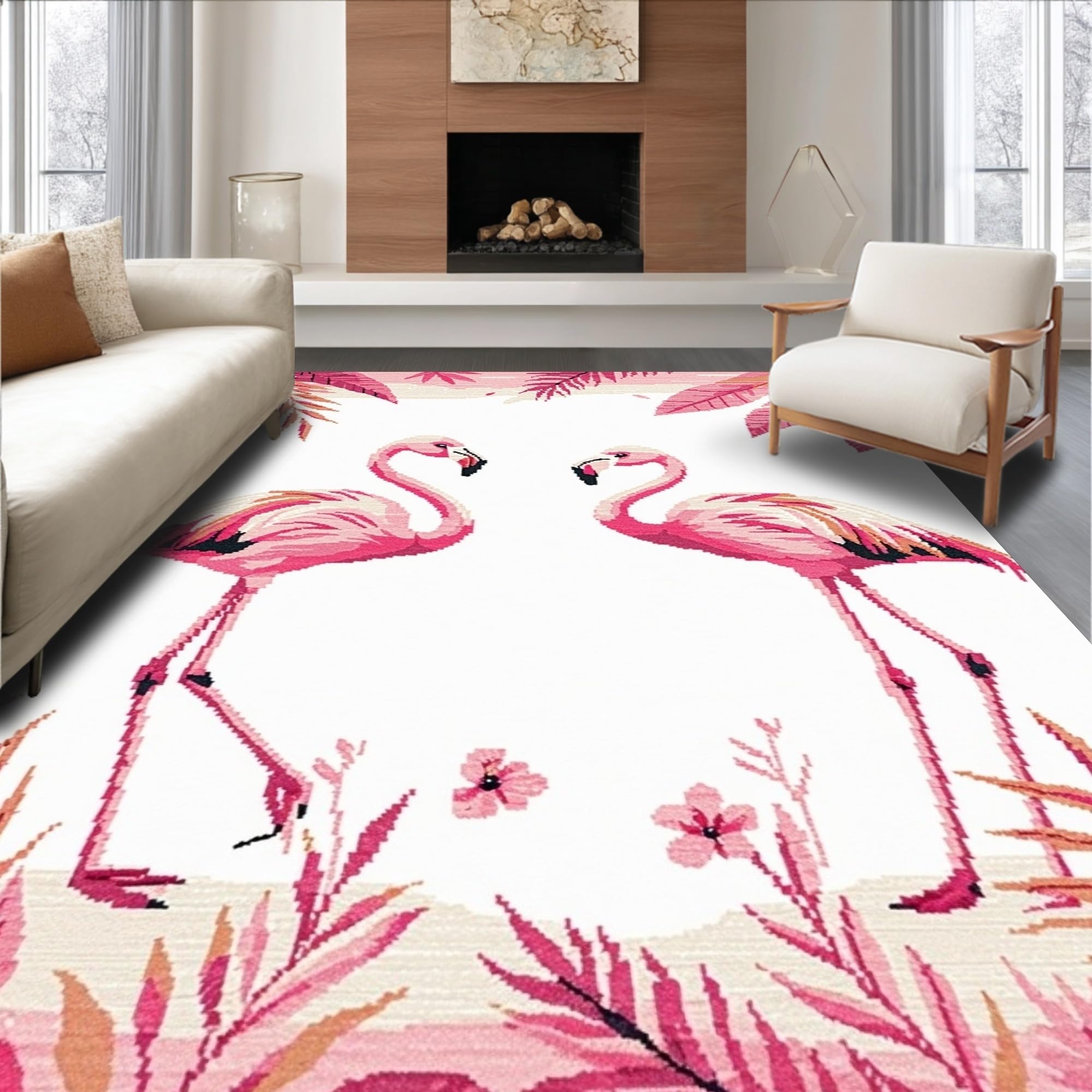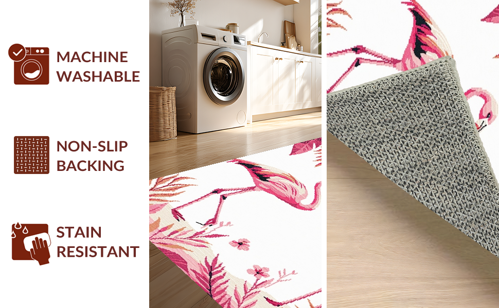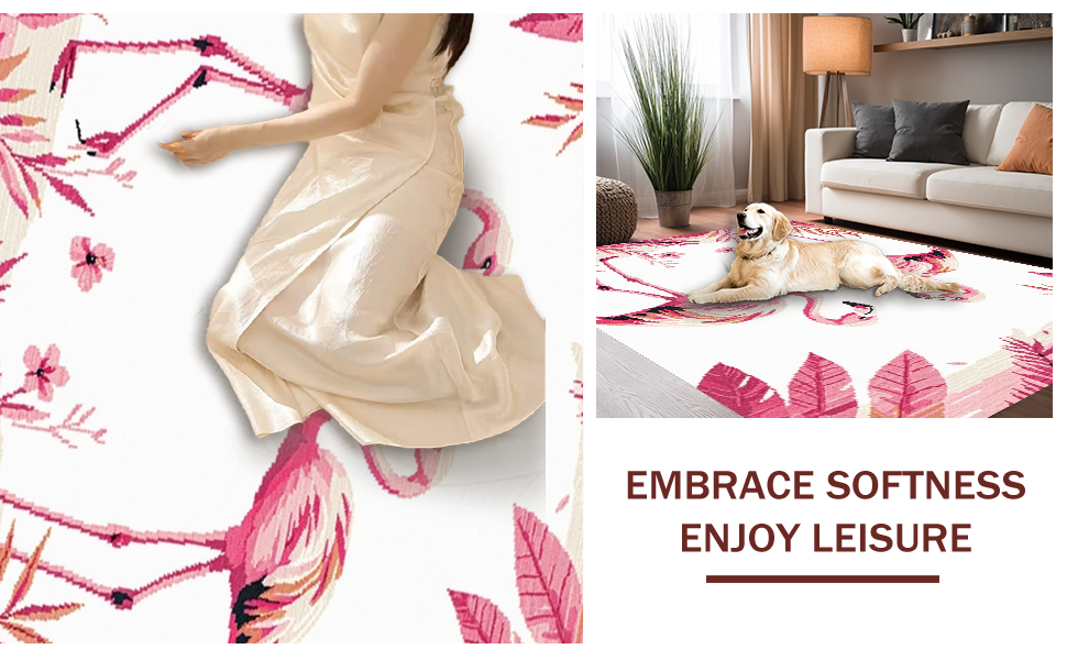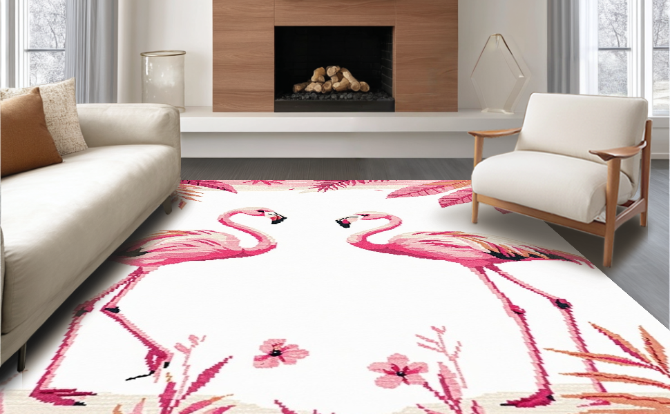 Ultra Soft Area Rug, Non Slip, Stain Resistant, Washable Area Rugs for Living Room, Bedroom, Elegant Modernist Flamingo Illustration(Pink) Overview:
