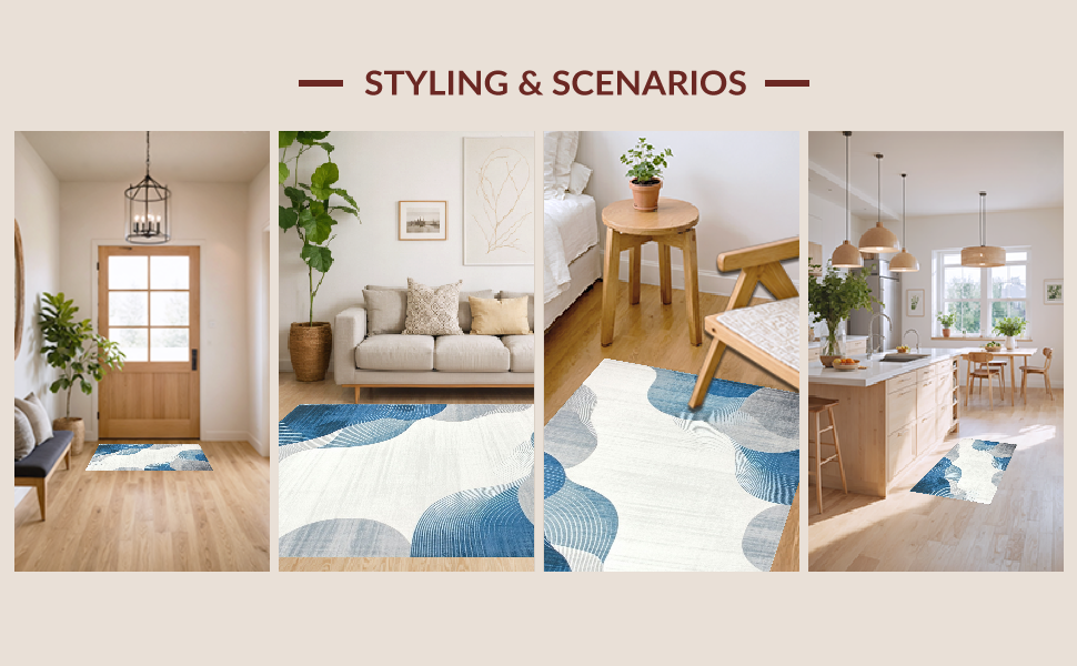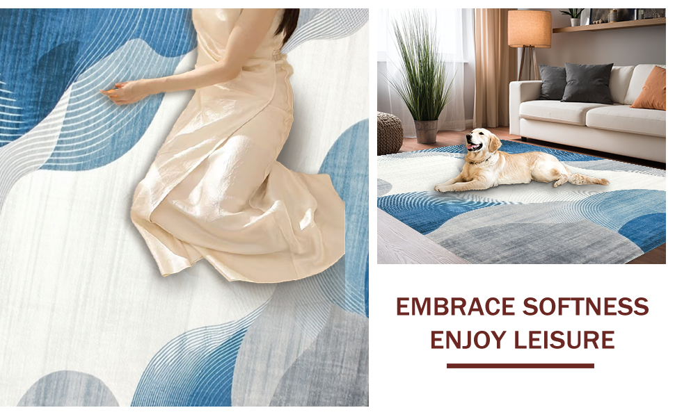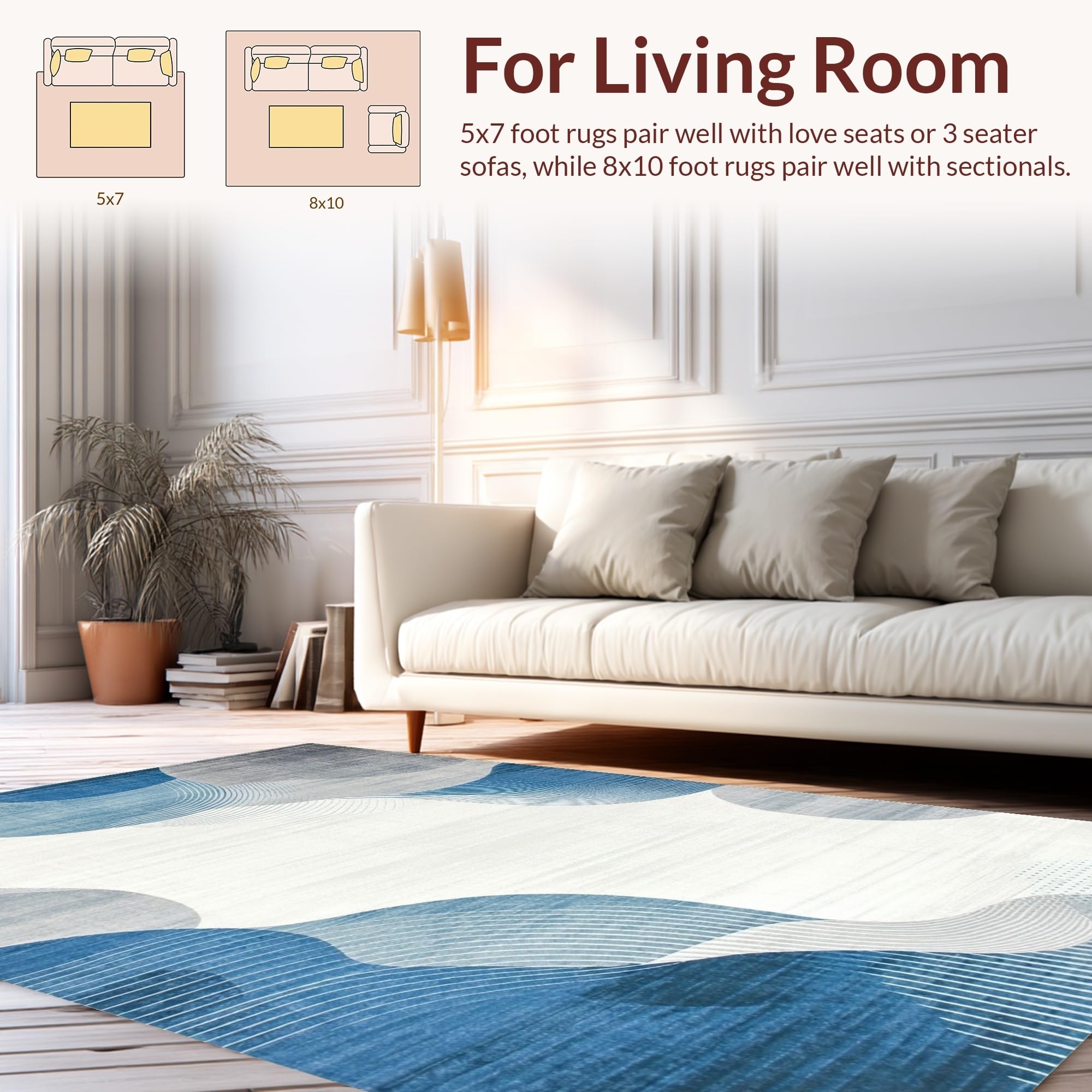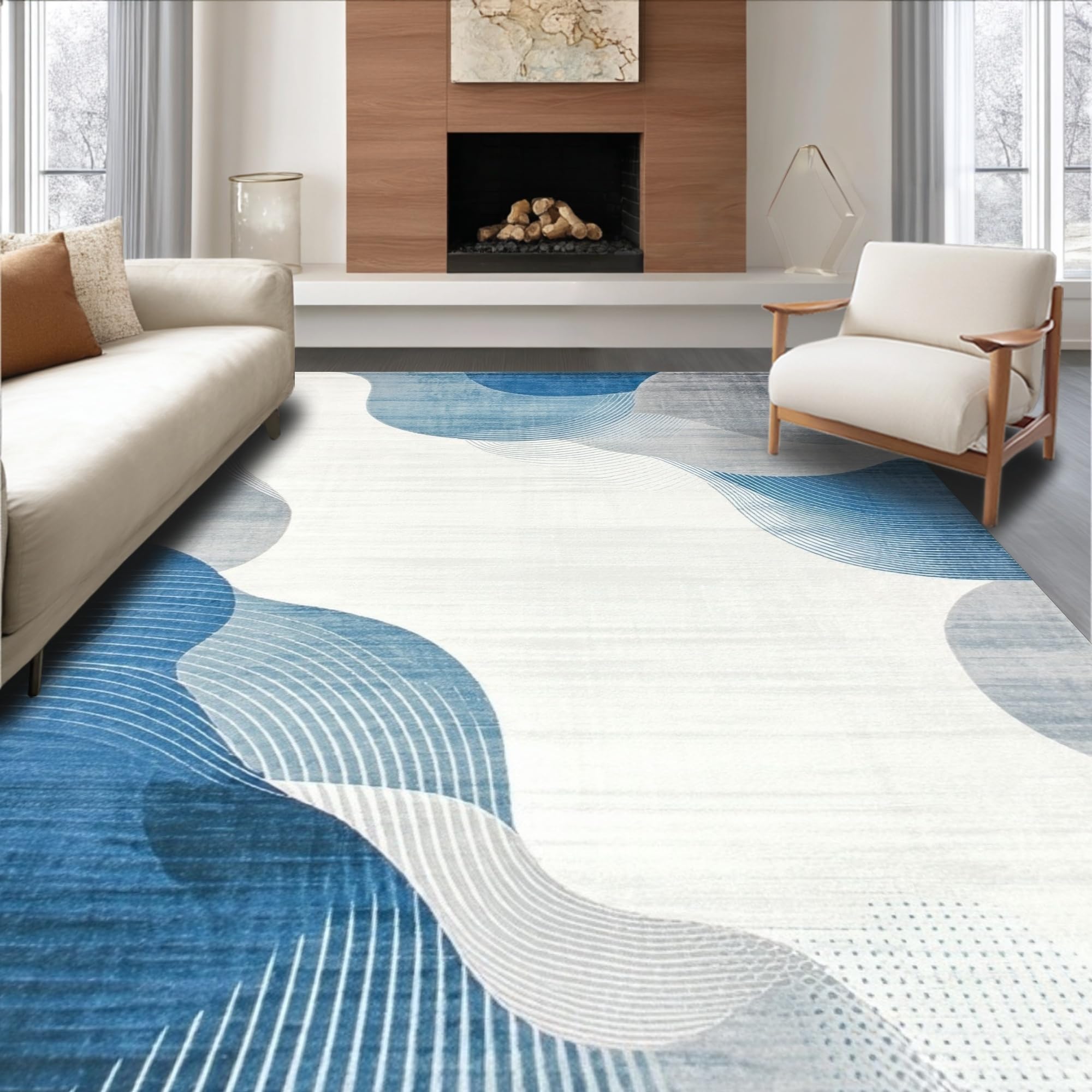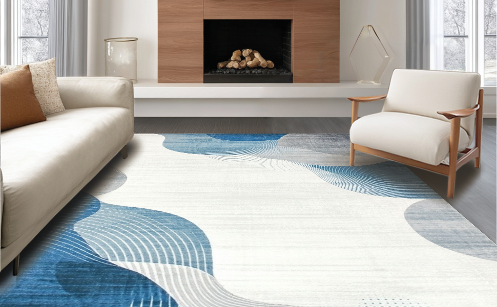 Ultra Soft Area Rug, Non Slip, Stain Resistant, Washable Area Rugs for Living Room, Bedroom, Elegant Monochromatic Swirl Pattern(Blue) Overview: