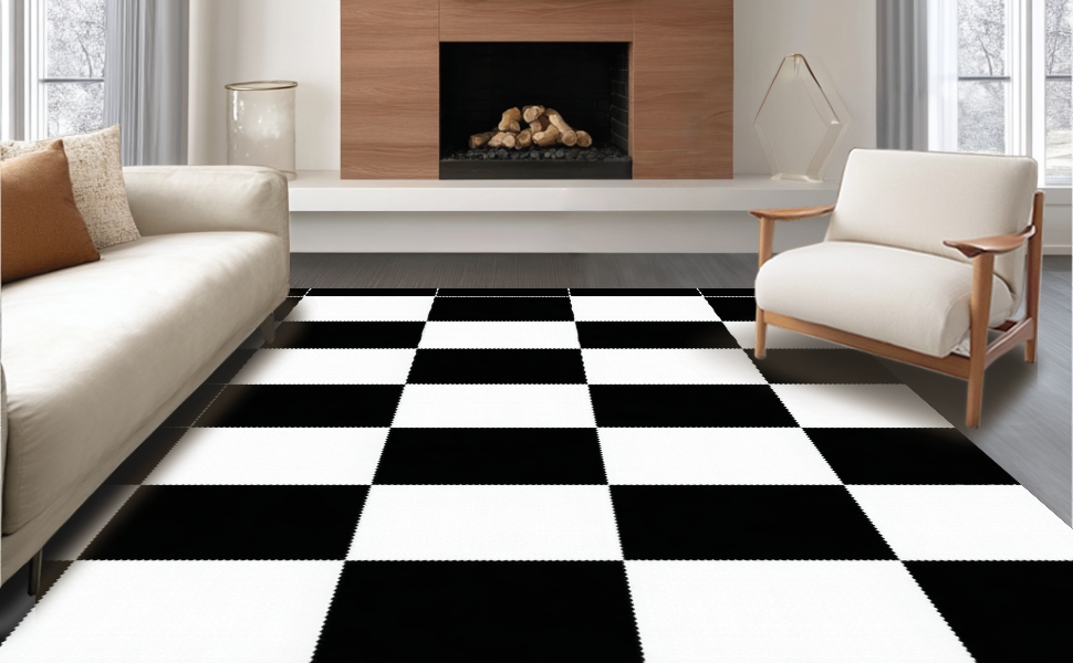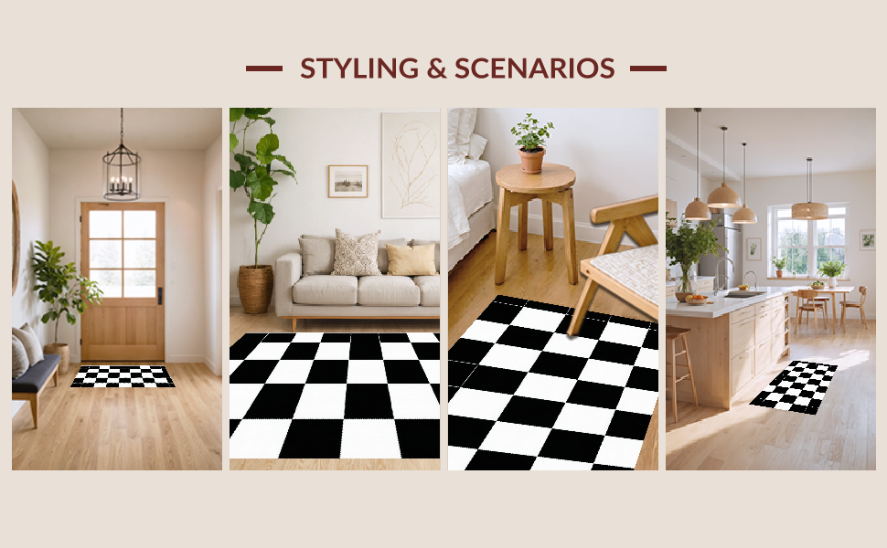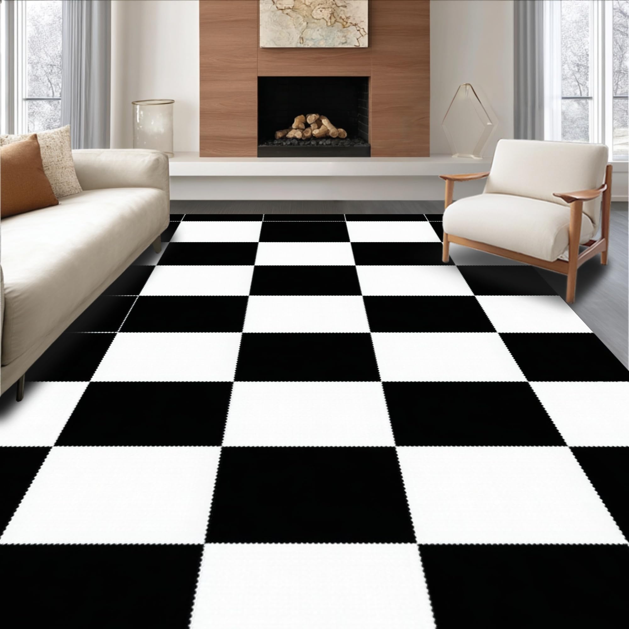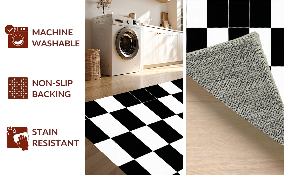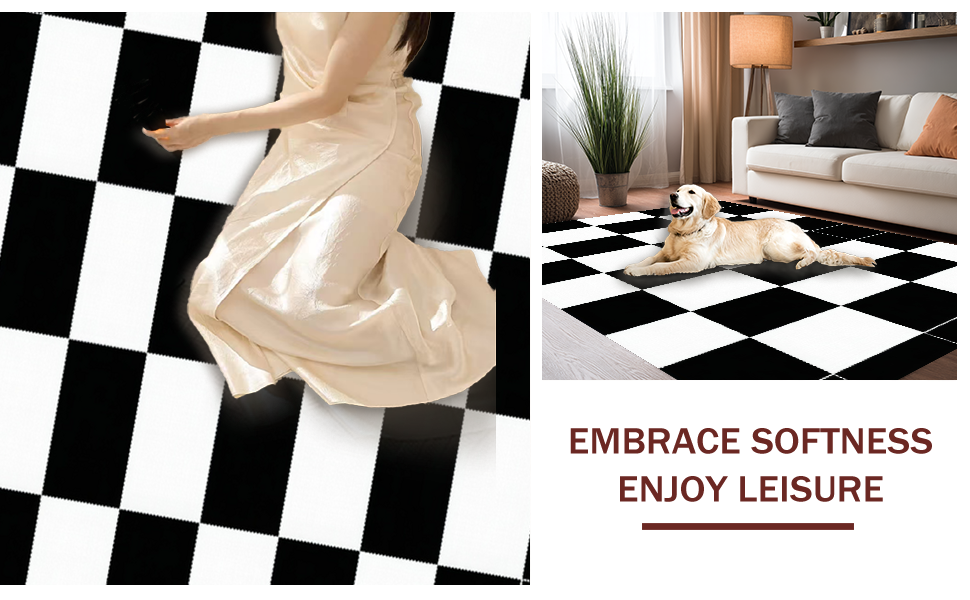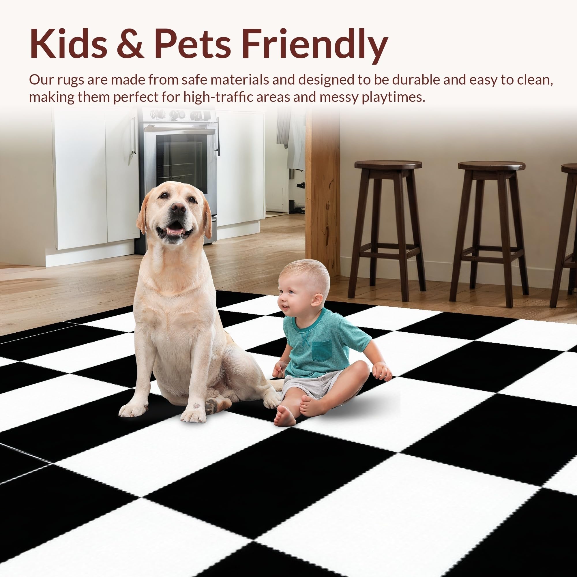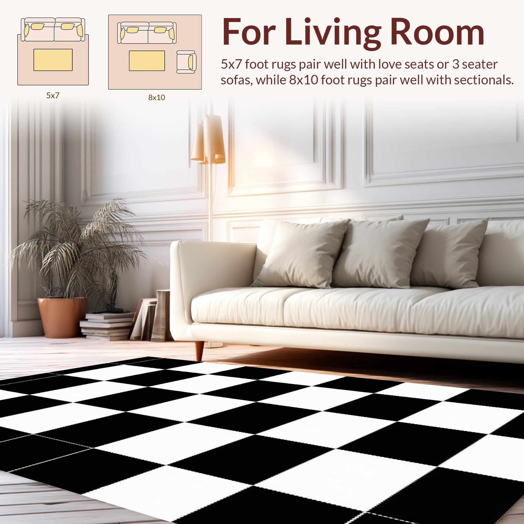Ultra Soft Area Rug, Non Slip, Stain Resistant, Washable Area Rugs for Living Room, Bedroom, Elegant Monochrome Check Pattern(Black) Overview: