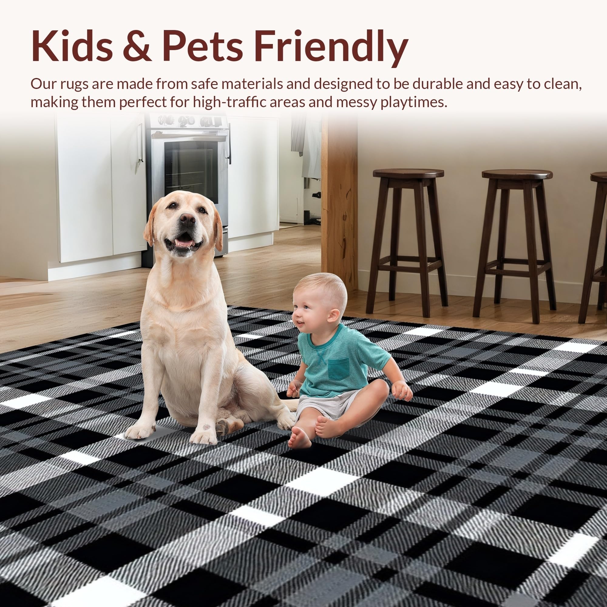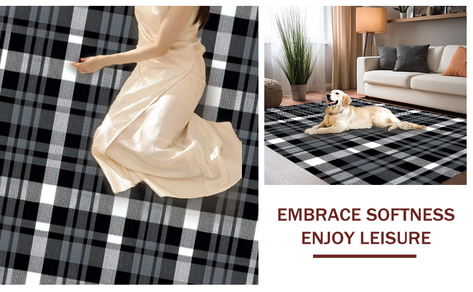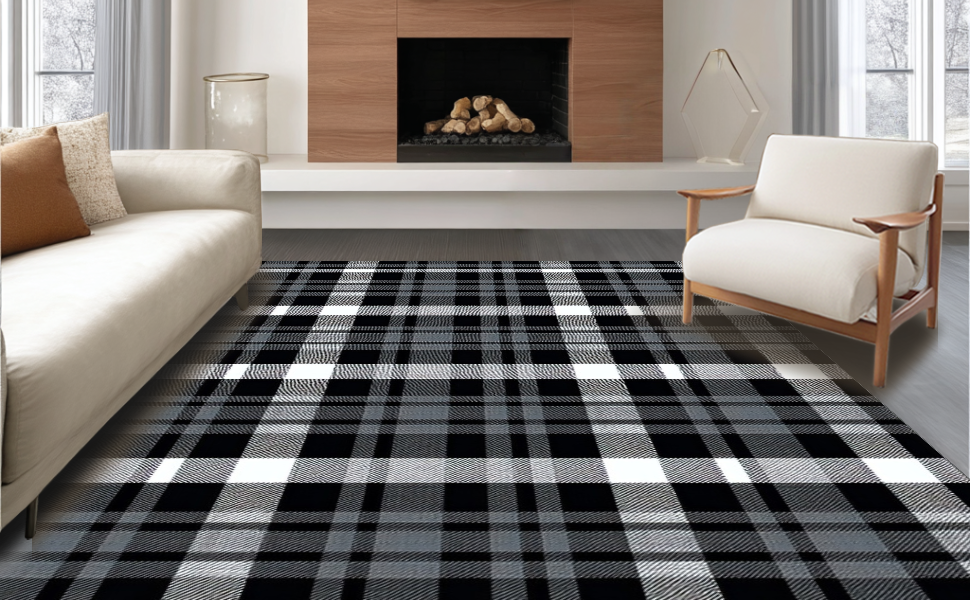 Ultra Soft Area Rug, Non Slip, Stain Resistant, Washable Area Rugs for Living Room, Bedroom, Elegant Monochrome Checkered Aesthetic(Gray) Overview: