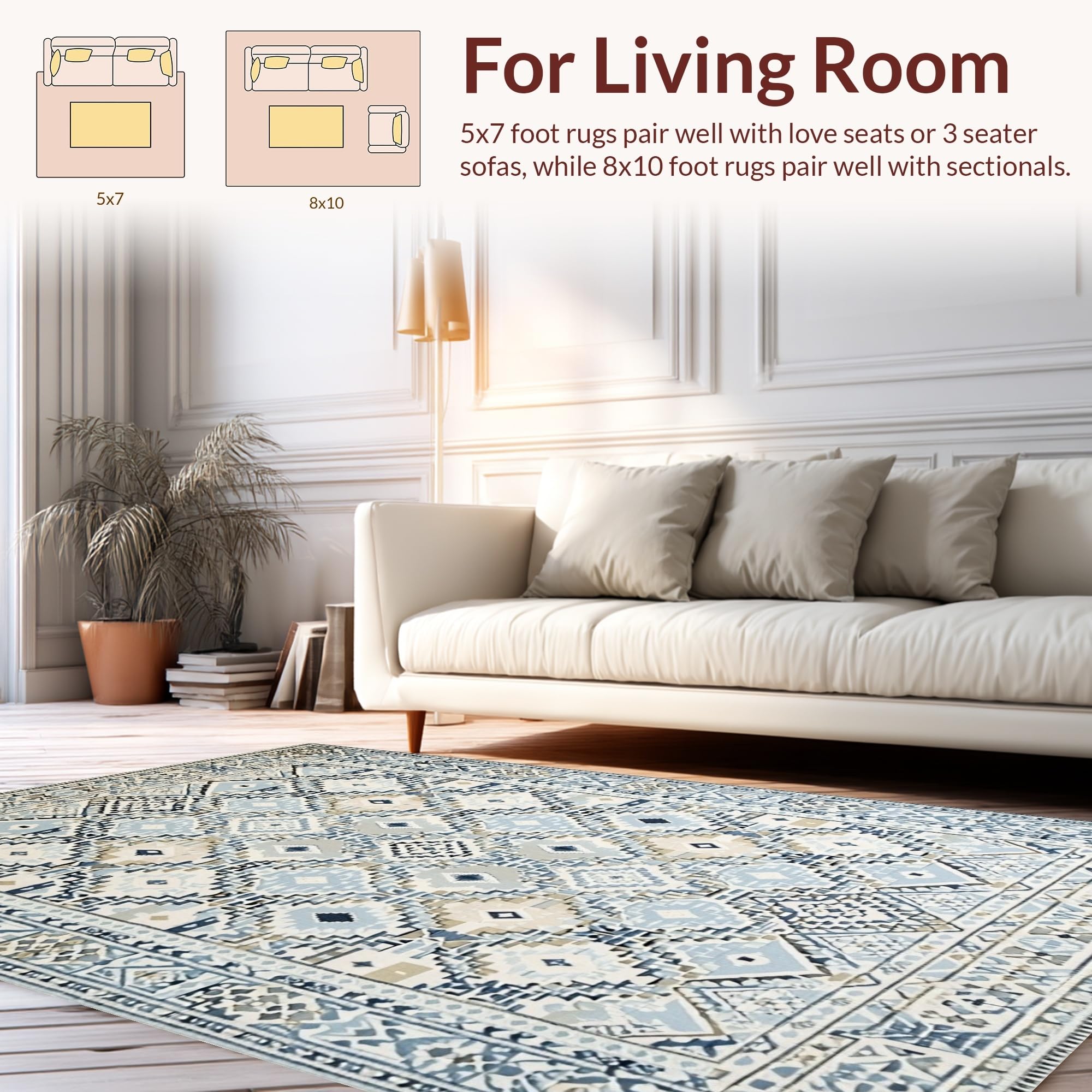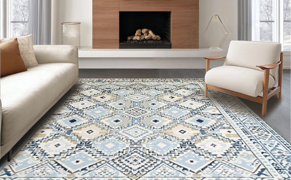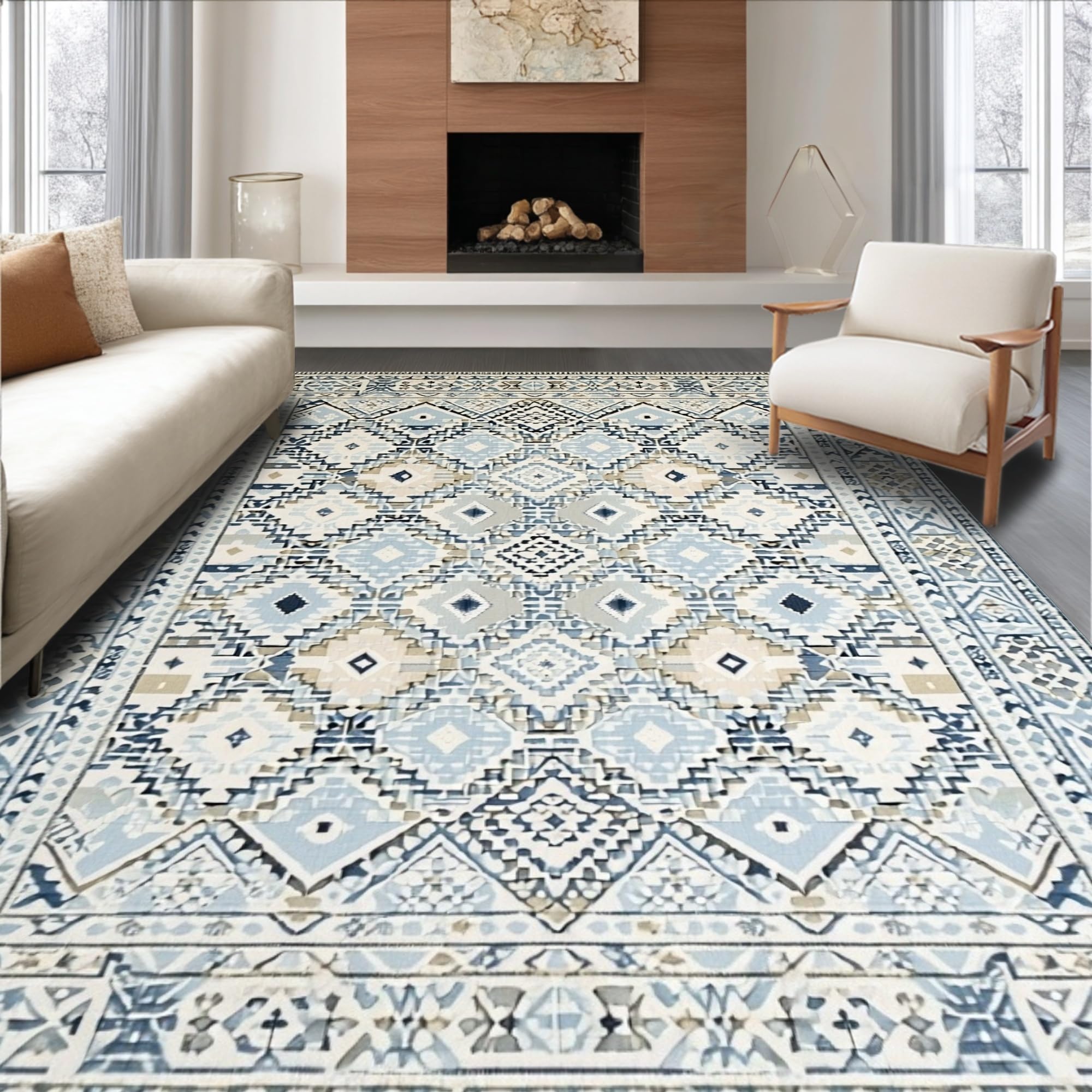 Ultra Soft Area Rug, Non Slip, Stain Resistant, Washable Area Rugs for Living Room, Bedroom, Elegant Monochrome Diamond Design(Beige) Overview: