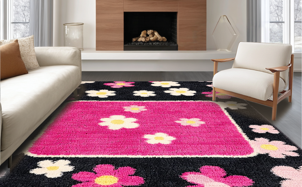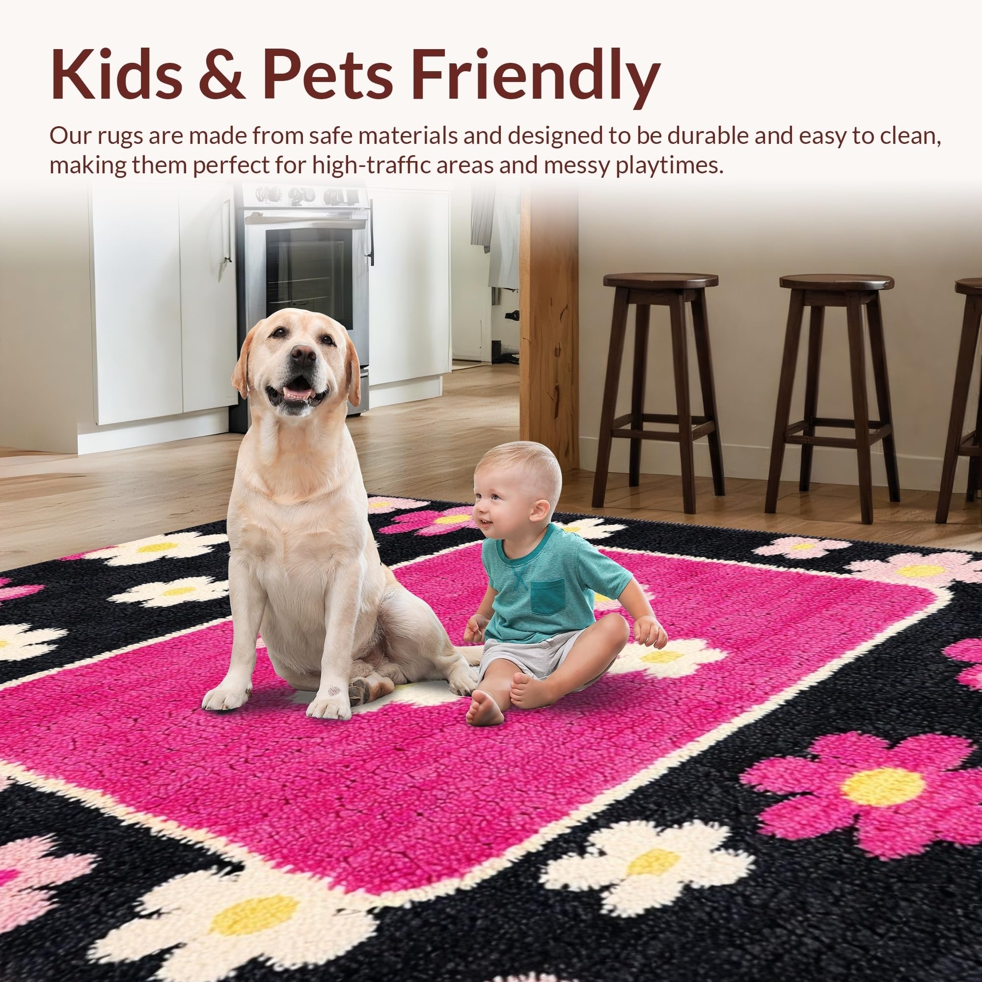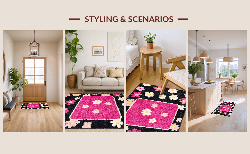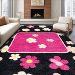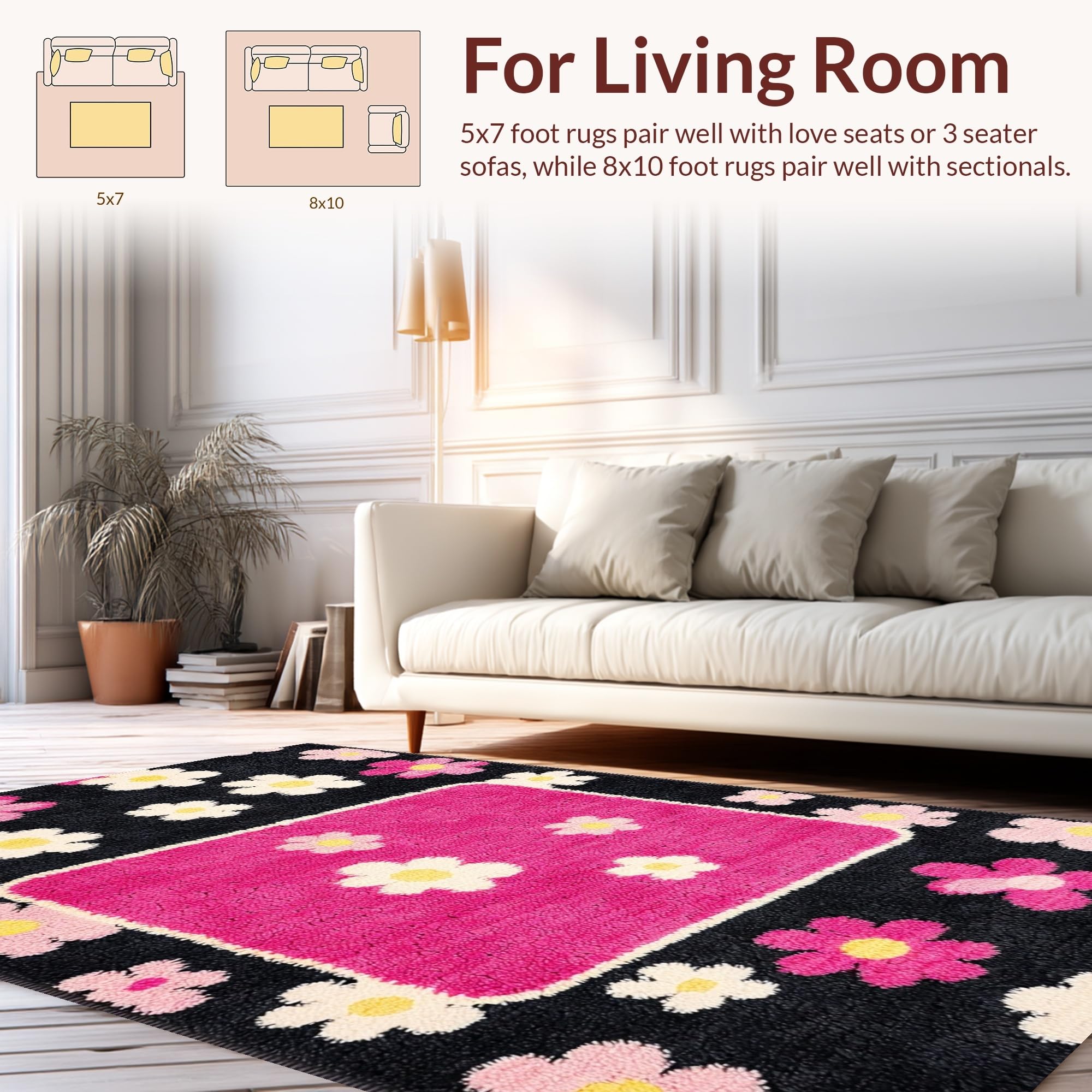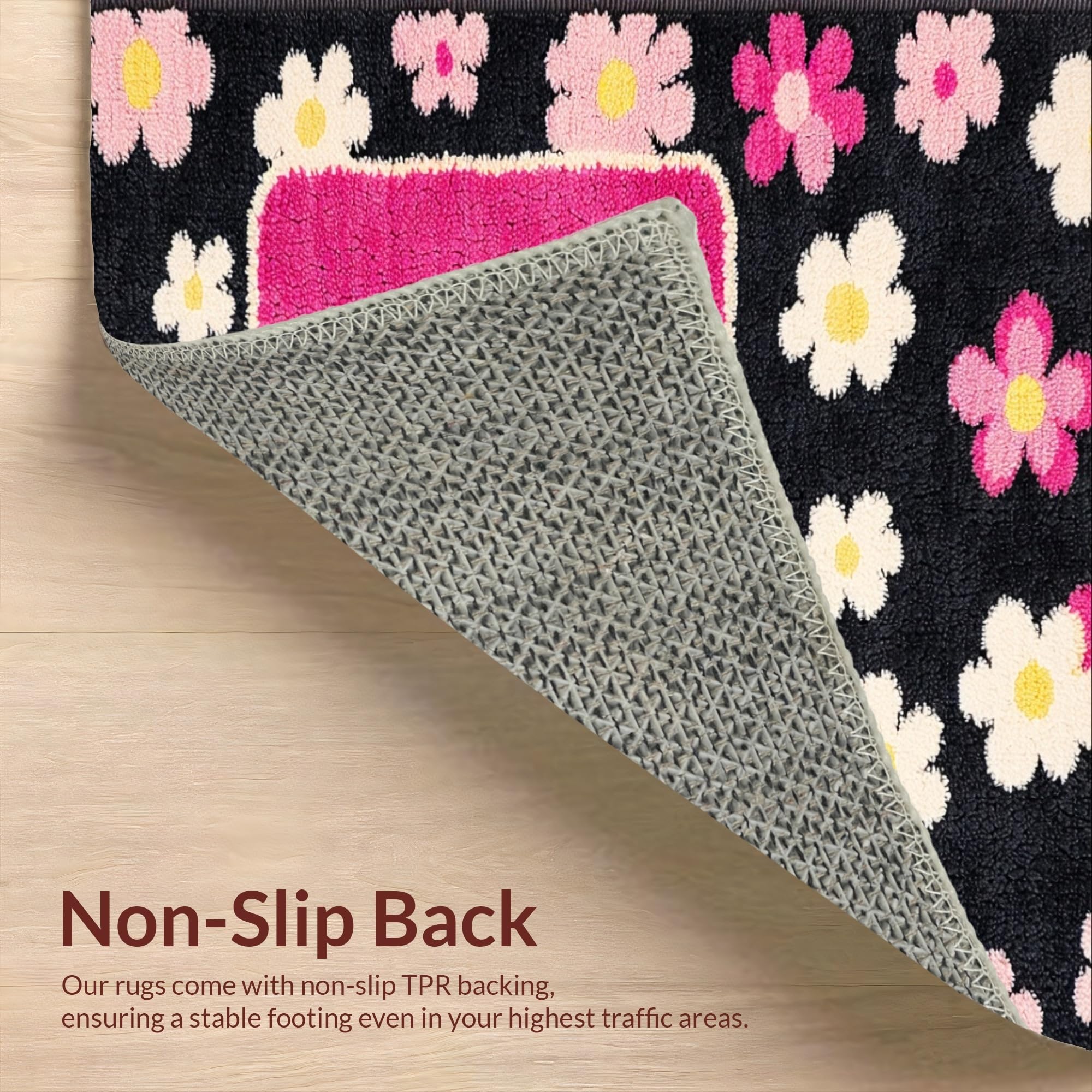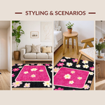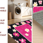 Ultra Soft Area Rug, Non Slip, Stain Resistant, Washable Area Rugs for Living Room, Bedroom, Elegant Monochrome Floral Display(Black) Overview: