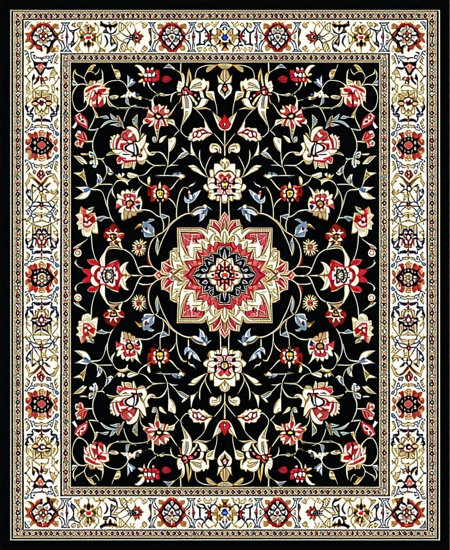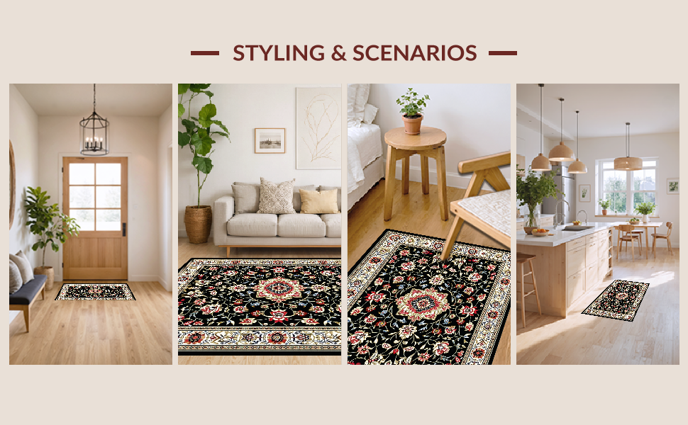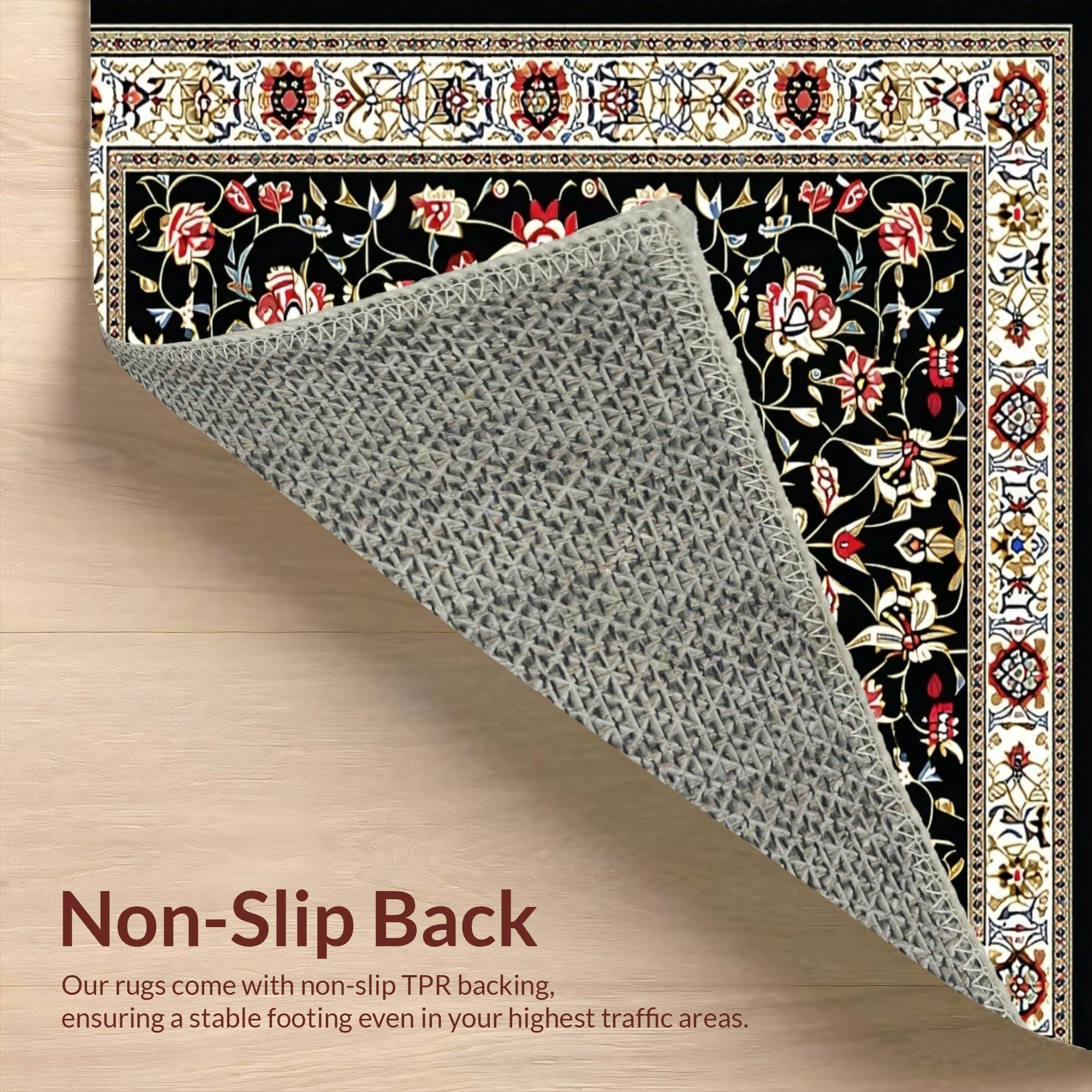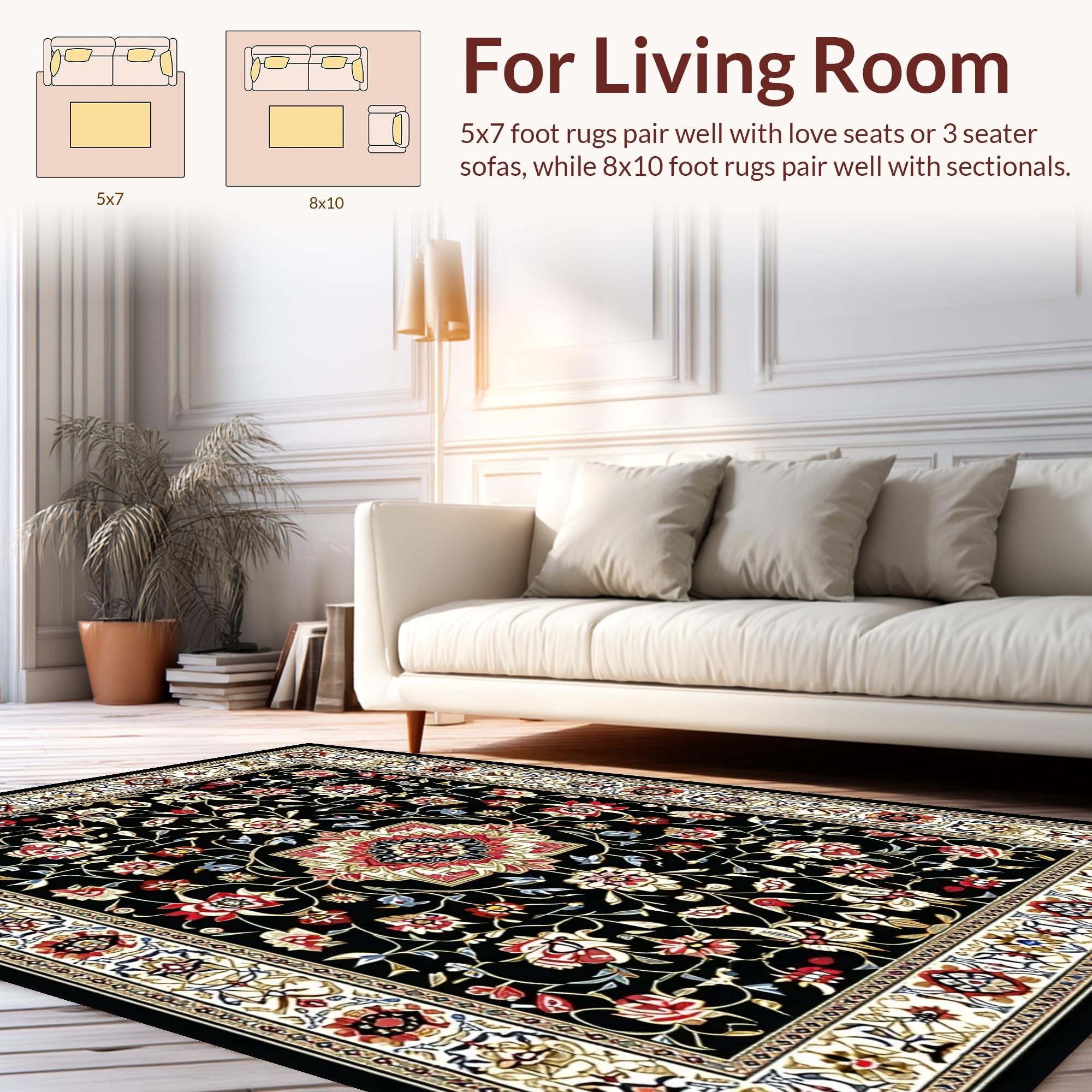 Ultra Soft Area Rug, Non Slip, Stain Resistant, Washable Area Rugs for Living Room, Bedroom, Elegant Monochrome Floral Motif(Black) Overview: