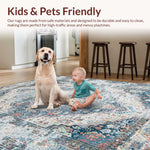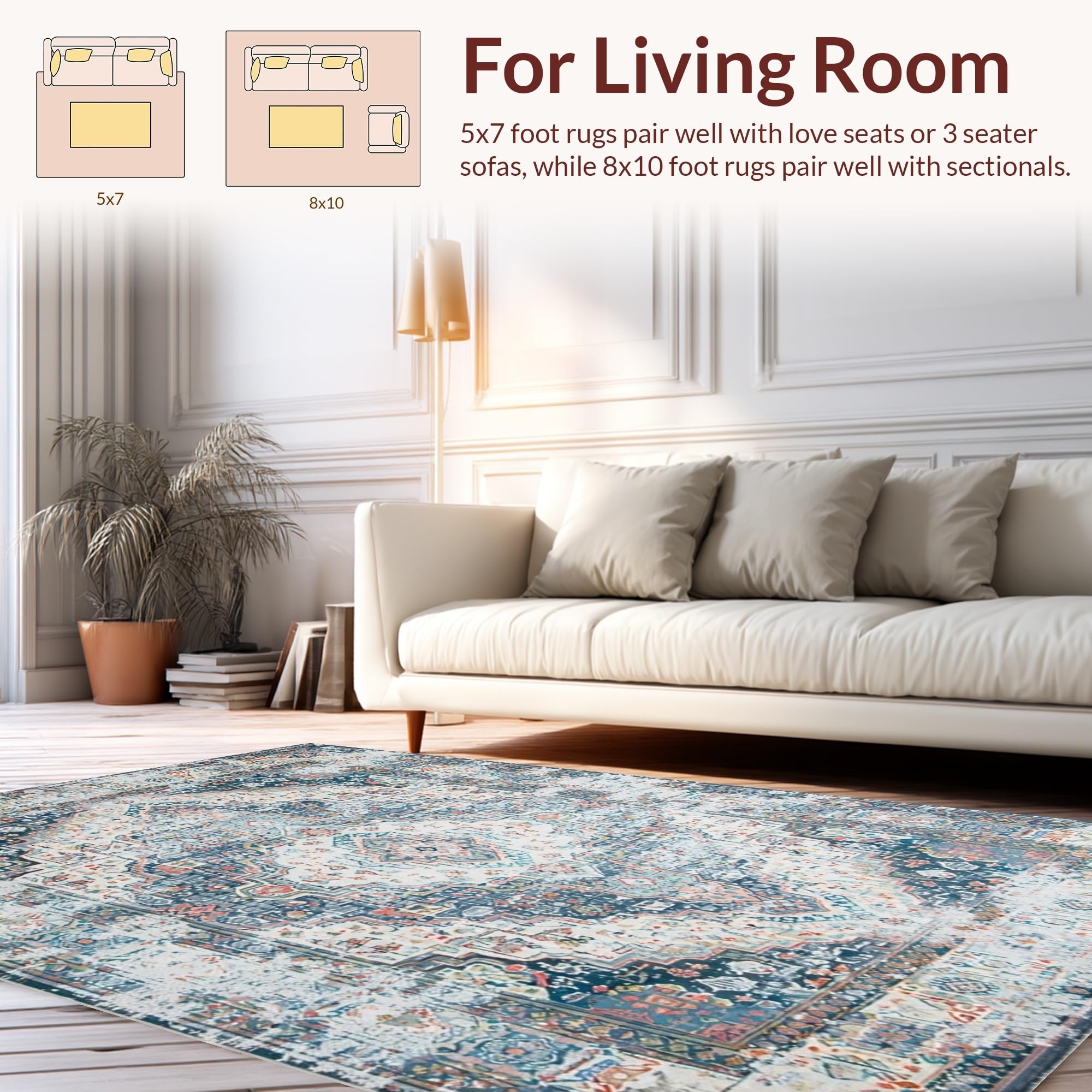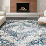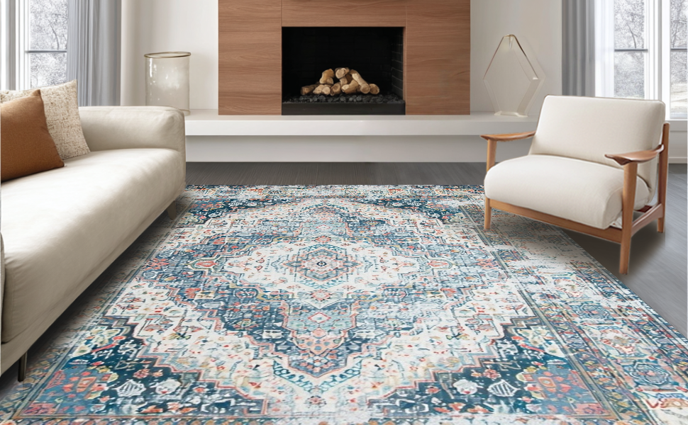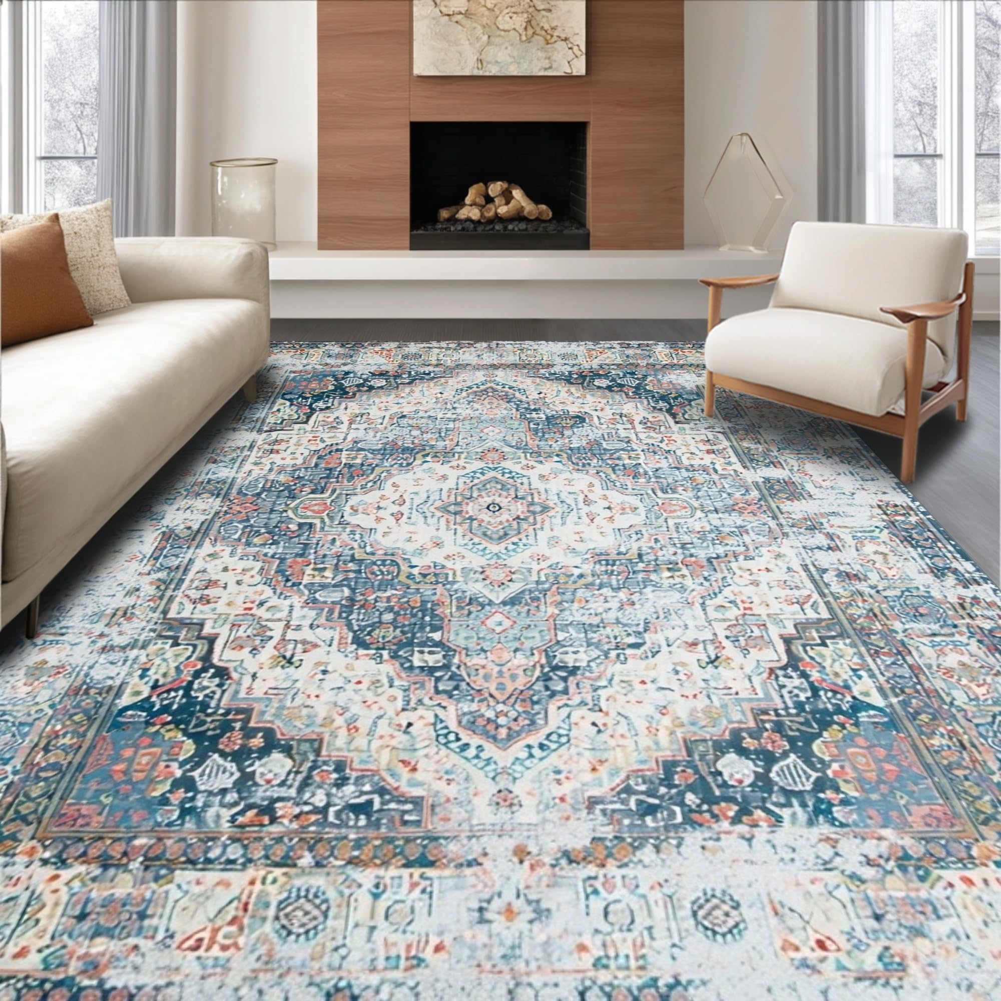 Ultra Soft Area Rug, Non Slip, Stain Resistant, Washable Area Rugs for Living Room, Bedroom, Elegant Monochrome Medallion Style(Blue) Overview: