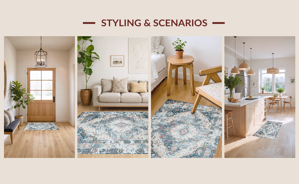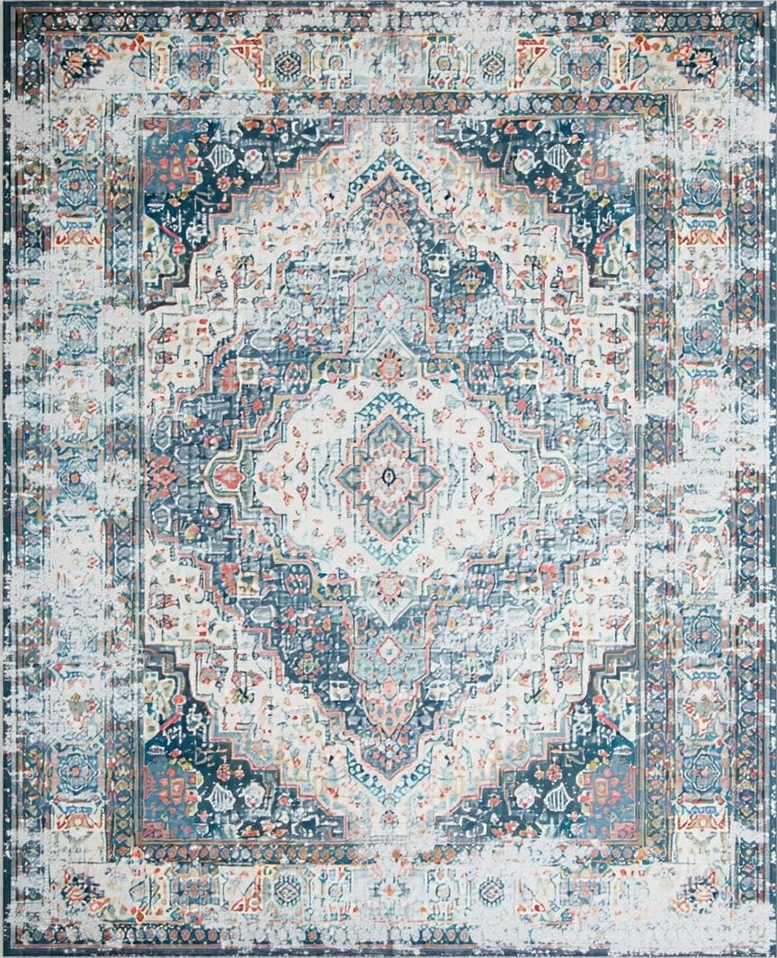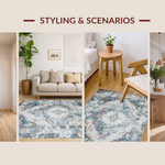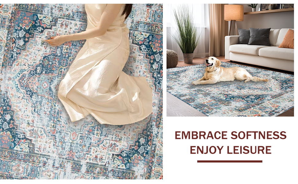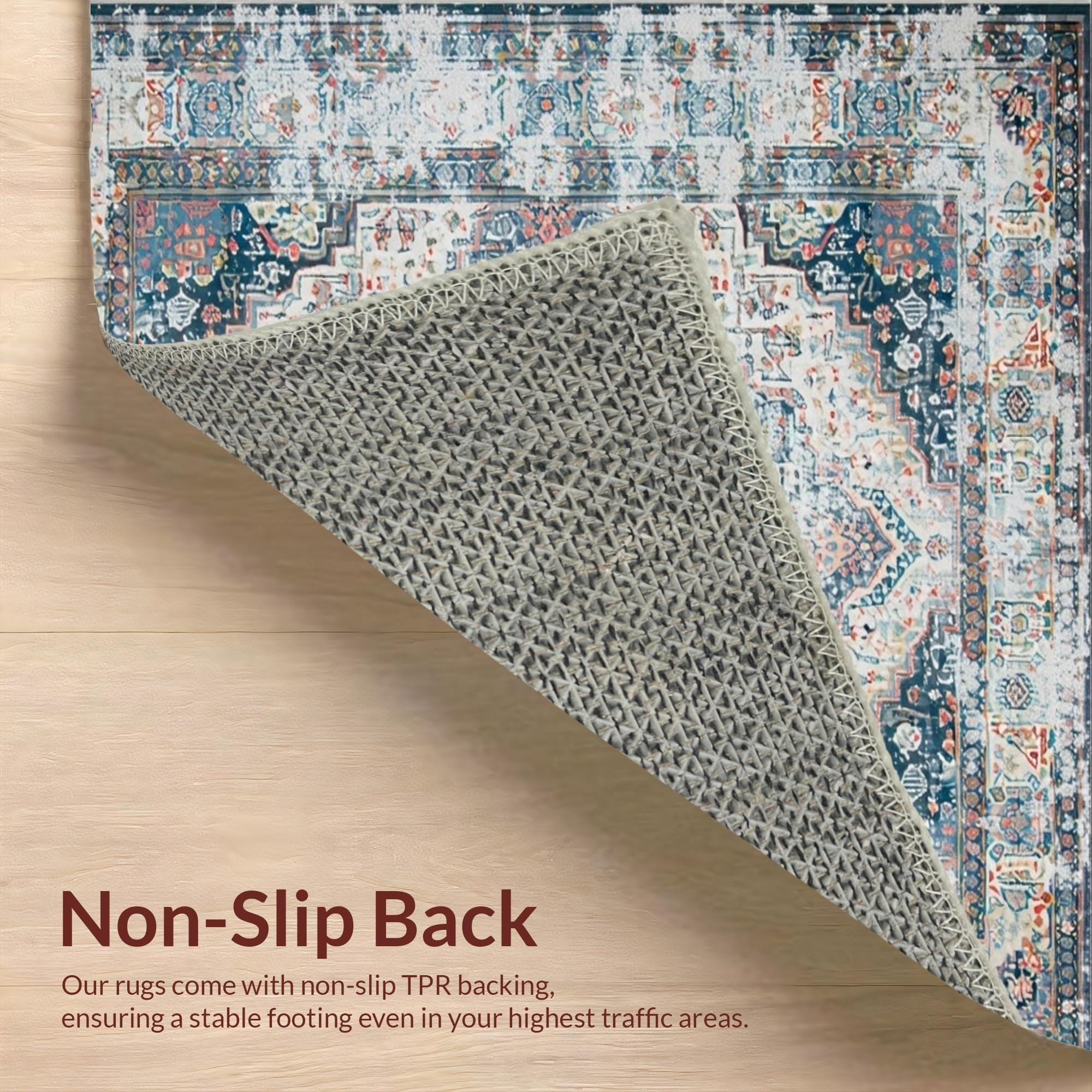 Ultra Soft Area Rug, Non Slip, Stain Resistant, Washable Area Rugs for Living Room, Bedroom, Elegant Monochrome Medallion Style(Blue) Overview:
