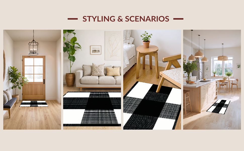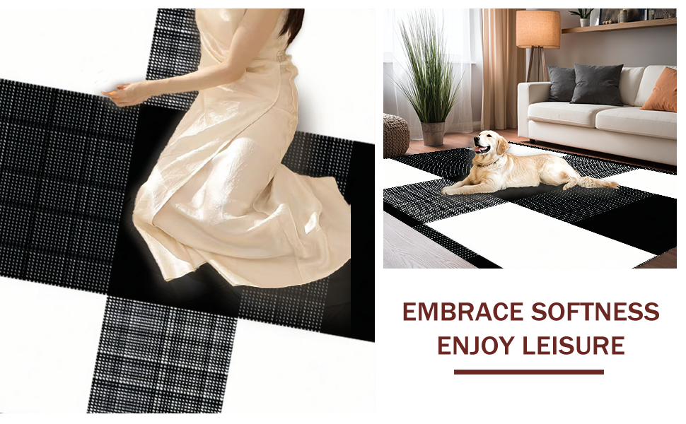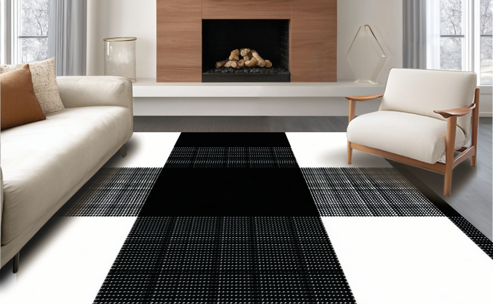 Ultra Soft Area Rug, Non Slip, Stain Resistant, Washable Area Rugs for Living Room, Bedroom, Elegant Monochrome Striped Design(Black) Overview: