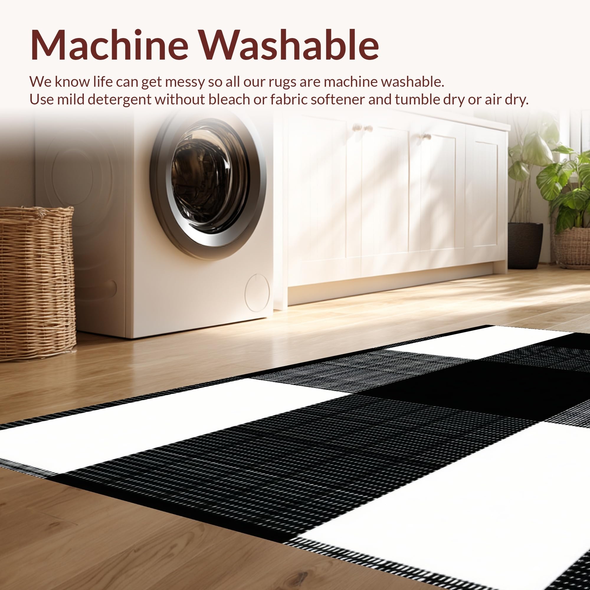 - Machine Washable: Our rugs can be easily thrown in the wash machine.