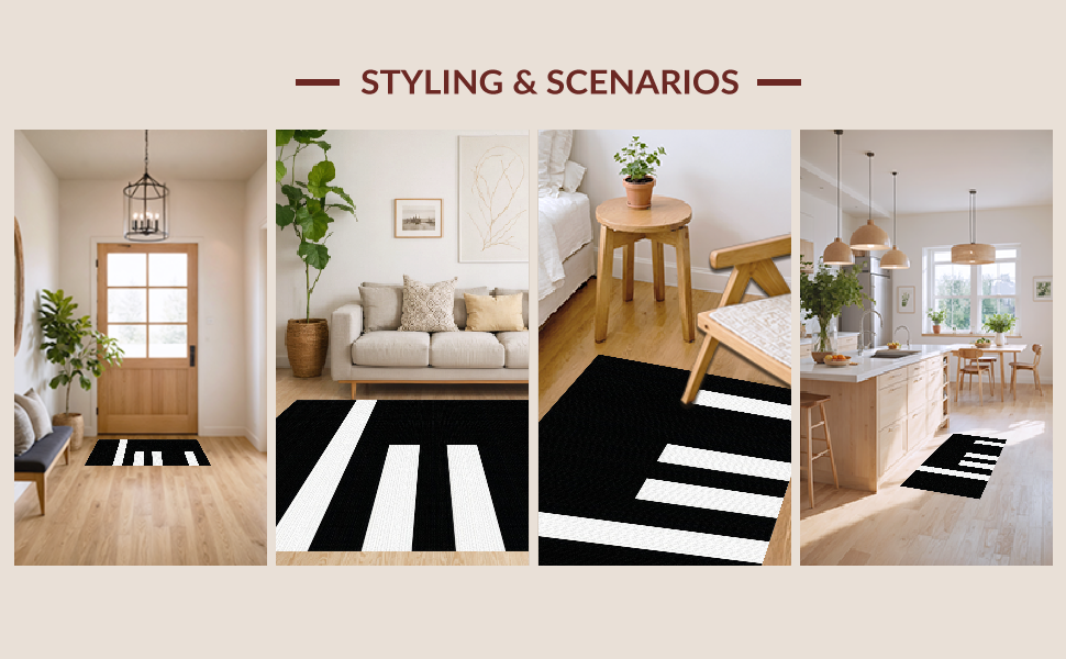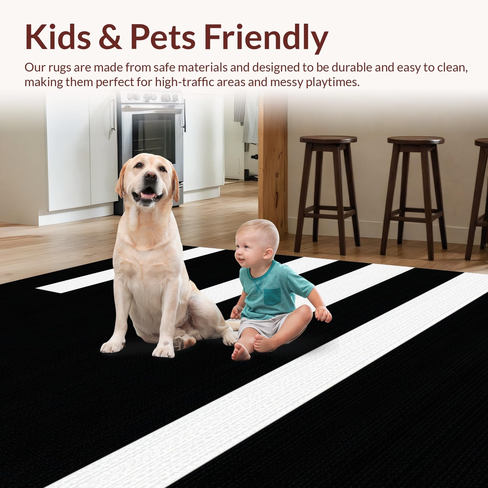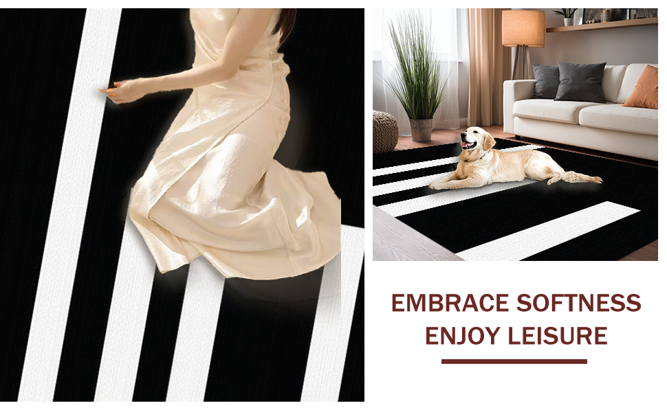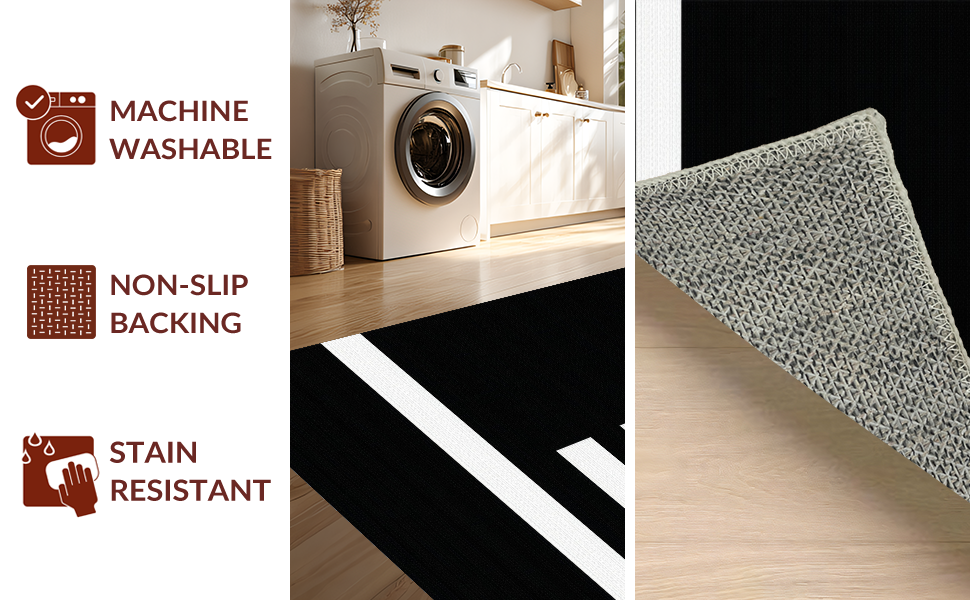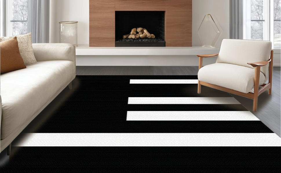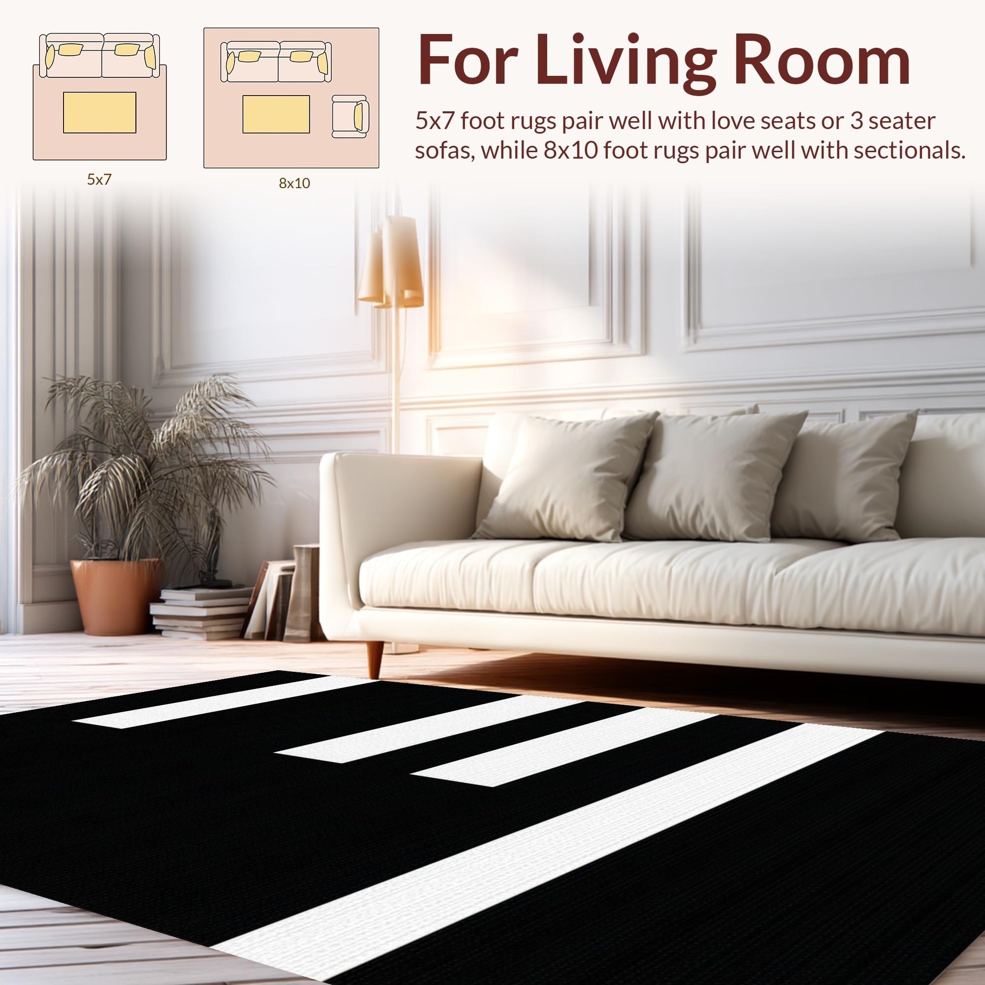 Ultra Soft Area Rug, Non Slip, Stain Resistant, Washable Area Rugs for Living Room, Bedroom, Elegant Monochrome Textured Weave(Black) Overview: