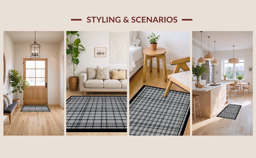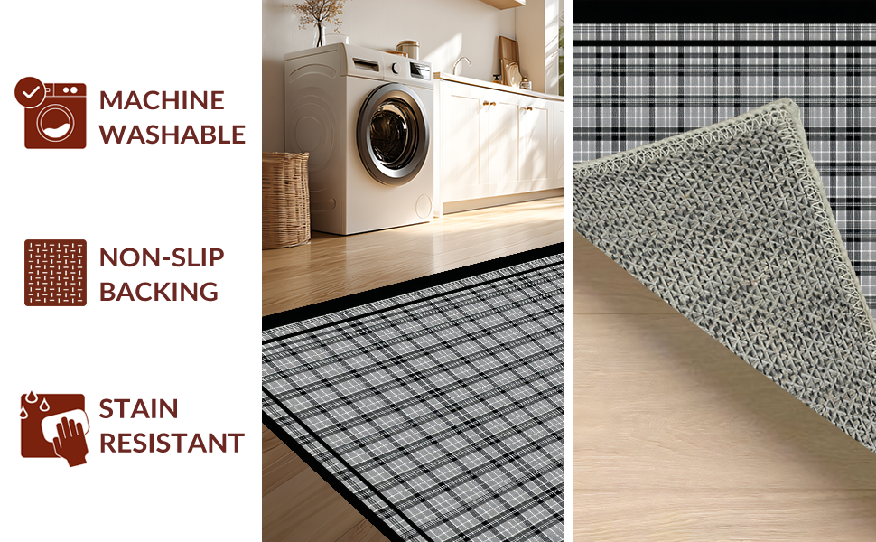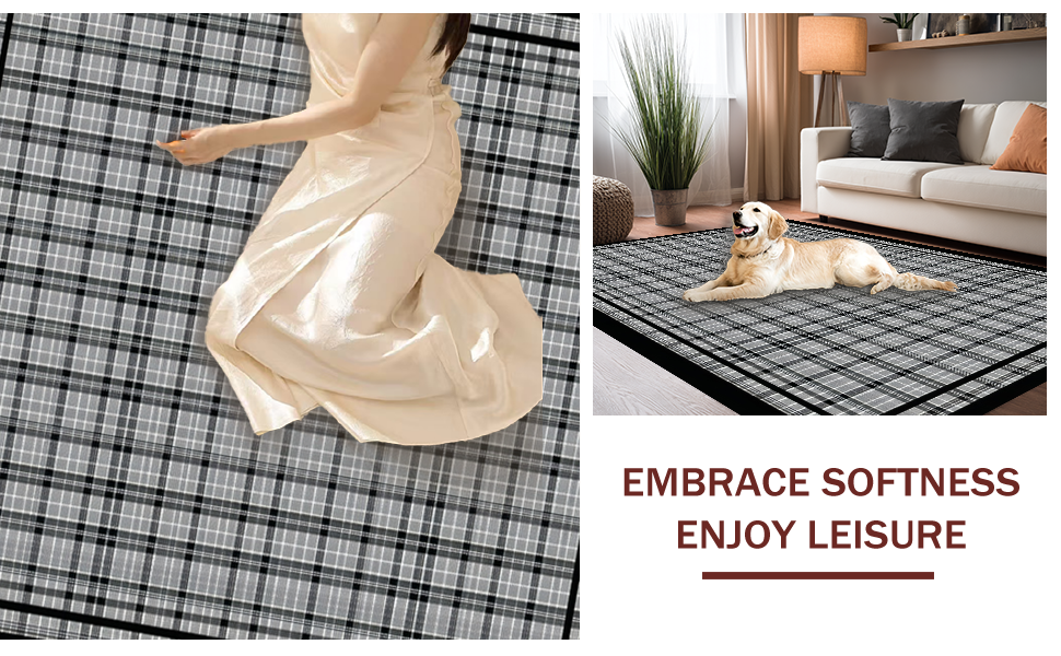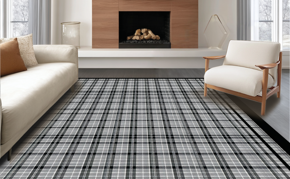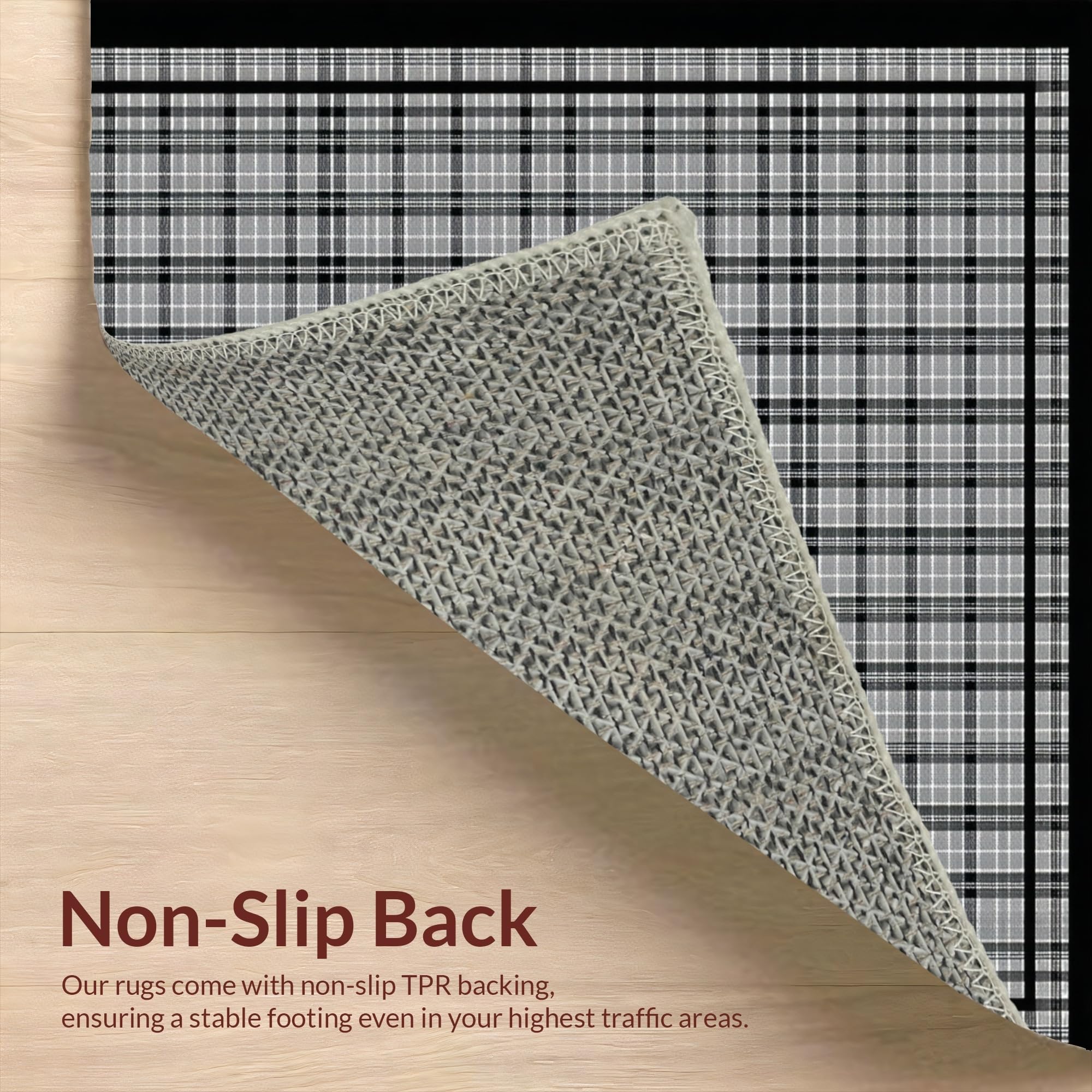 Ultra Soft Area Rug, Non Slip, Stain Resistant, Washable Area Rugs for Living Room, Bedroom, Elegant Monochrome Tic Tac Toe Layout(Black) Overview: