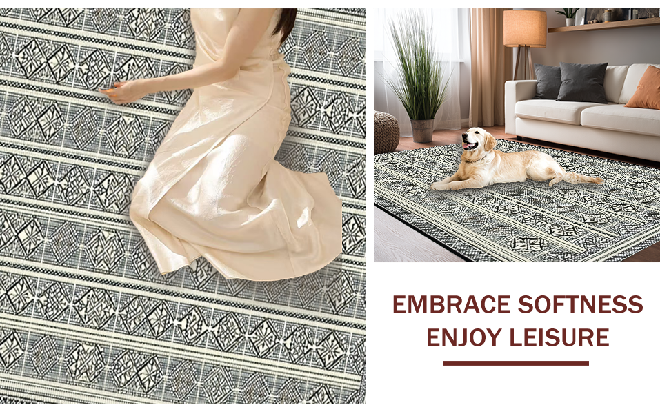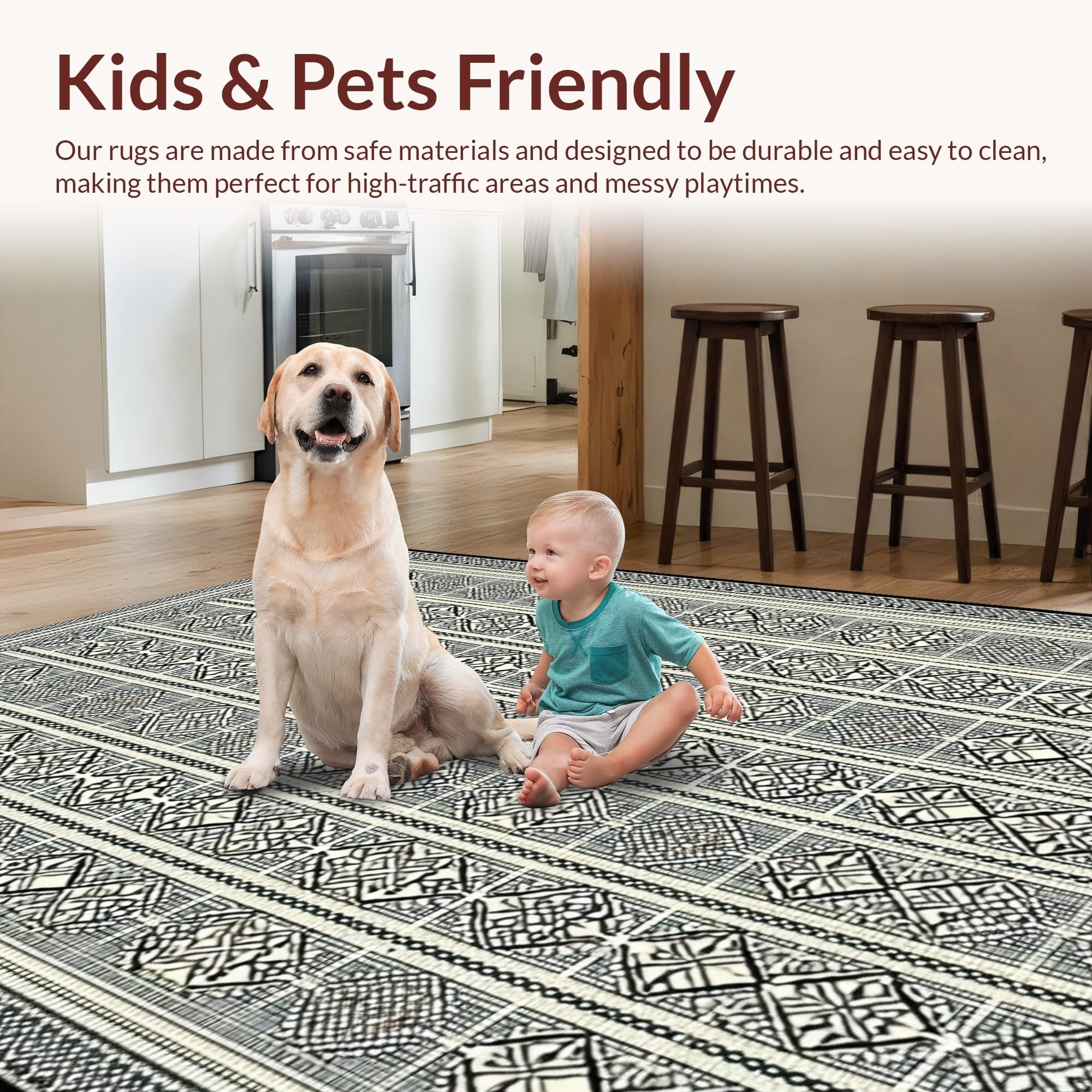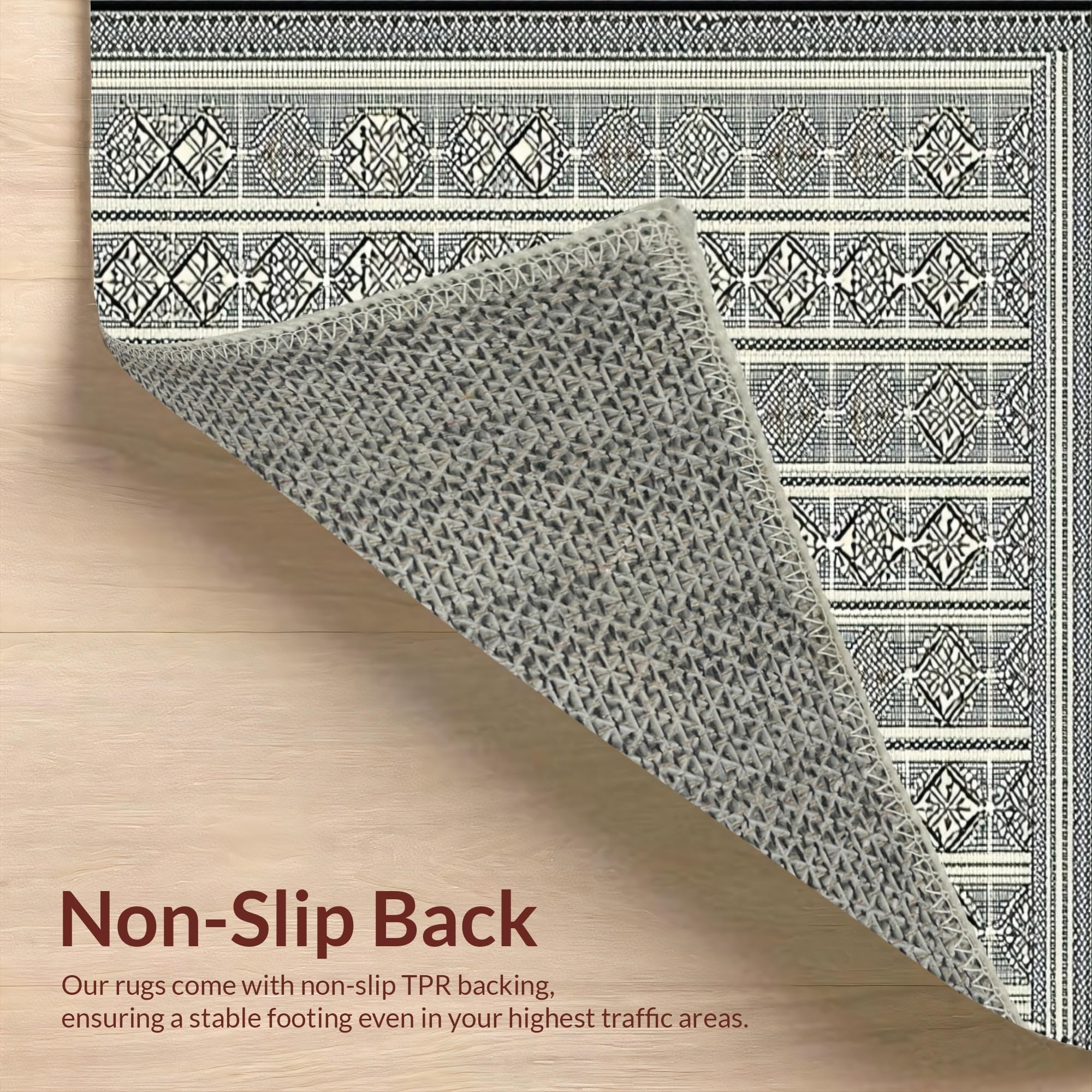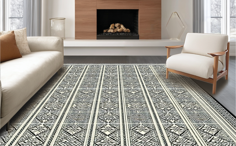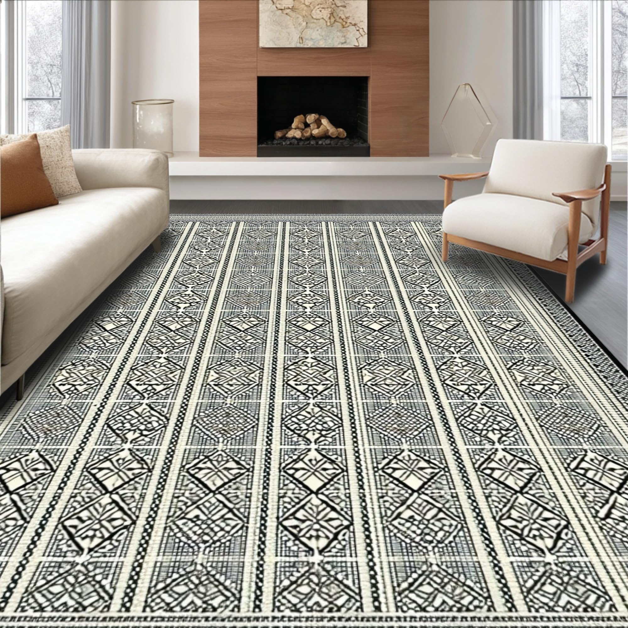 Ultra Soft Area Rug, Non Slip, Stain Resistant, Washable Area Rugs for Living Room, Bedroom, Elegant Monochrome Tiled Arrangement(Black) Overview: