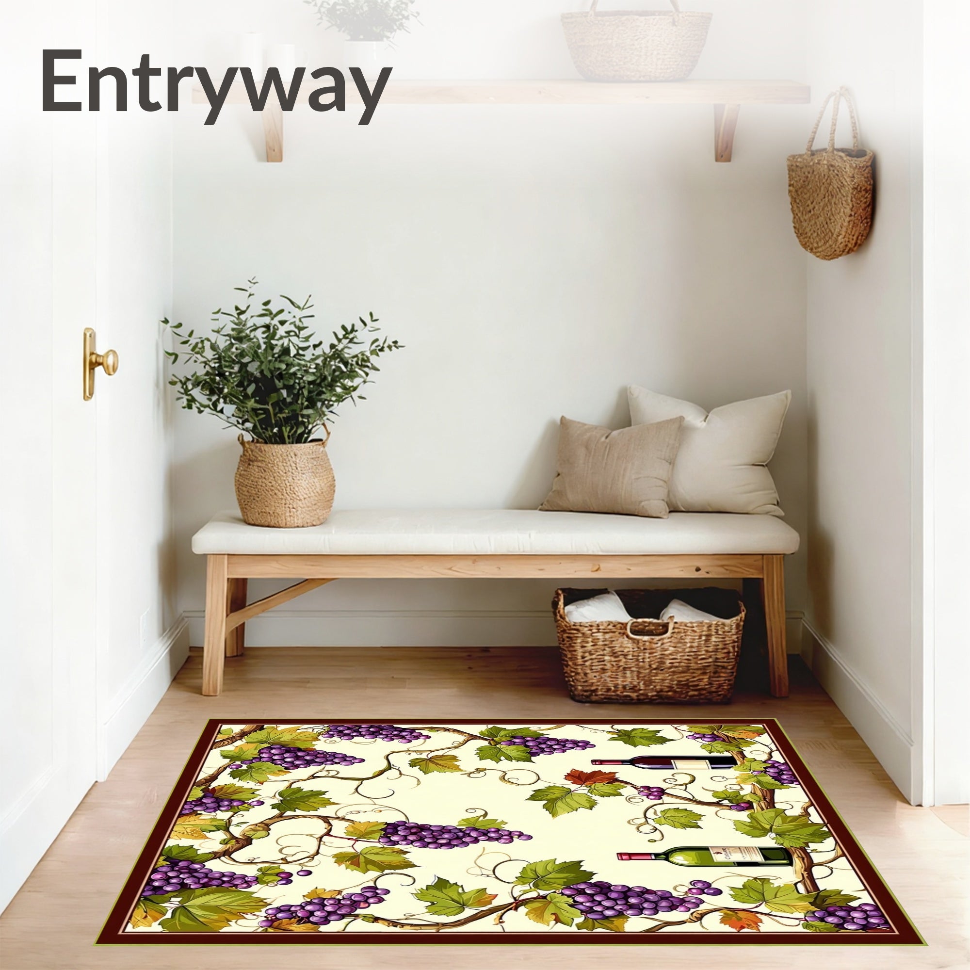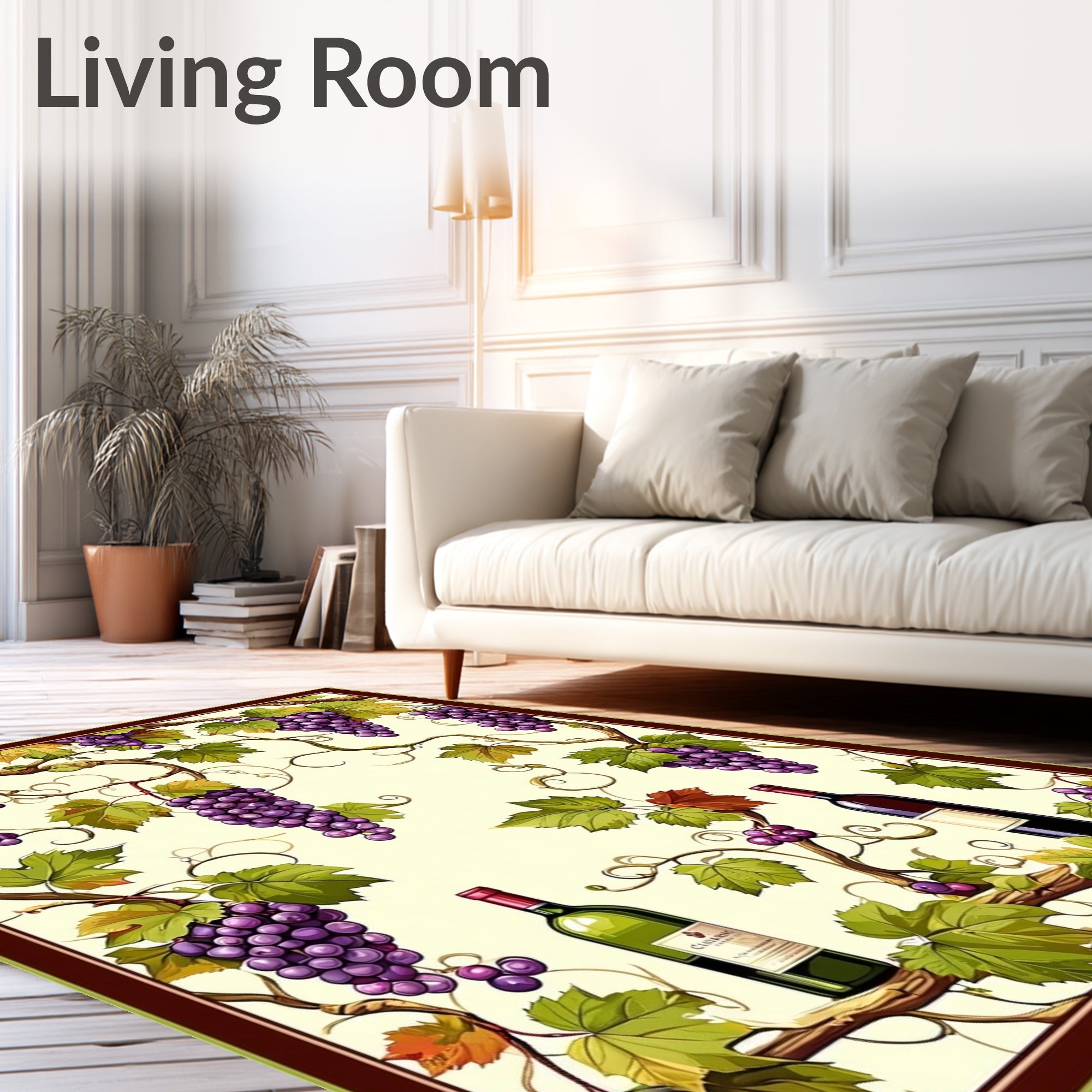 Ultra Soft Area Rug, Non Slip, Stain Resistant, Washable Area Rugs for Living Room, Bedroom, Elegant Moon Shaped Area Rug With Wine Bottle And Grapevine Decorative Design(Beige) Overview: