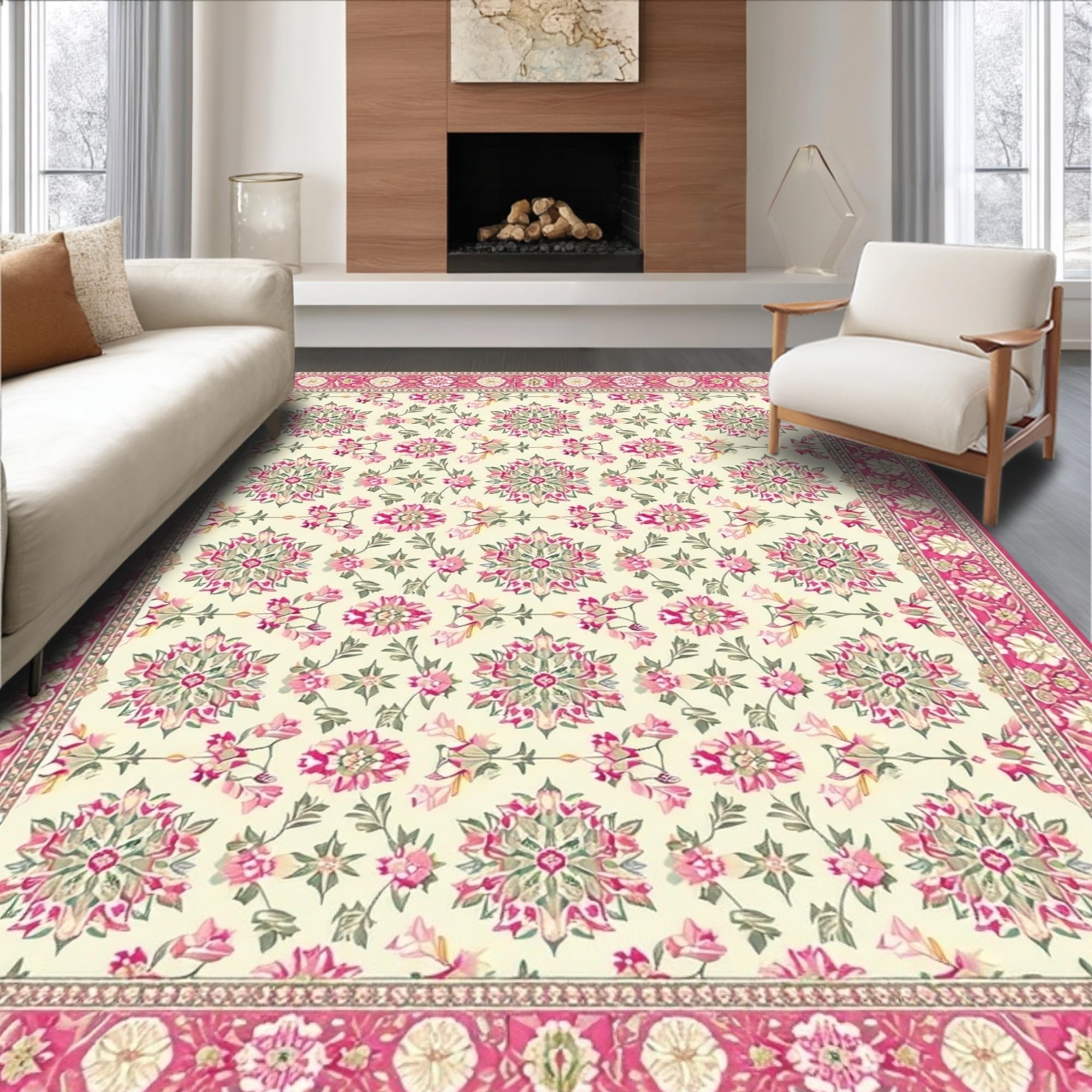 Ultra Soft Area Rug, Non Slip, Stain Resistant, Washable Area Rugs for Living Room, Bedroom, Elegant Multi-Color Damask Style(Ivory) Overview: