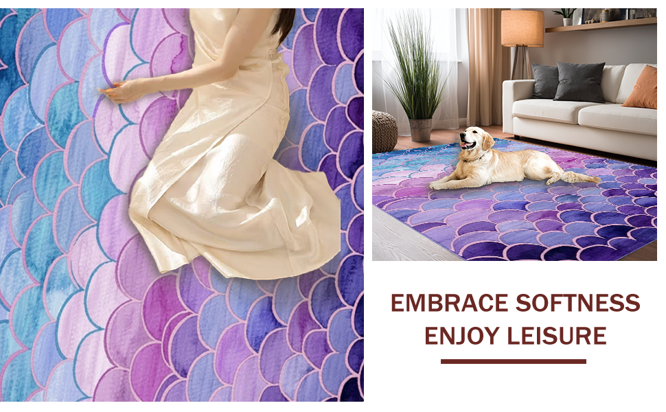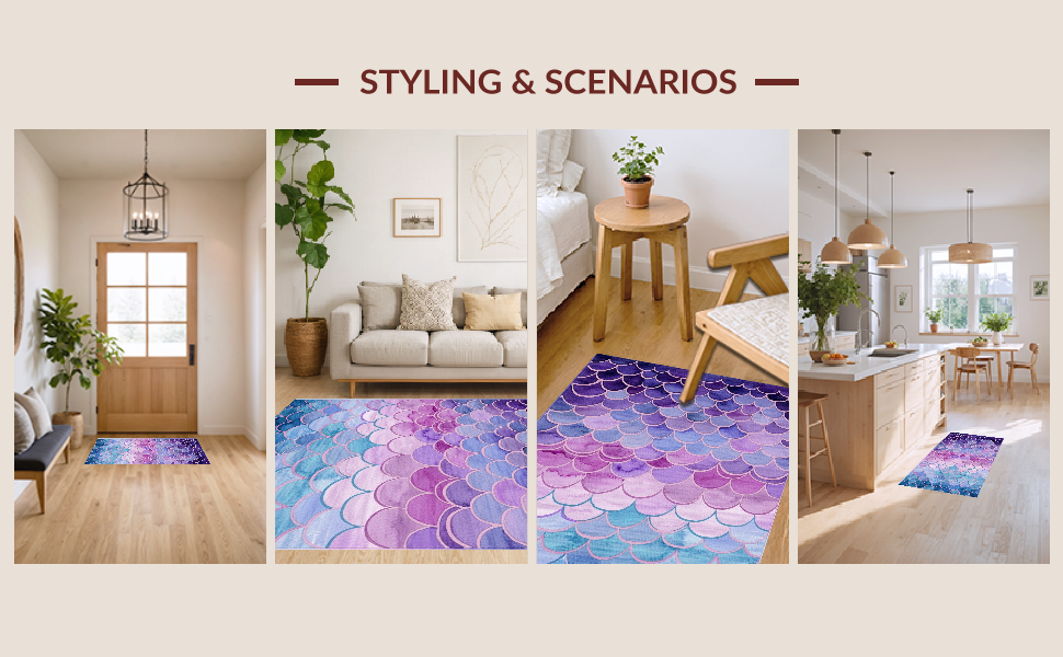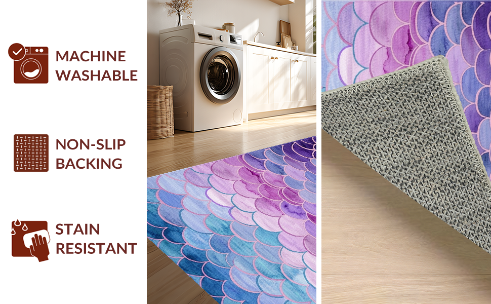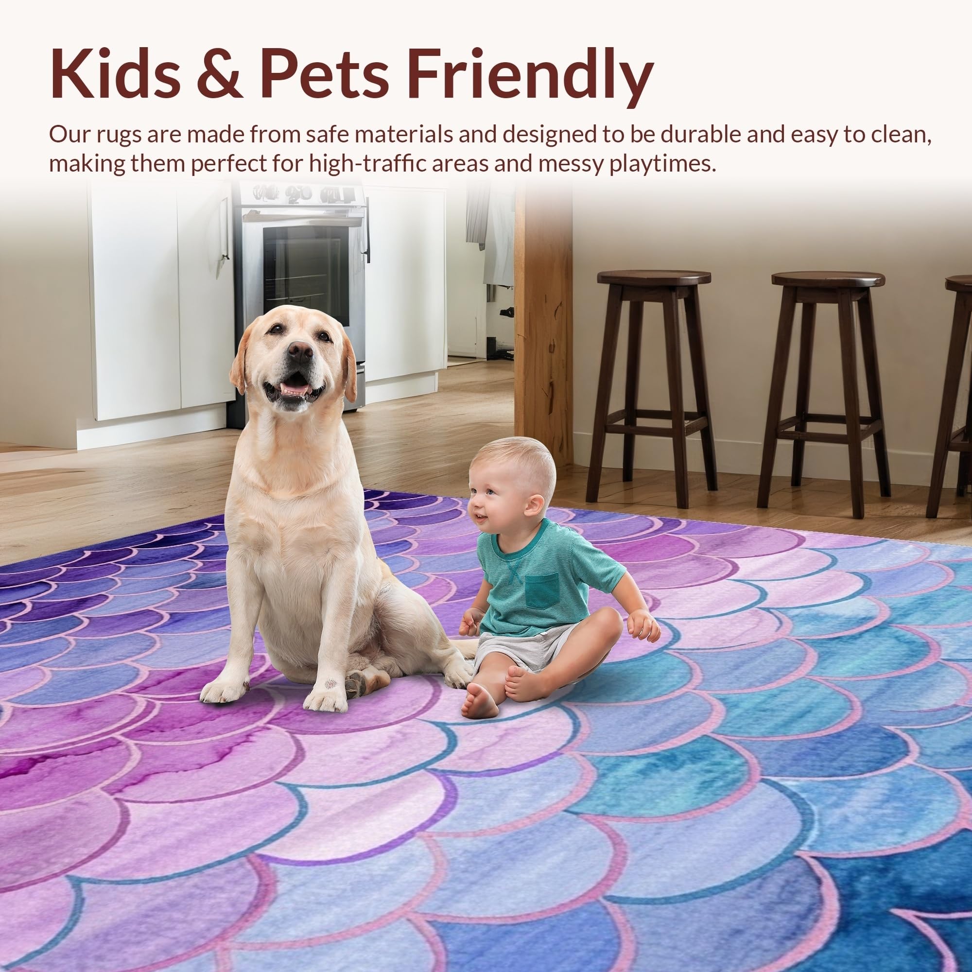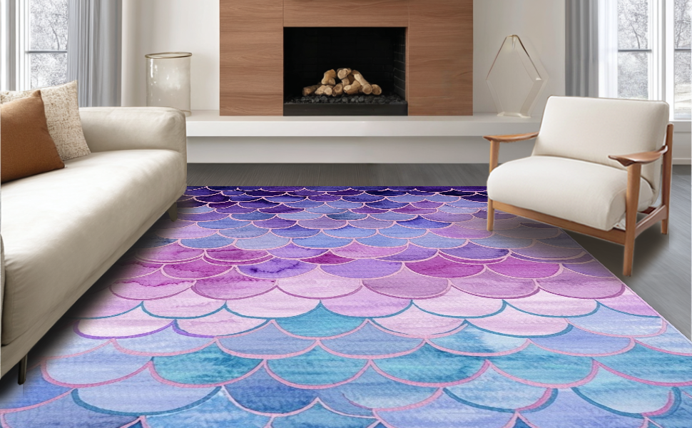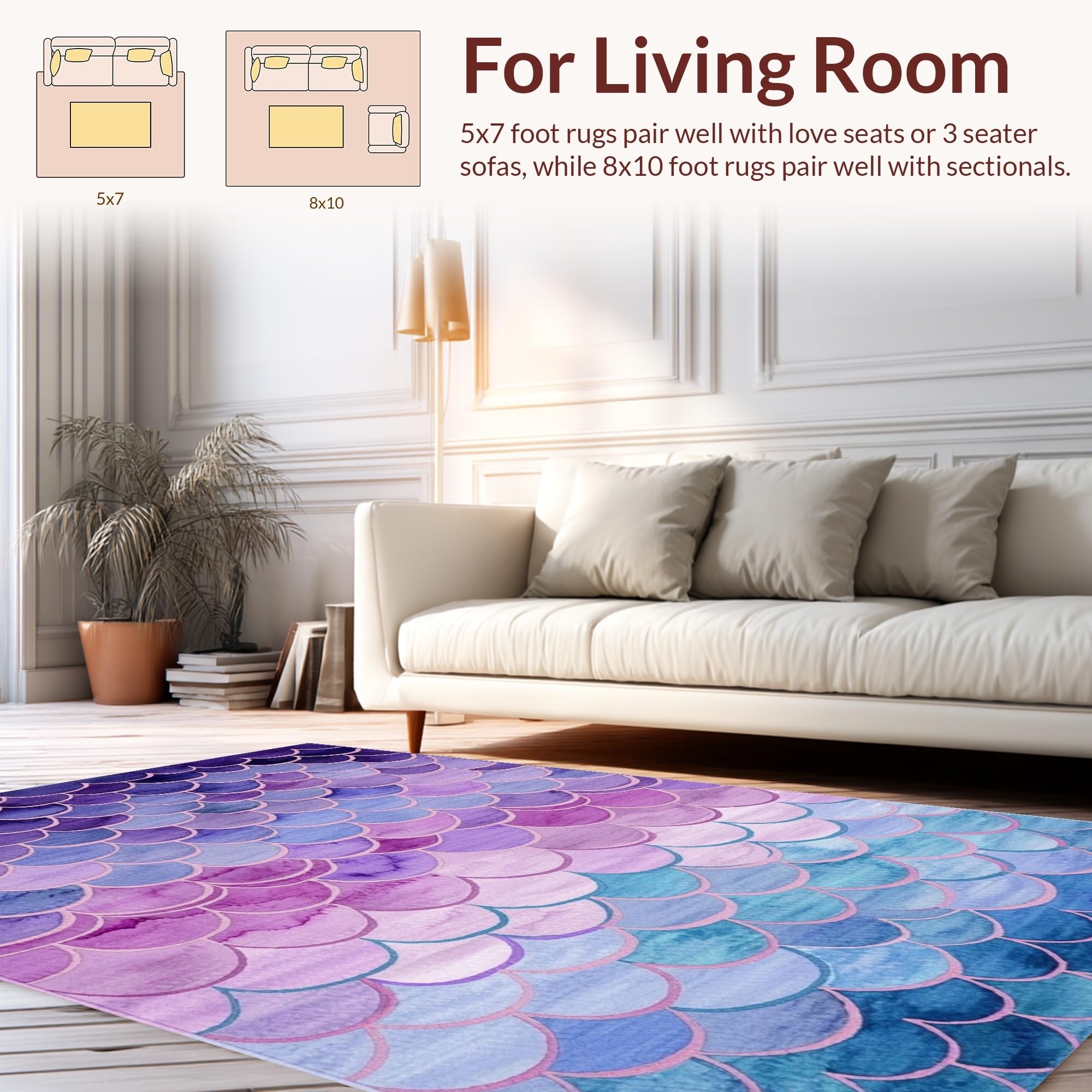 Ultra Soft Area Rug, Non Slip, Stain Resistant, Washable Area Rugs for Living Room, Bedroom, Elegant Multi-Tone Coastal Design(Purple) Overview: