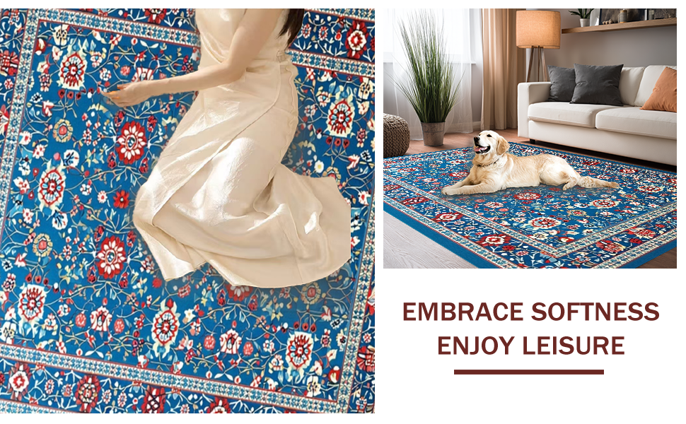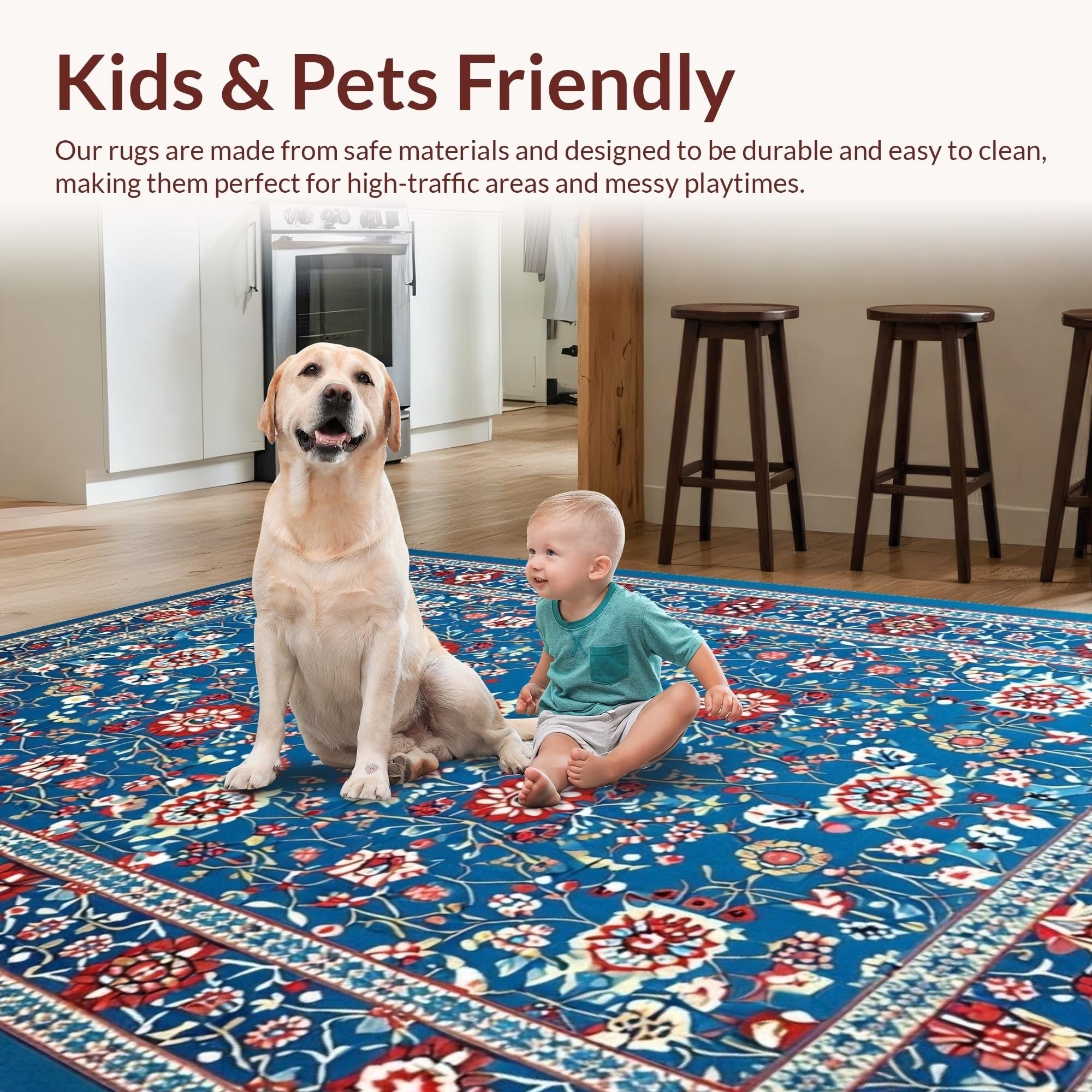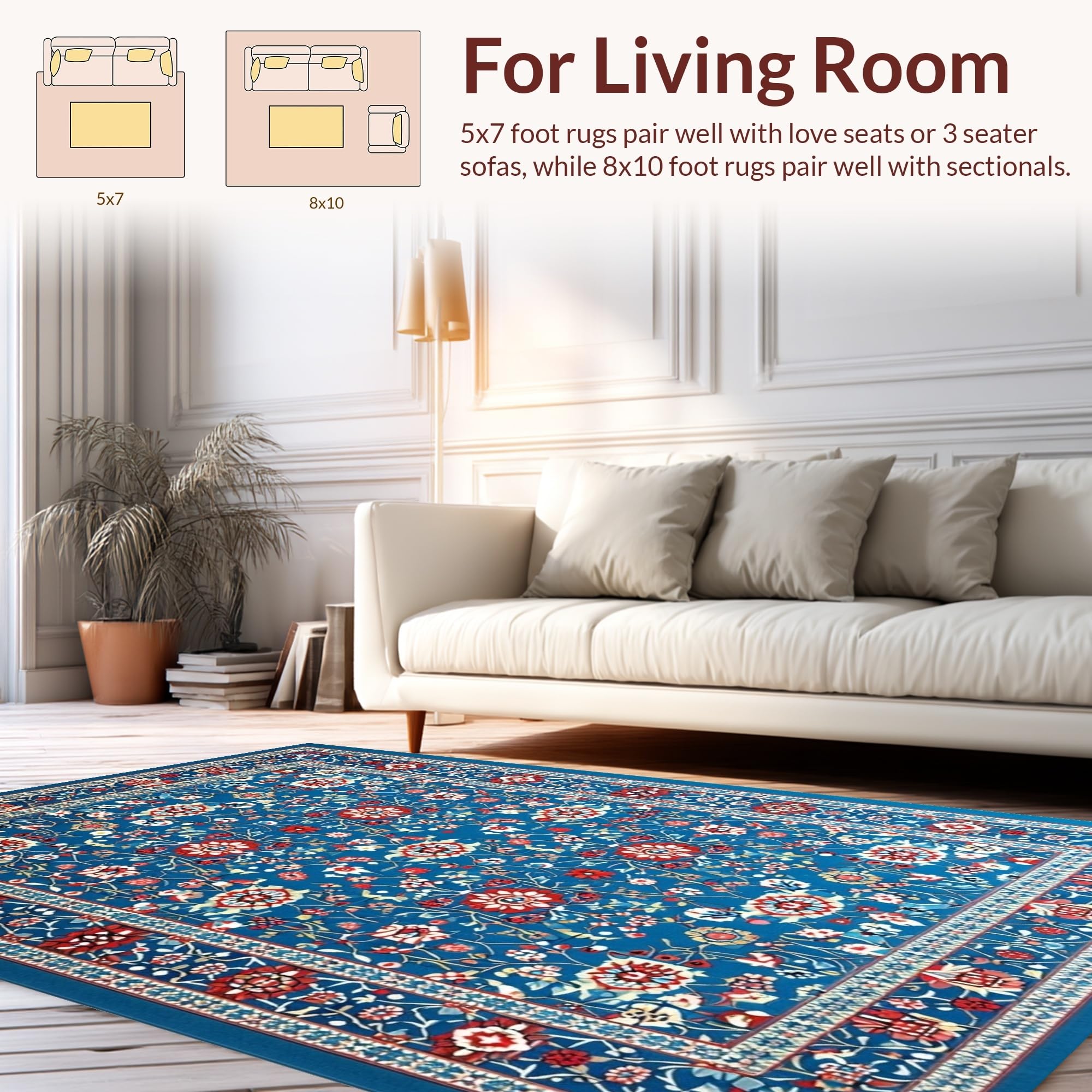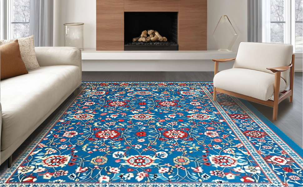 Ultra Soft Area Rug, Non Slip, Stain Resistant, Washable Area Rugs for Living Room, Bedroom, Elegant Multicolor Coastal Motif(Blue) Overview: